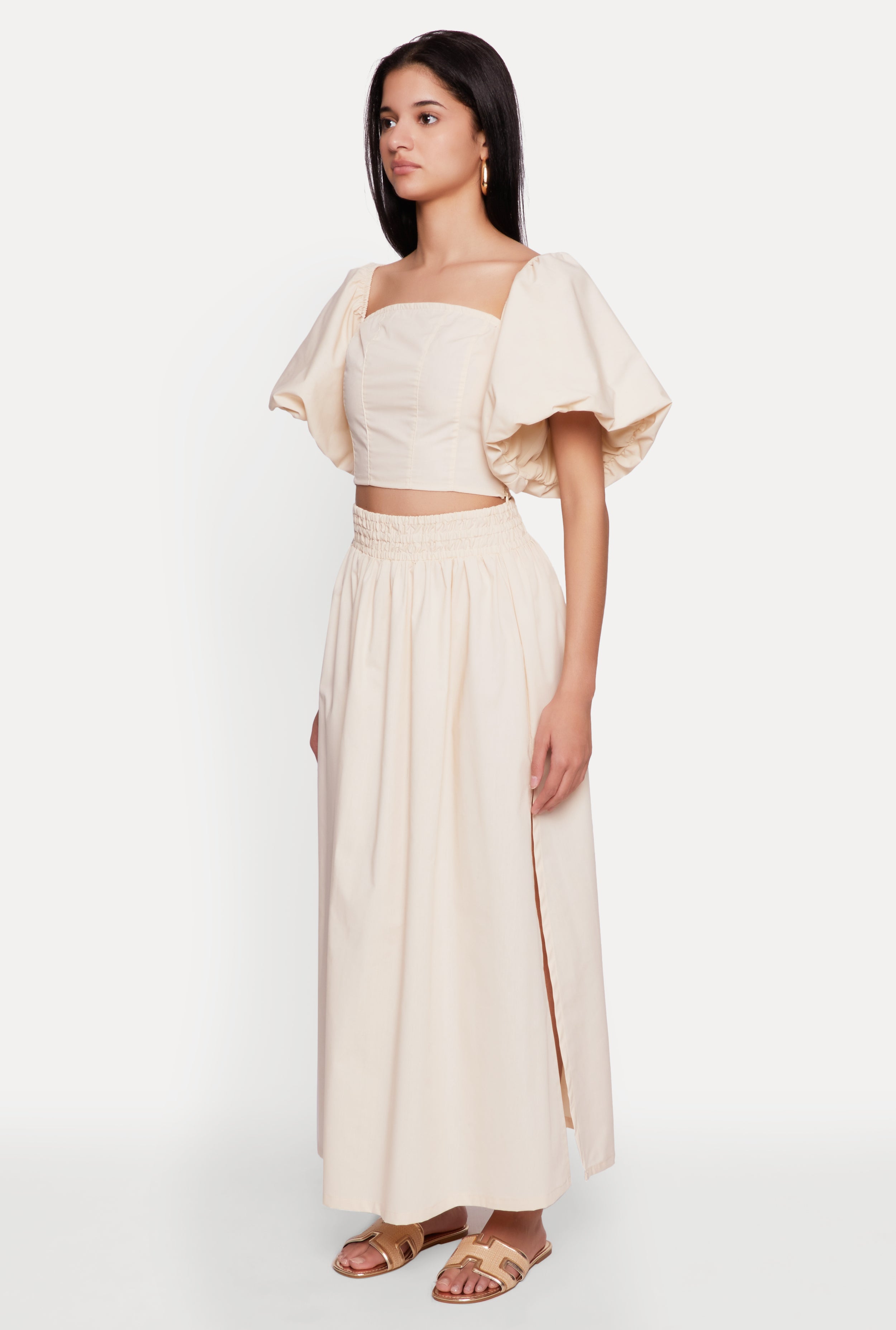 - Features puff sleeves and a square neckline for a trendy, feminine look