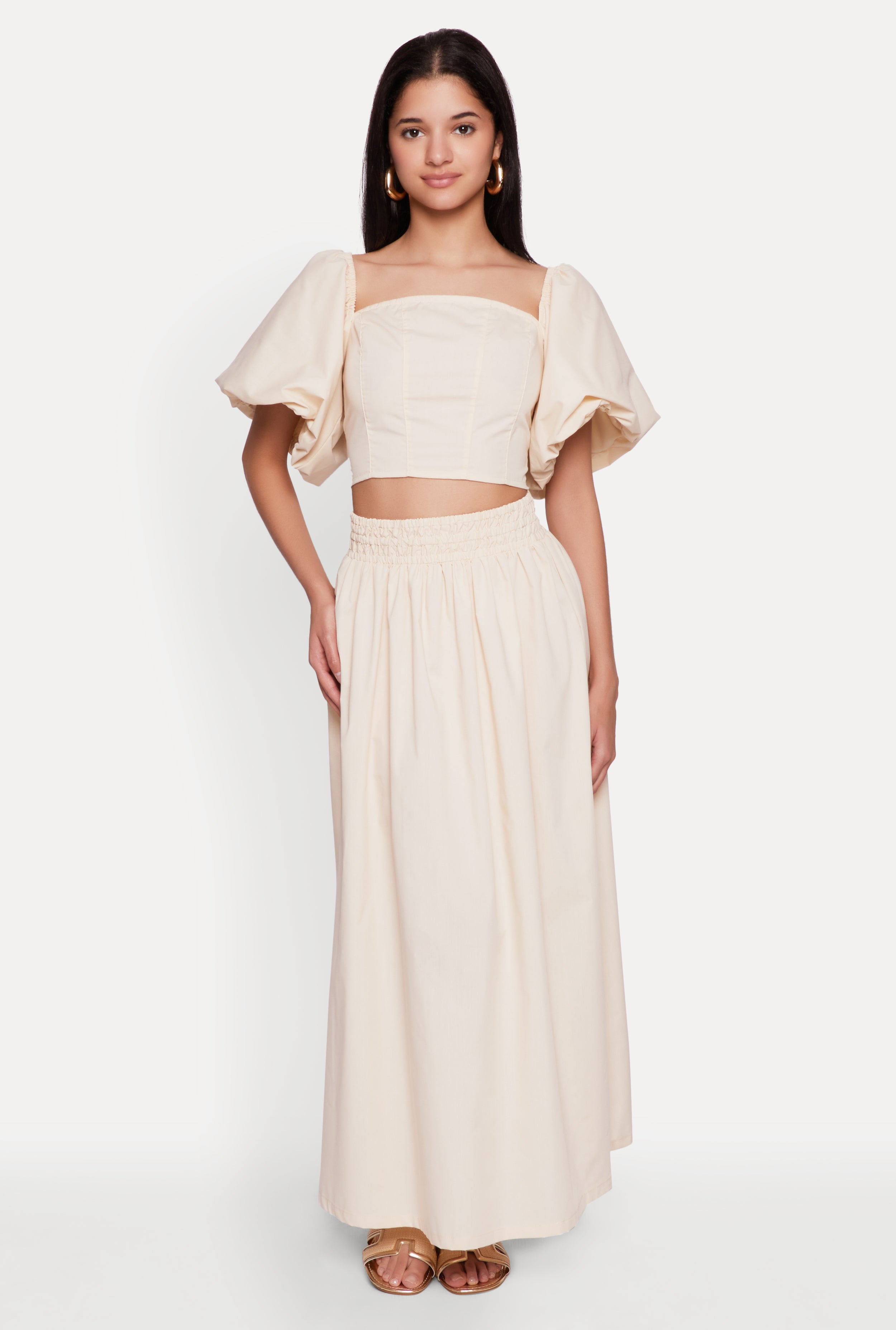 Upgrade your wardrobe with the Poplin Puff Sleeve Corset Crop Top, a perfect blend of chic and comfort. Featuring adorable puff sleeves and a flattering square neckline, this blouse adds a touch of elegance to any casual or dressy look. Its classic fit and cropped hem make it a versatile staple that pairs effortlessly with your favorite jeans or skirts. Whether you're heading out with friends or just want to feel confident and cute, this top is your new go-to piece.