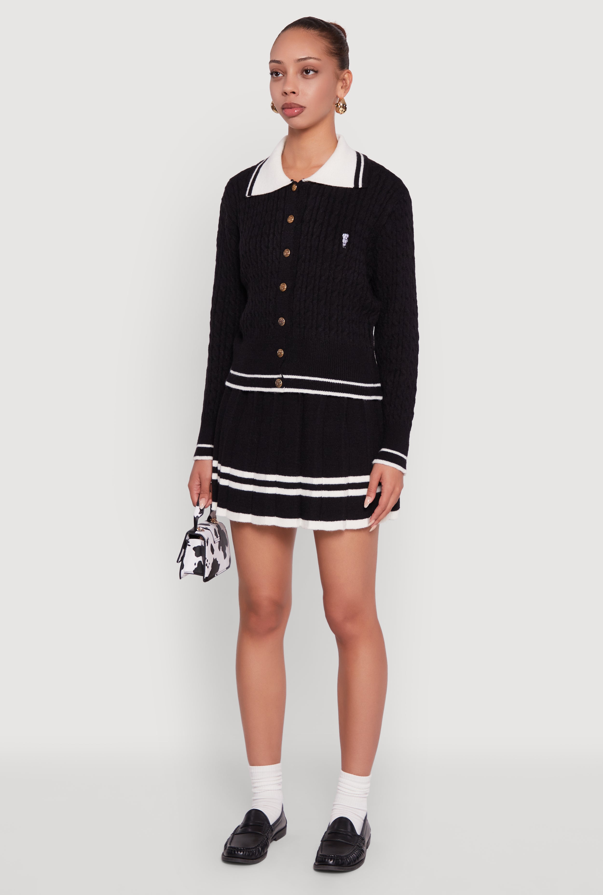 Step up your casual game with this Bear Patch Graphic Varsity Stripe Cardigan. Featuring a classic fit and cozy cable knit, it’s the perfect layering piece for those chill back-to-school days. The button front and collared neckline add a polished touch, while the varsity stripes and playful bear patch bring all the cool-girl vibes. Whether you’re pairing it with jeans or your favorite skirt, this cardigan is a must-have for effortless style that feels as good as it looks.