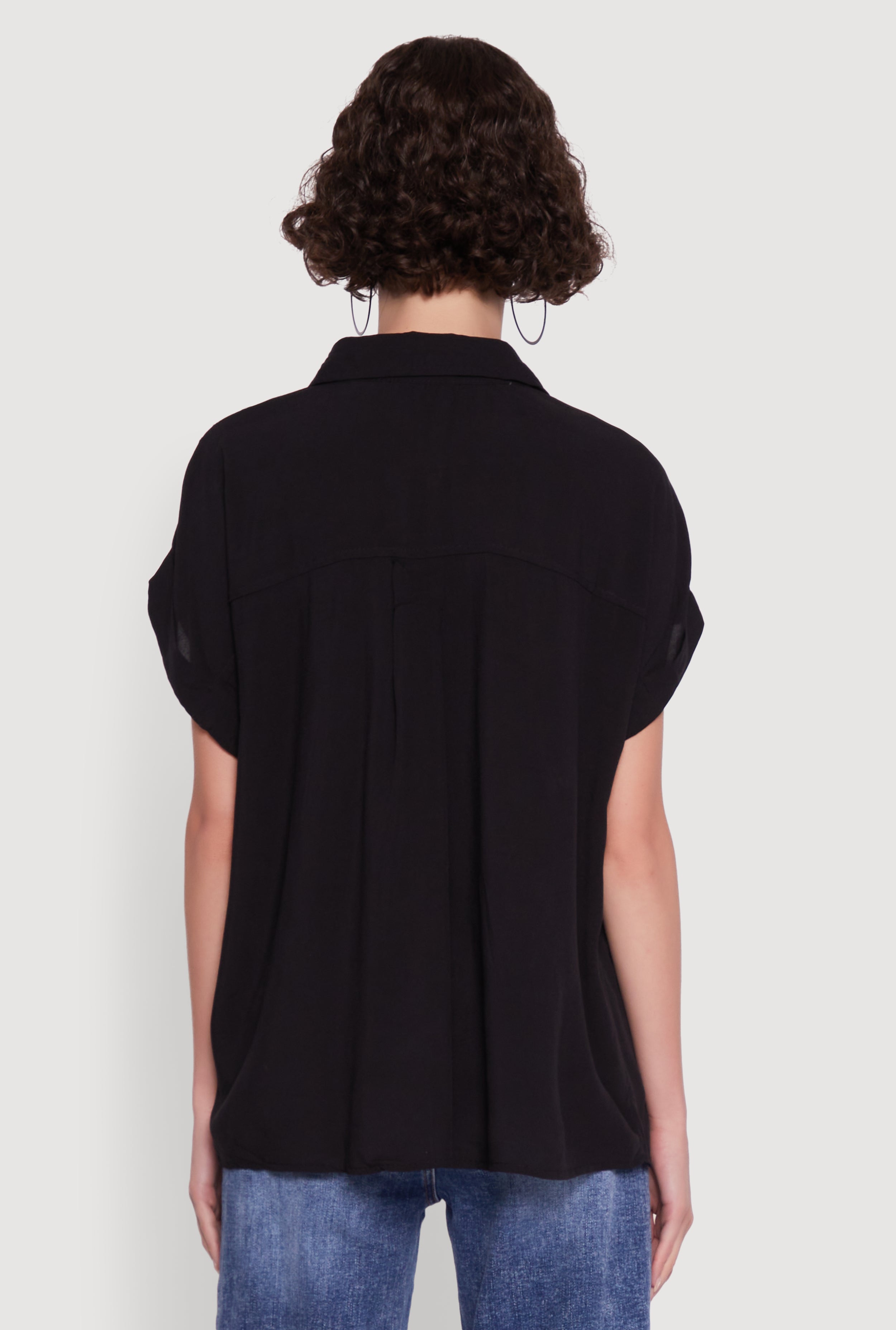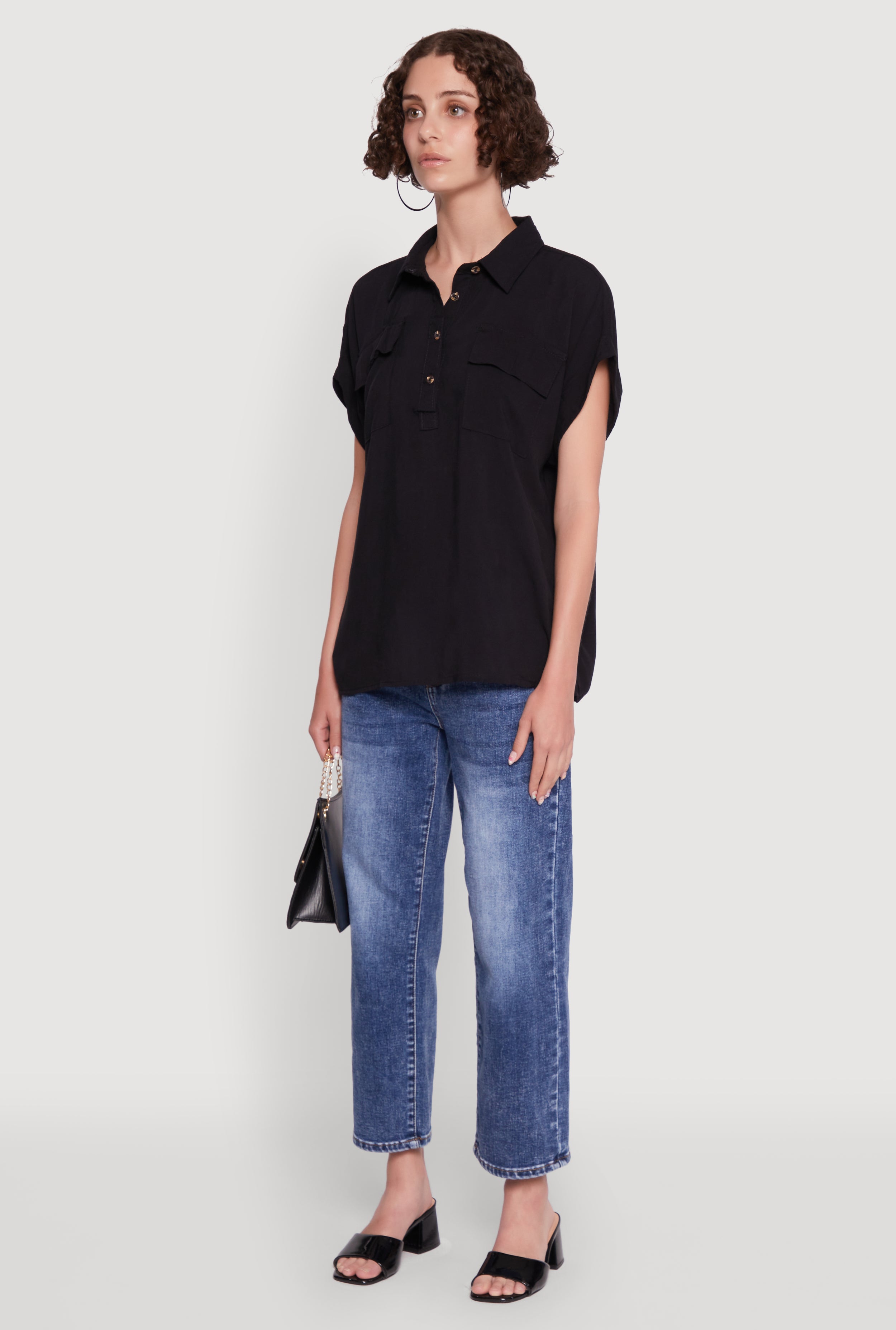 Step up your everyday style game with this Button Front Dolman Sleeve Shirt. Featuring a classic fit and a timeless shirt collar, it blends casual comfort with office-ready vibes effortlessly. The unique dolman cap sleeves add a breezy, laid-back touch that keeps you cool and confident all day long. Whether you are heading to work or weekend brunch, this solid-colored essential is your go-to for easy, chic layering.