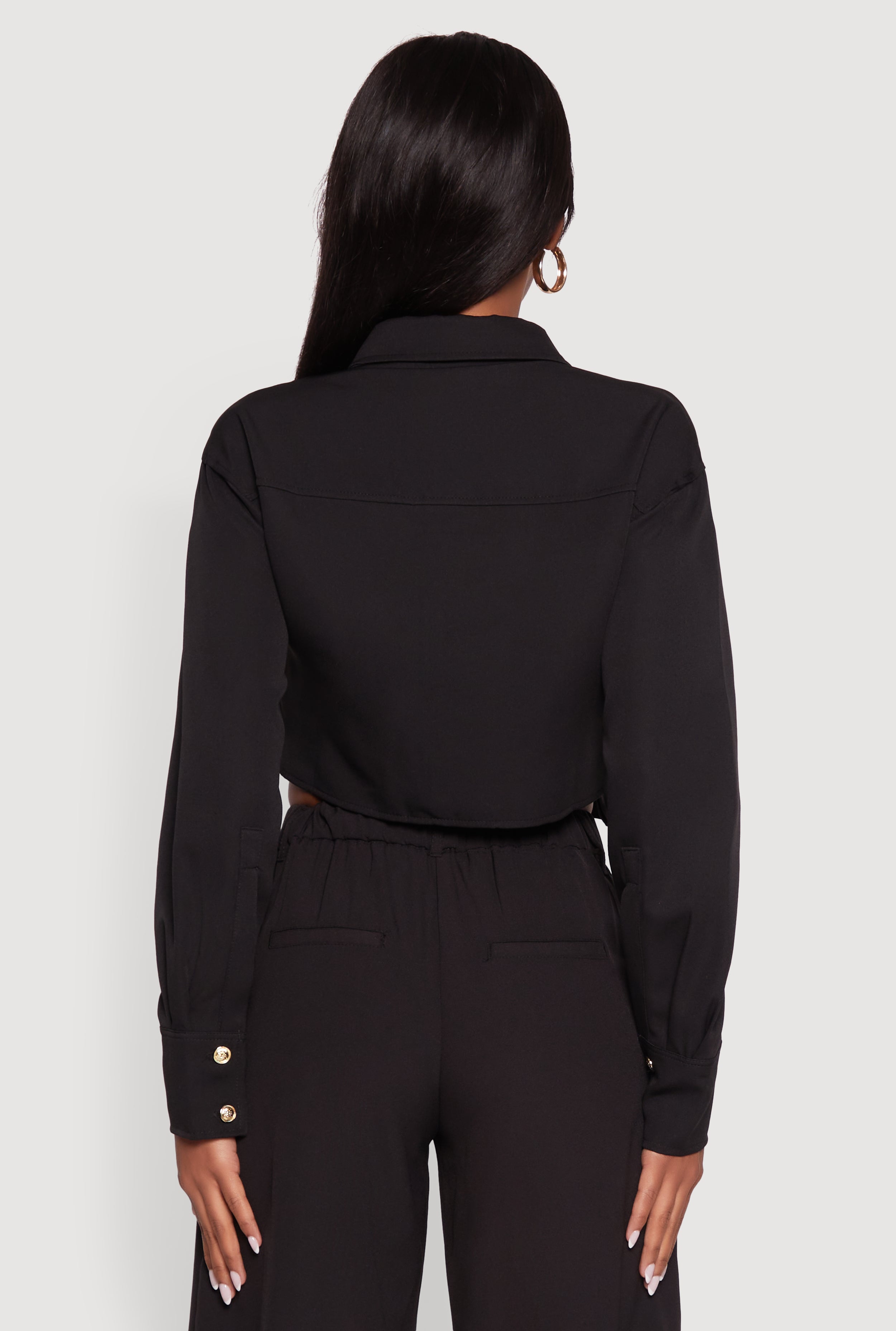 Classic Fit Solid Long Sleeve Shirt with Cropped Hem