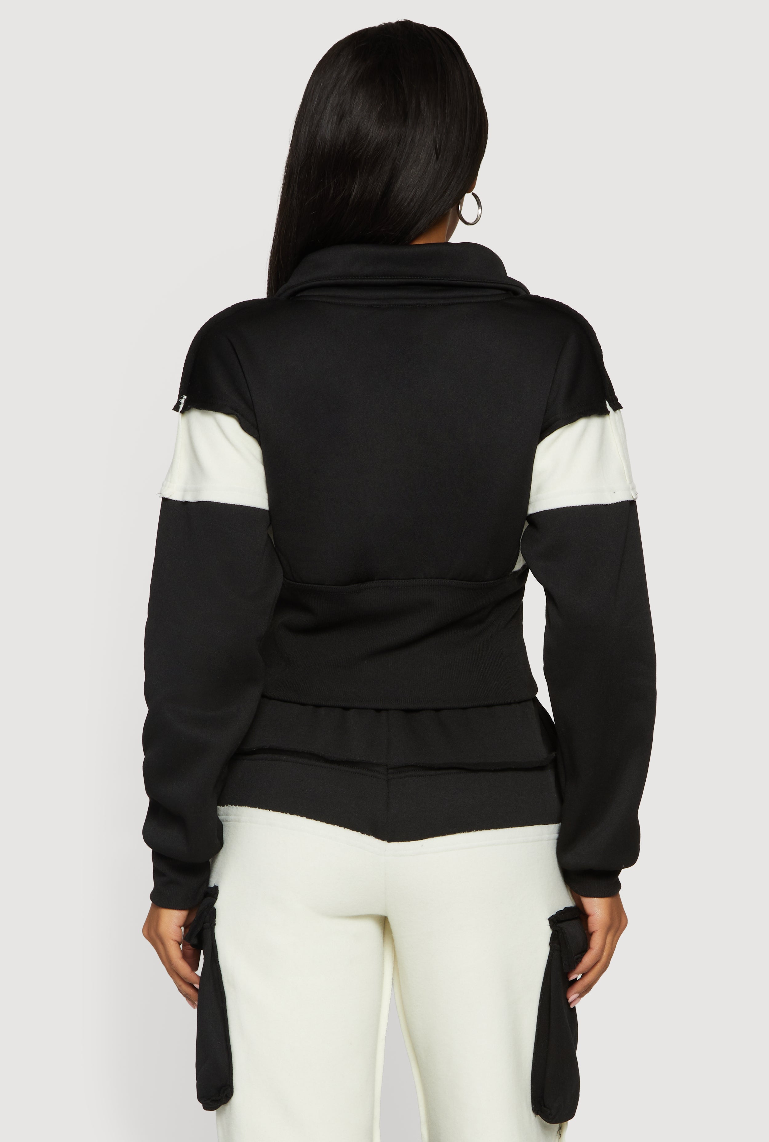 • Color Blocked Zip Front Collared Sweatshirt