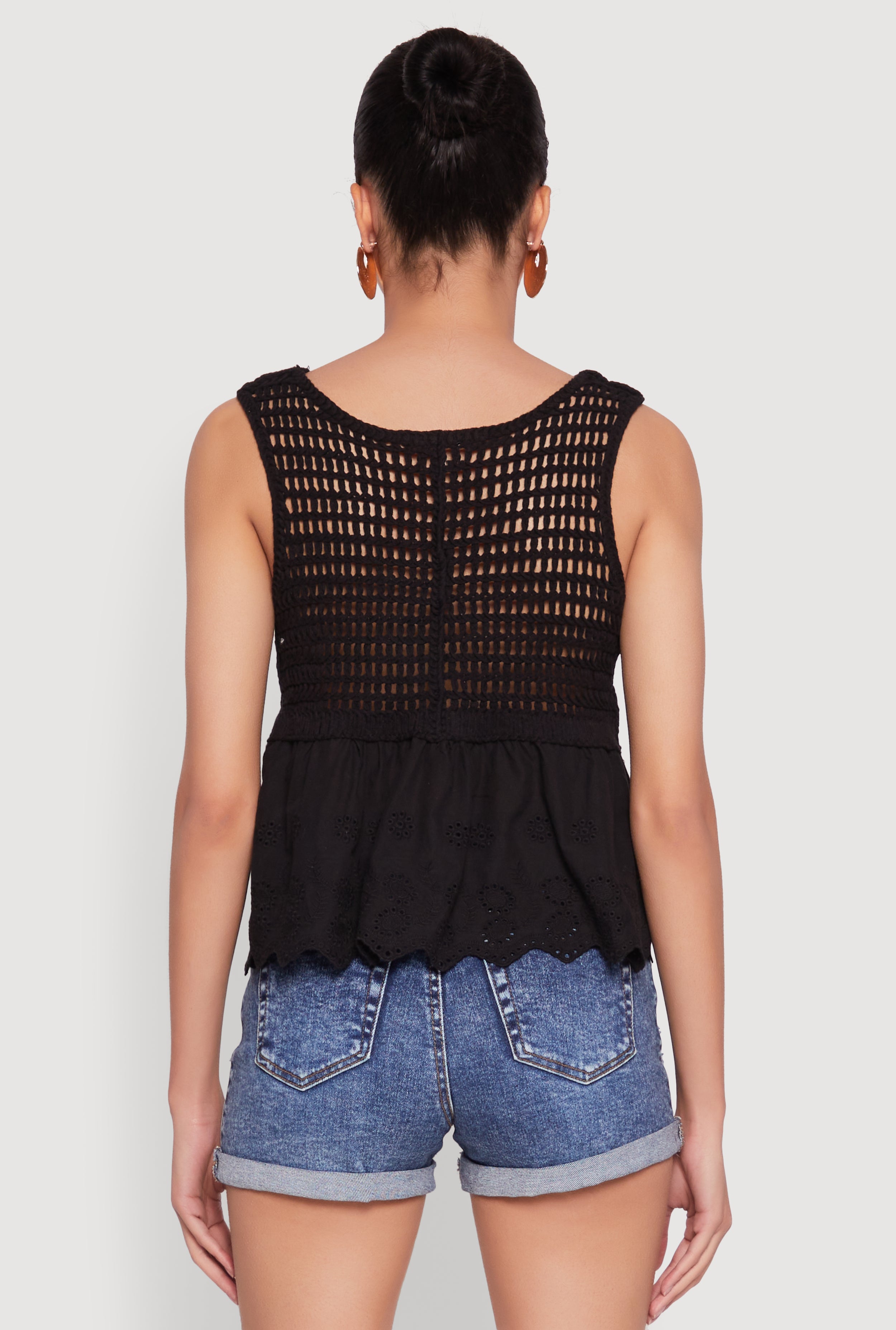 Get ready to turn heads with the Crochet Eyelet Half Button Tank Top, your new go-to for effortless style. Perfect for those sunny days or chill weekends, this sleeveless top features a breezy crochet eyelet design that adds a touch of boho charm. With its classic fit and timeless V-neck, it’s designed to flatter every figure and keep you feeling comfortable and confident all day long. Whether you're layering it over your favorite bralette or pairing it with denim, this peplum top is a versatile piece that upgrades your wardrobe with ease.