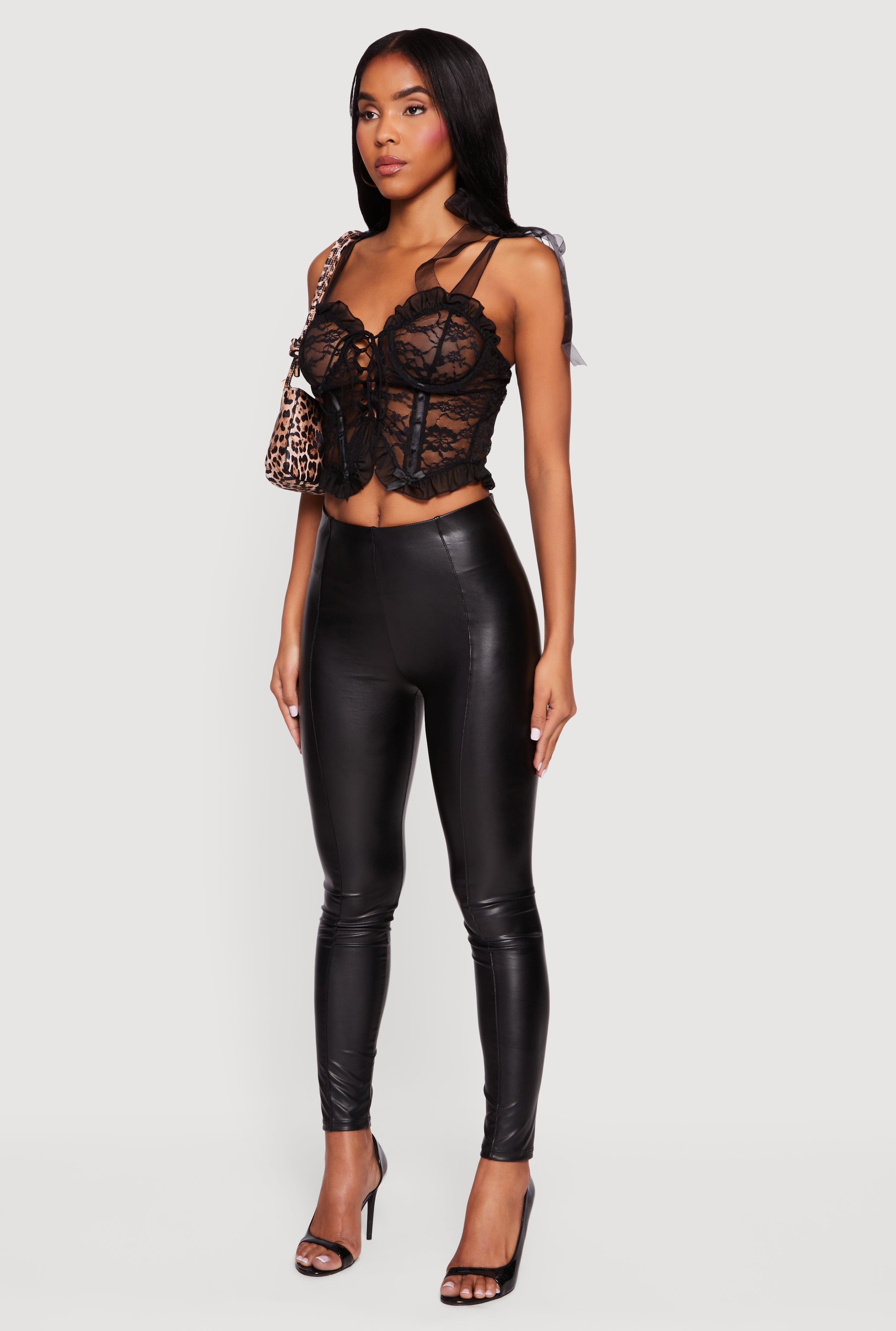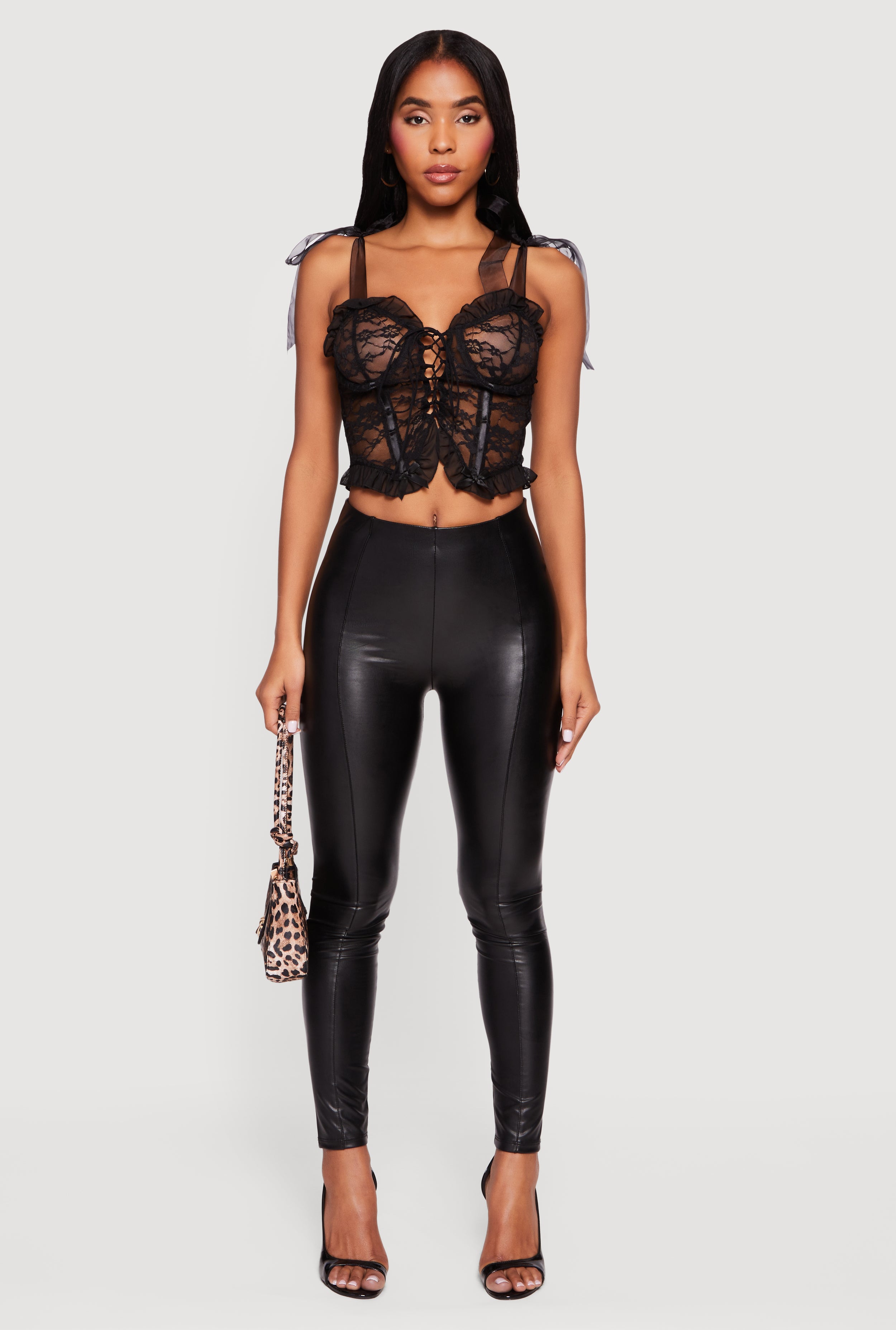 • Floral Lace Up Front Tie Strap Cropped Corset Top