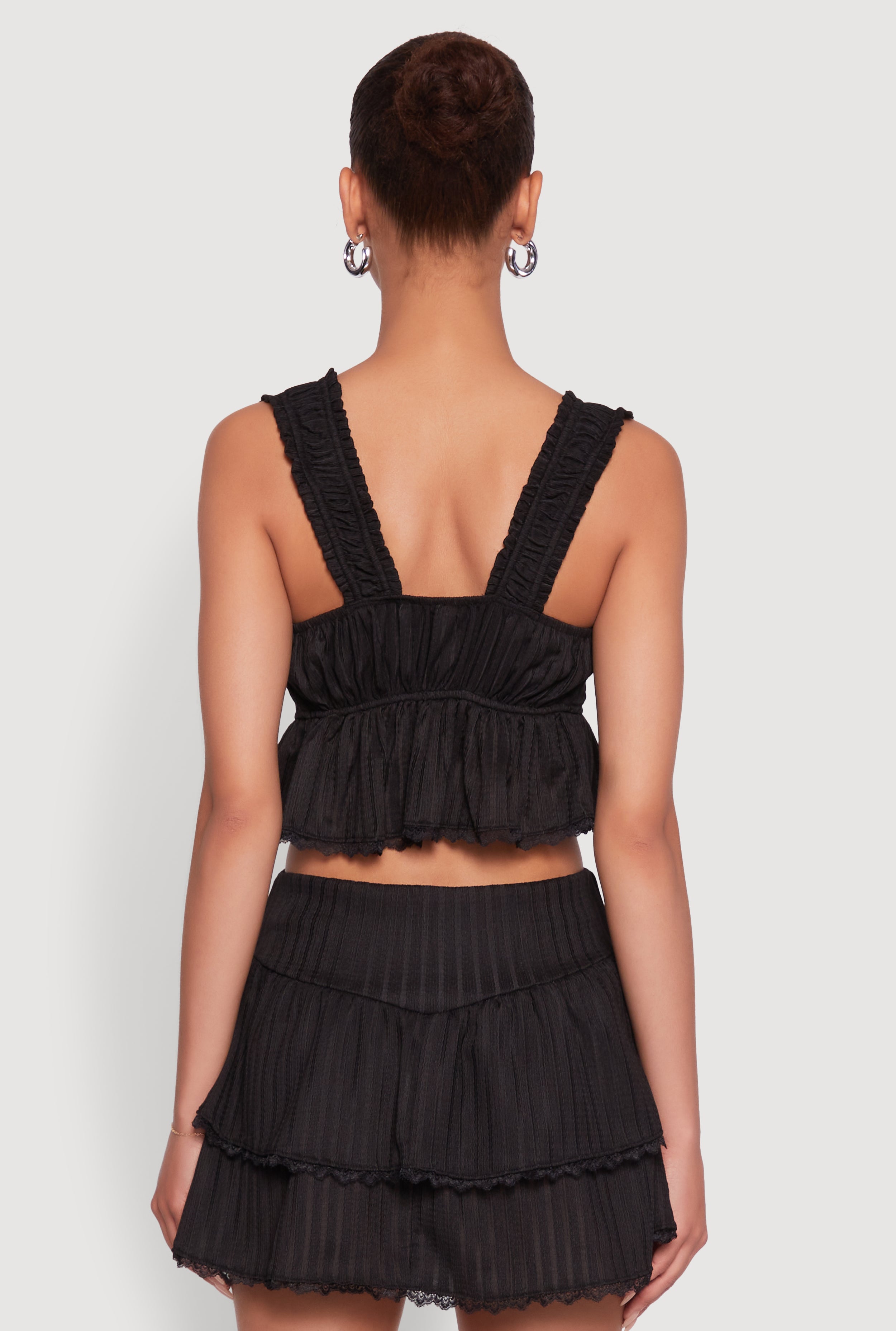 Elevate your night out look with the Haute Monde Lace Detail Crop Top with Tie Front. This sleeveless beauty features a classic fit and timeless silhouette that flatters every figure. Crafted from textured knit with a shadow stripe pattern, it adds just the right touch of elegance and edge. The scoop neck and lace details make it perfect for turning heads, while the cropped hem and tie front add a flirty, fun vibe. Whether you're hitting the dance floor or meeting friends for drinks, this top is your new go-to for effortless style and confidence.