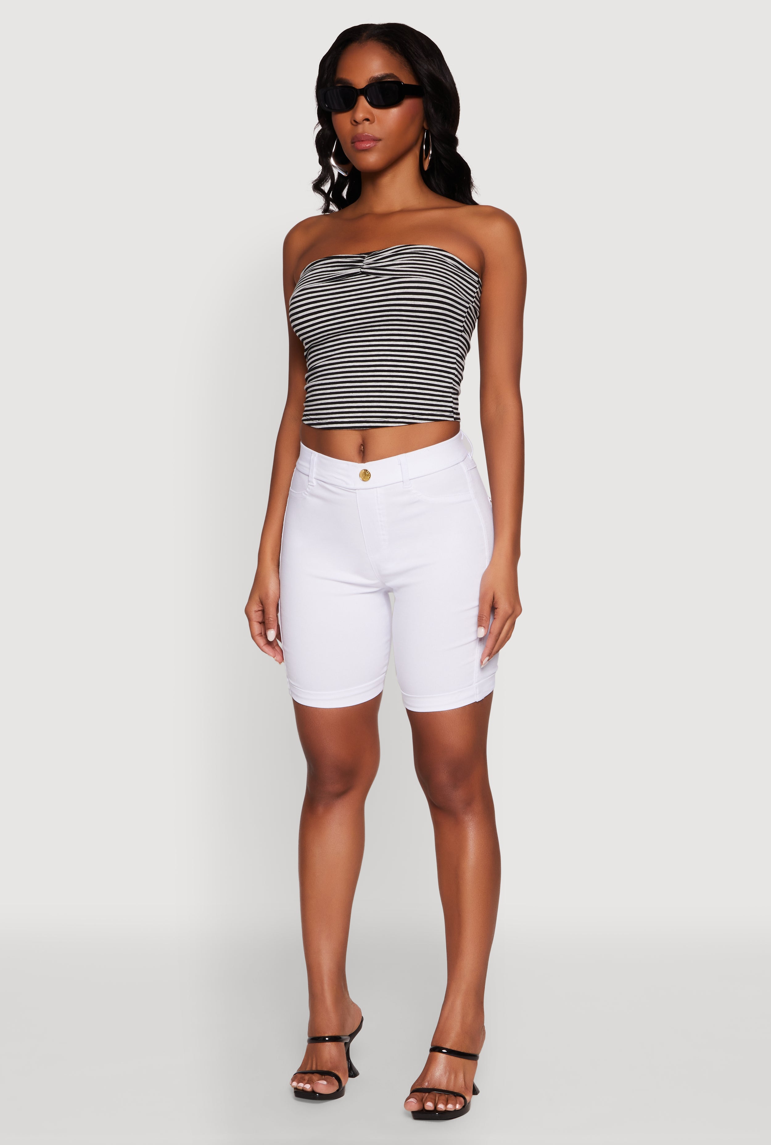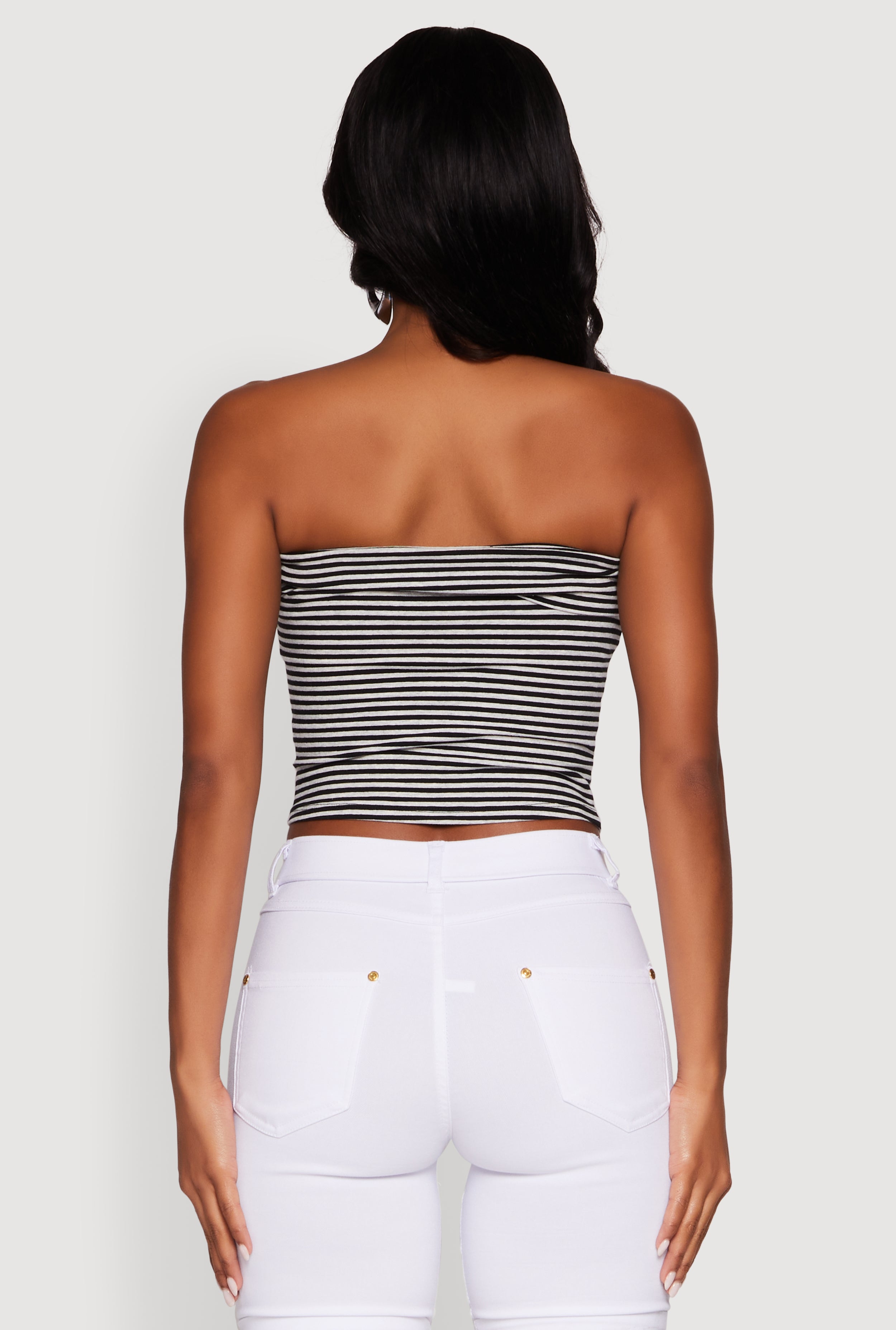• Madden Girl Striped Fold Over Cropped Tube Top