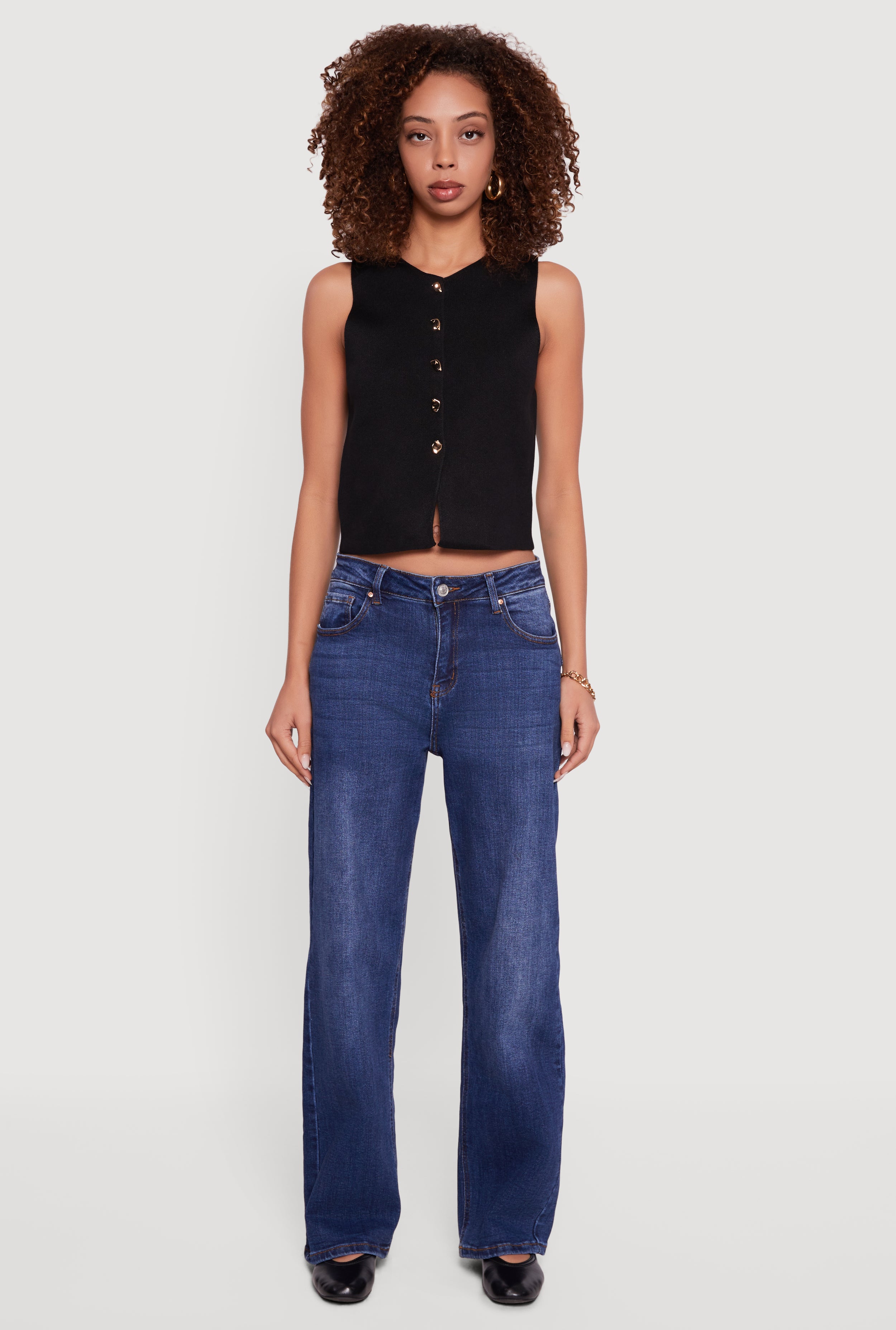 Shine bright and keep it cool with this Metallic Button Front Cropped Vest. Designed for those who love a little edge in their casual and office looks, this sleeveless vest features a sleek crew neck and a trendy cropped fit that pairs perfectly with high-waisted jeans or skirts. The metallic finish adds a subtle shimmer that catches the light, making it an instant standout piece for day or night. Button up and step out with confidence and style.