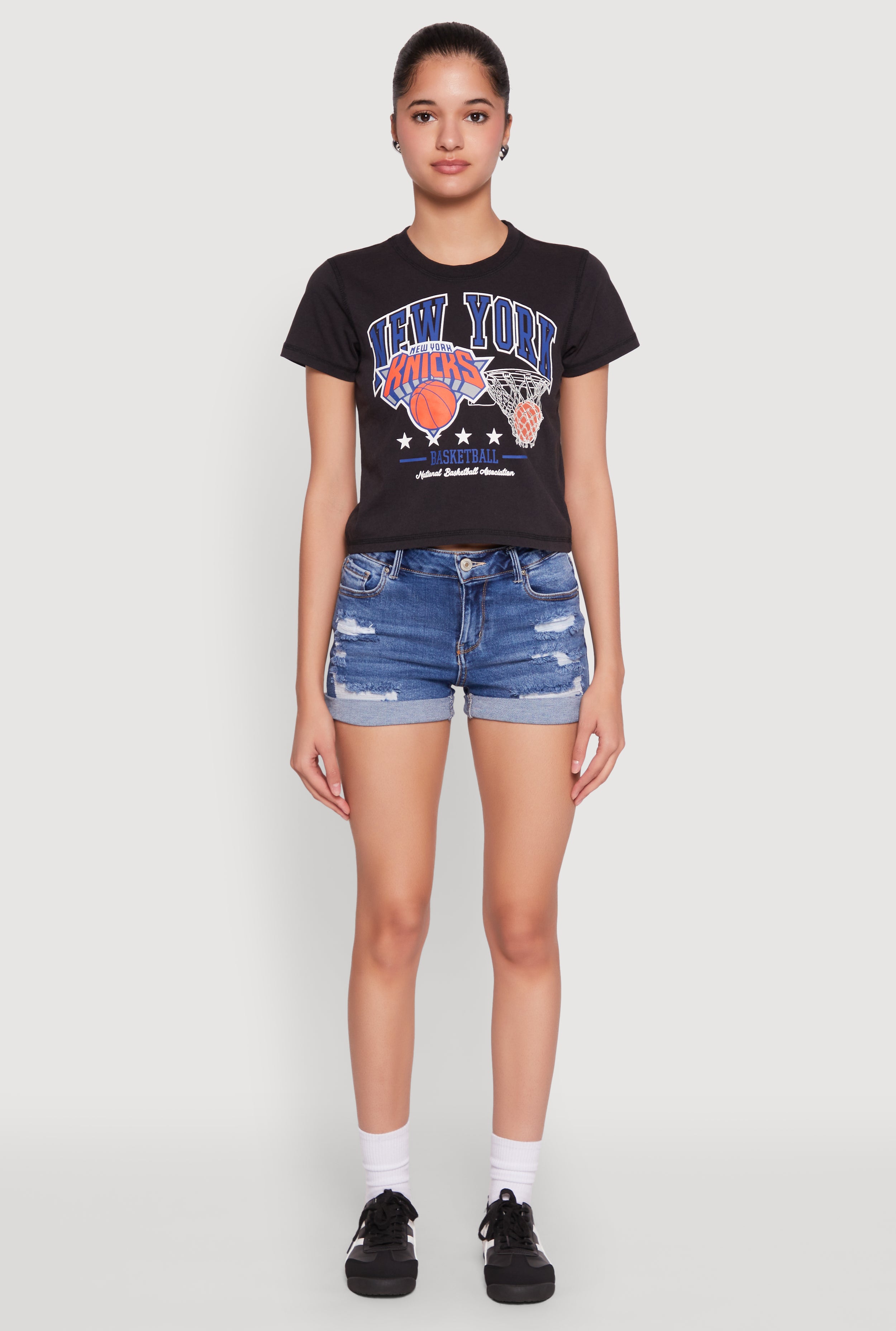Show off your team spirit with the NBA New York Knicks Cropped Tee. Perfect for game days or casual outings, this tee combines sporty style with a trendy cropped fit that’s all about comfort and flair. Whether you're cheering from the stands or hanging out with friends, this classic crew neck tee adds a fresh, athletic vibe to your wardrobe. Stay stylish and support your favorite team effortlessly!