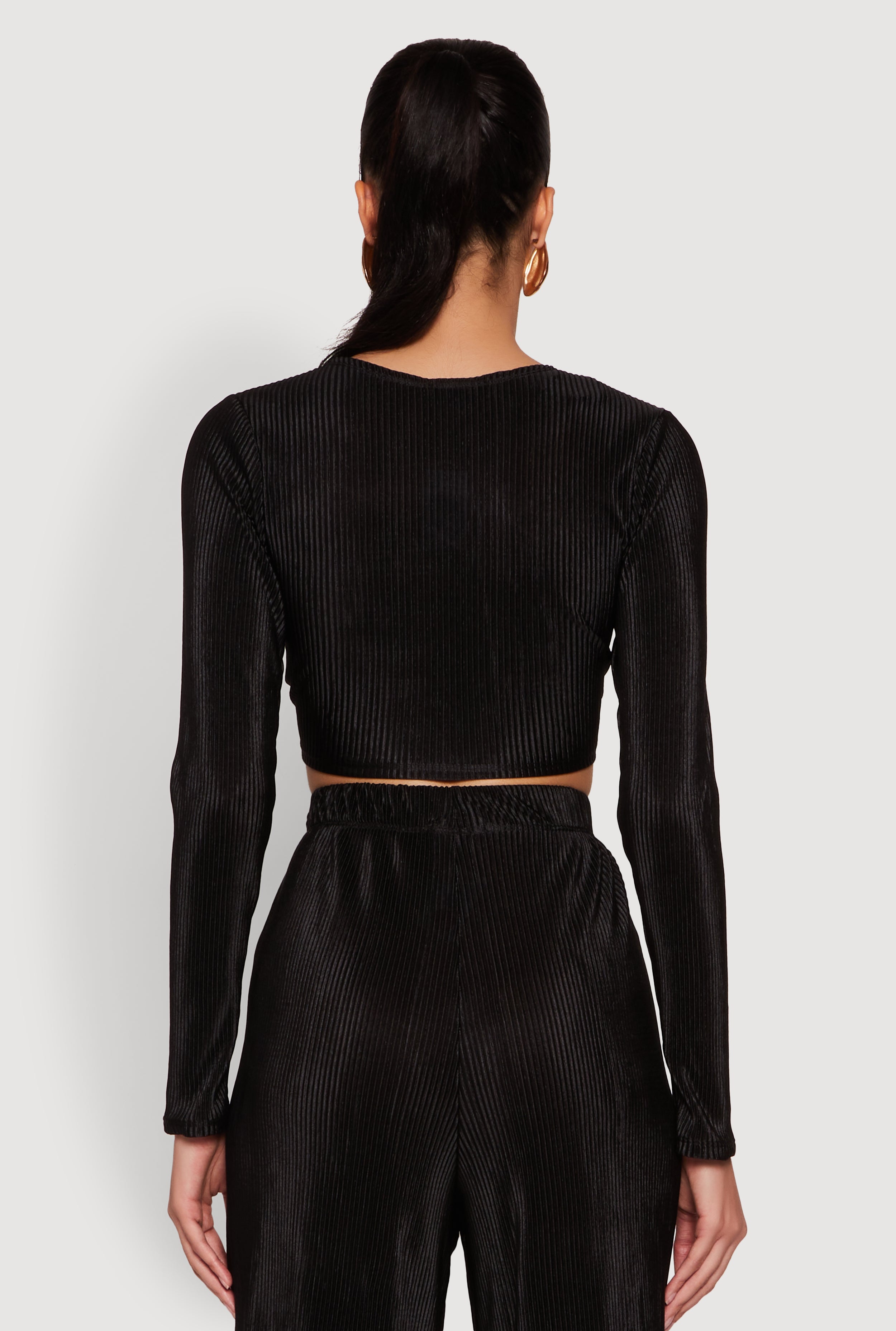 - Cropped hem perfect for pairing with high-waisted pants or skirts