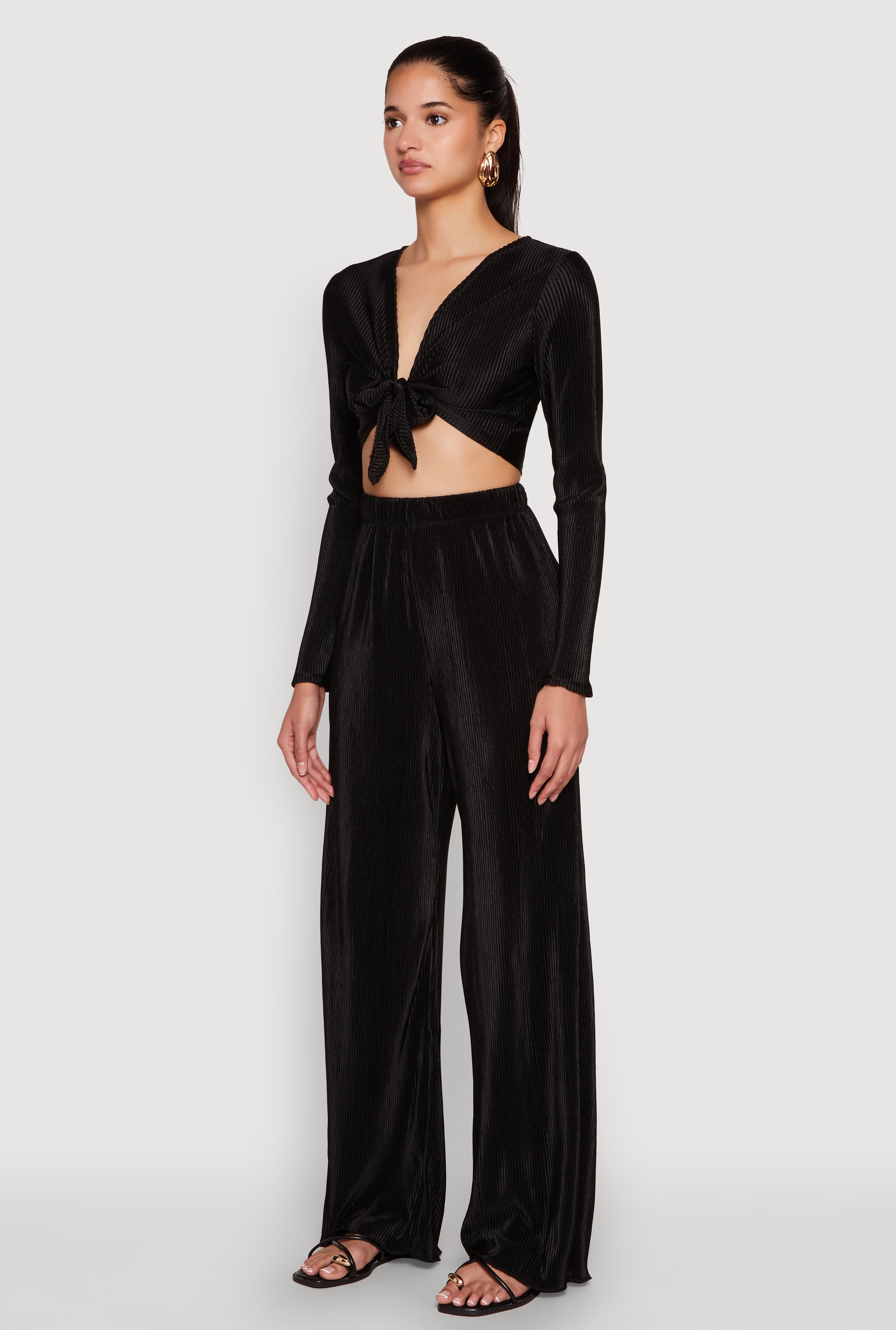 Turn heads and stay effortlessly chic with our Plisse Tie Front Crop Top. Perfect for those nights out or casual hangouts, this top combines a classic fit with a trendy plisse fabric that adds texture and flair. The plunging neckline and cropped hem make it a must-have for showing off your style. Whether you're hitting the club or just hanging with friends, this versatile piece is your new go-to for looking fabulous without breaking the bank.
