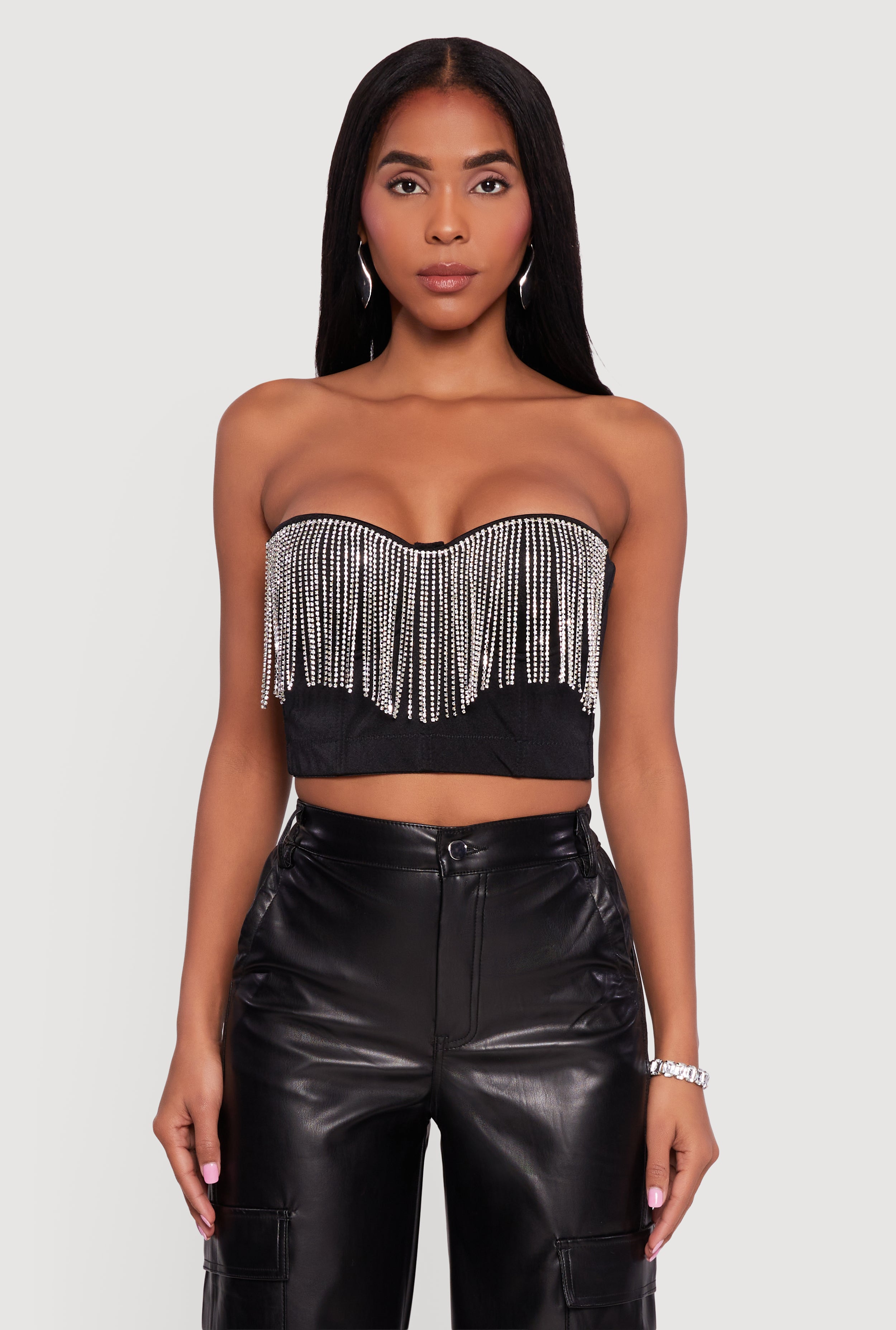Turn heads wherever you go with this Rhinestone Trim Bustier Crop Top. Featuring a flattering sweetheart neckline and sparkling rhinestone details, this sleeveless crop top is your new party essential. Designed with padded cups, boning, and underwire support, it offers both style and comfort for all-night confidence. The hook and eye closure ensures a secure fit, while its versatile design lets you rock it casual or glam up for a night out.