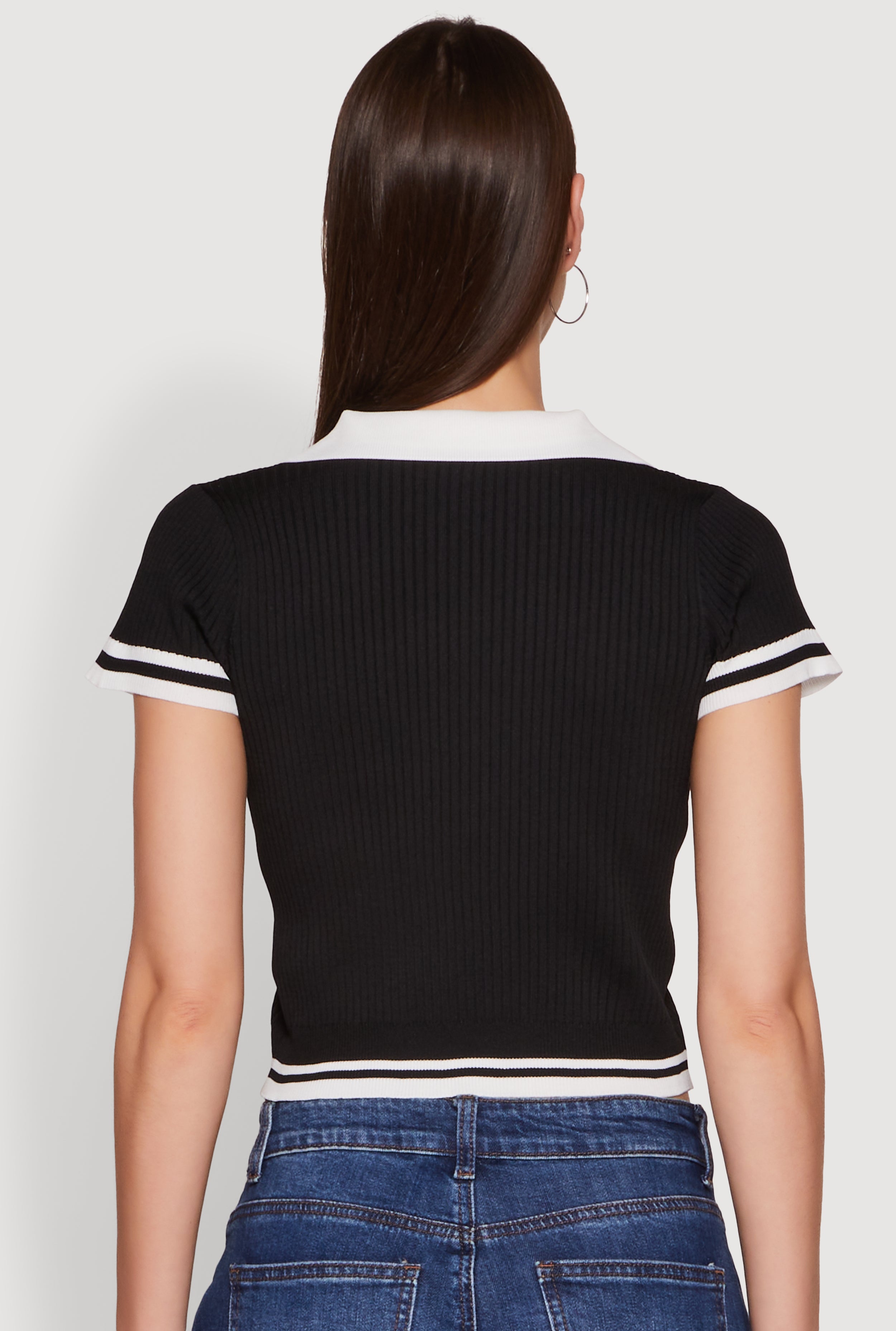 Get ready to elevate your casual game with the Ribbed Knit Varsity Stripe New York Cropped Polo Top. Perfect for adding a touch of sporty chic to your wardrobe, this trendy piece combines a classic fit with a timeless silhouette. The bold varsity stripe detail and graphic print of New York make it a standout choice for those who love to make a statement. Whether you're out with friends or just relaxing in style, this cropped polo is your new go-to for effortless, cool vibes.