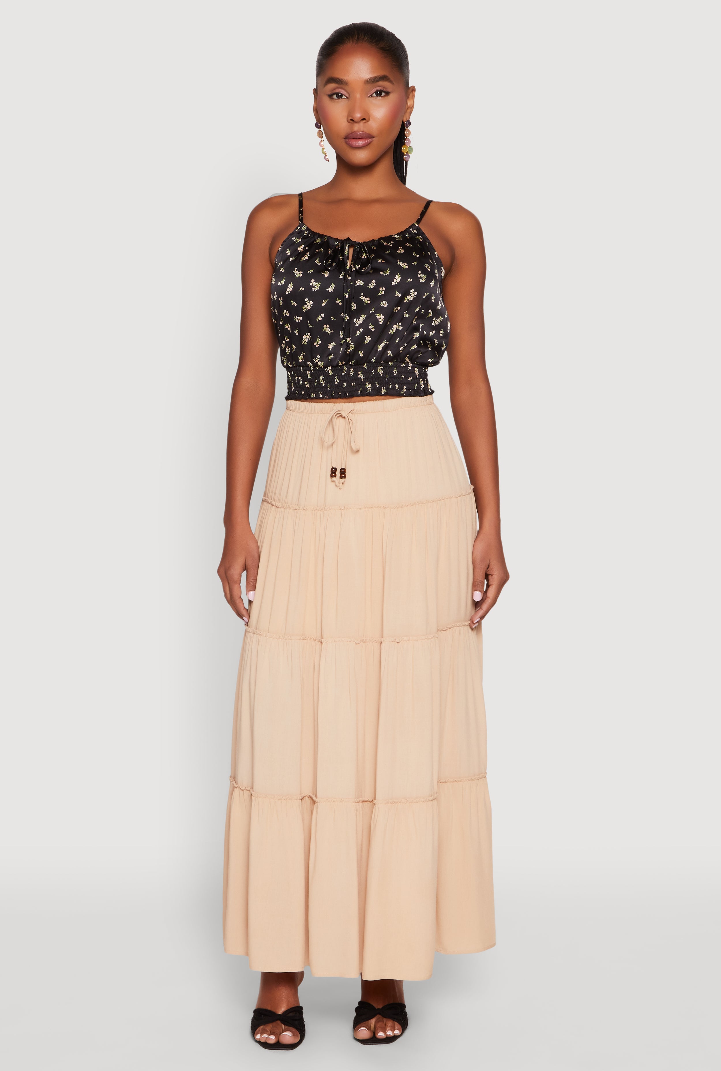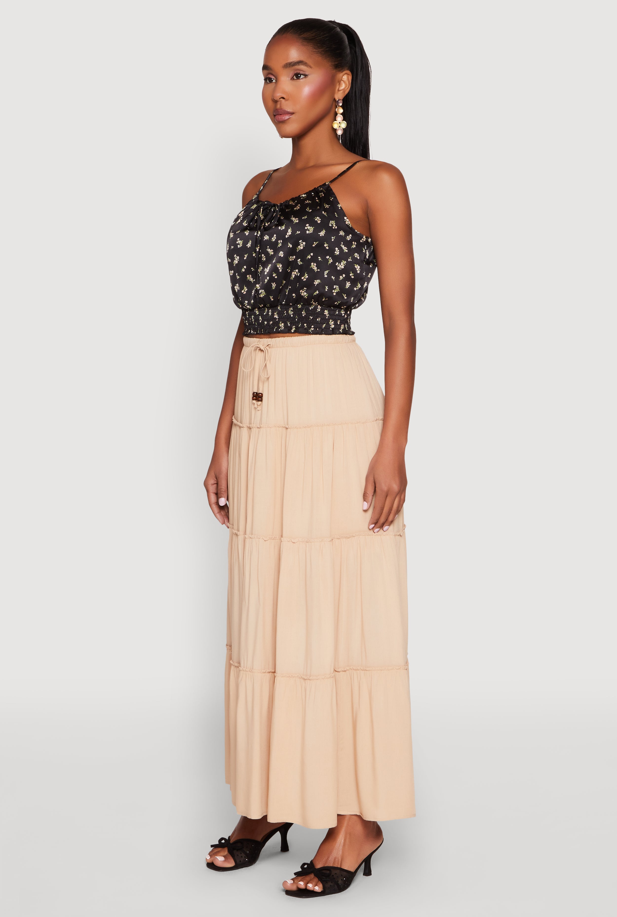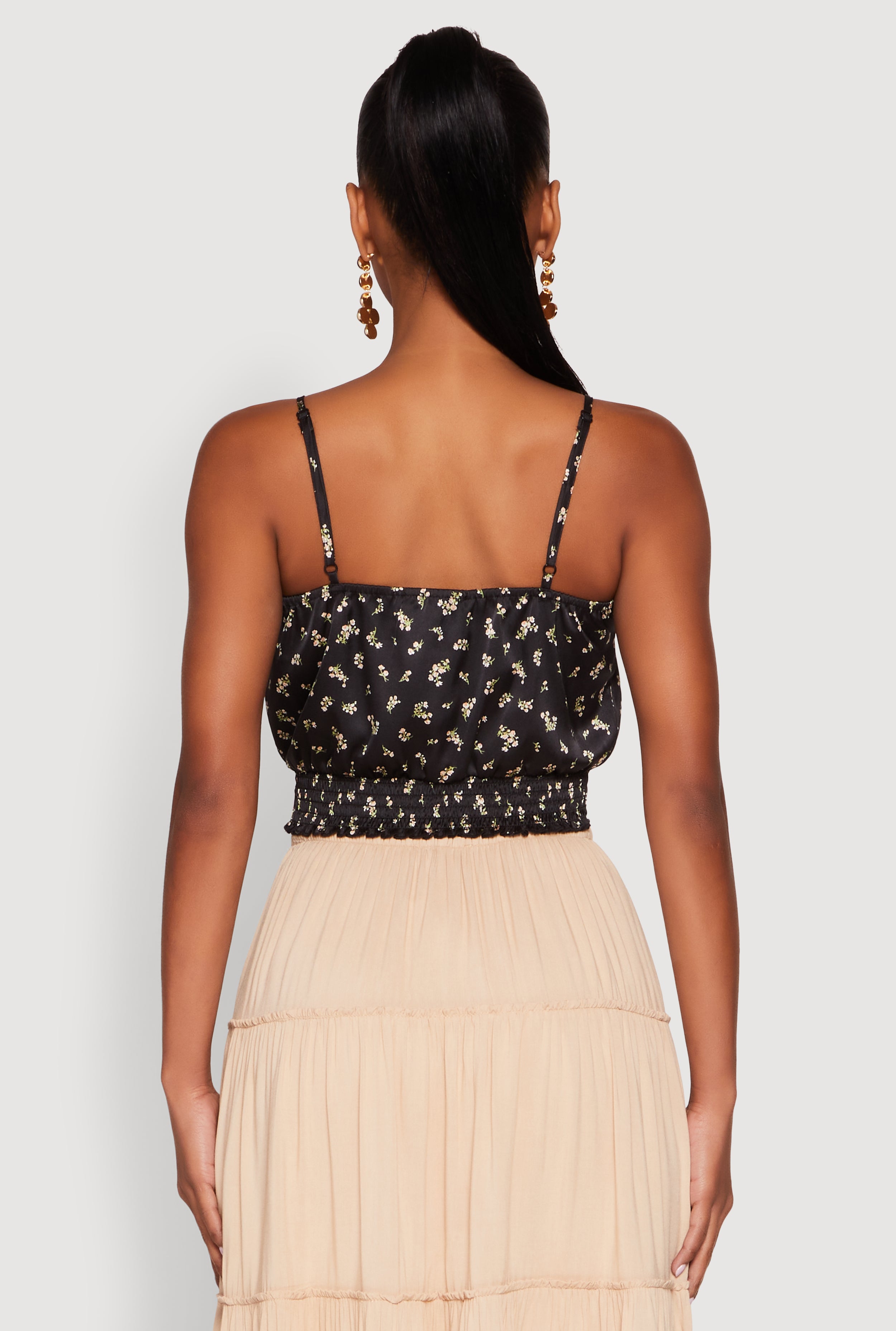 Get ready to turn heads with the Satin Floral Print Smocked Cami, your new go-to for effortless style and comfort. Featuring a chic tie front keyhole and a timeless notch neck, this sleeveless top is perfect for adding a touch of boho flair to your wardrobe. The cropped hem and satin fabric give it a flirty yet polished vibe, making it ideal for sunny days or casual nights out. Whether you're dressing up or down, this classic fit cami is designed to make you look and feel fabulous.