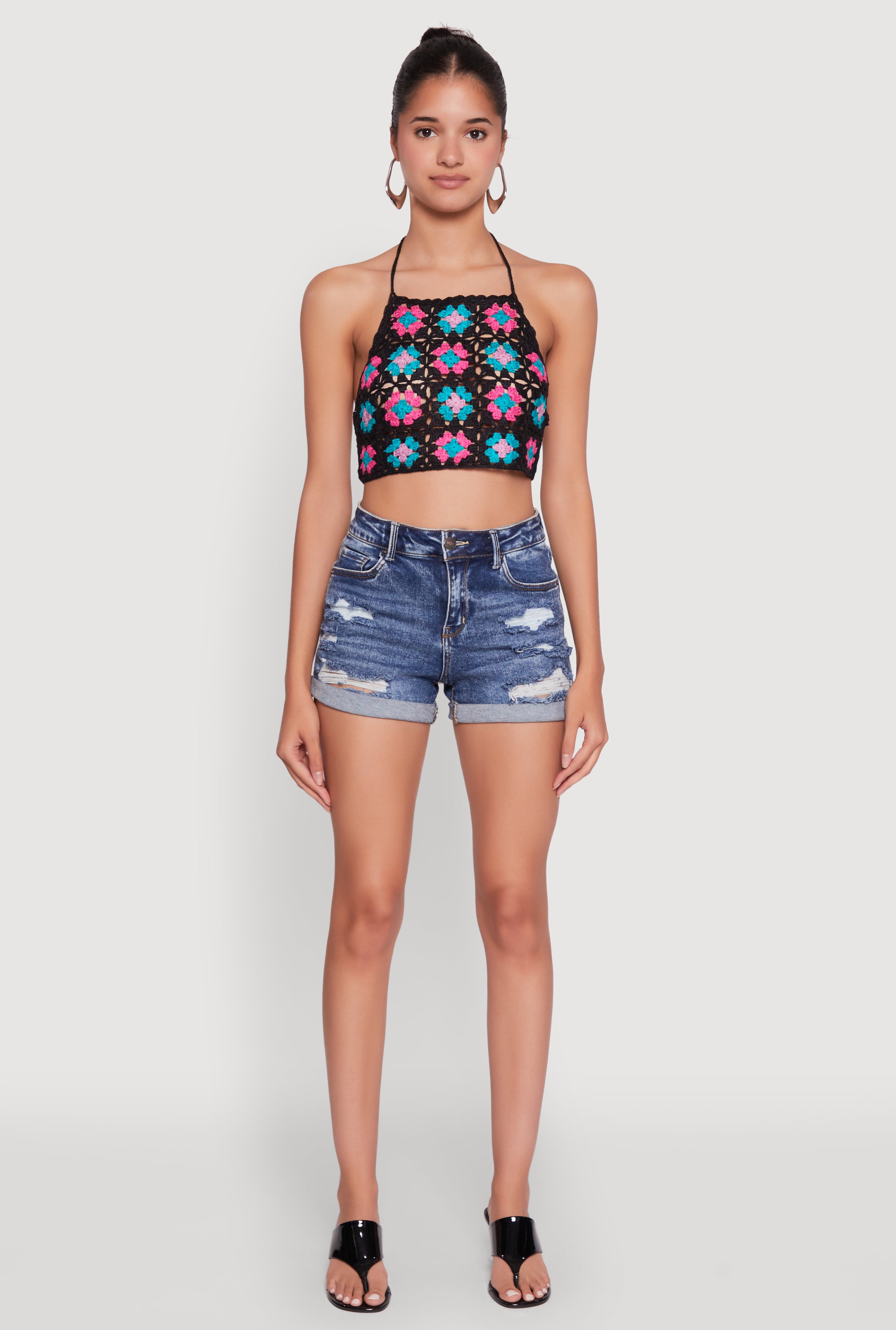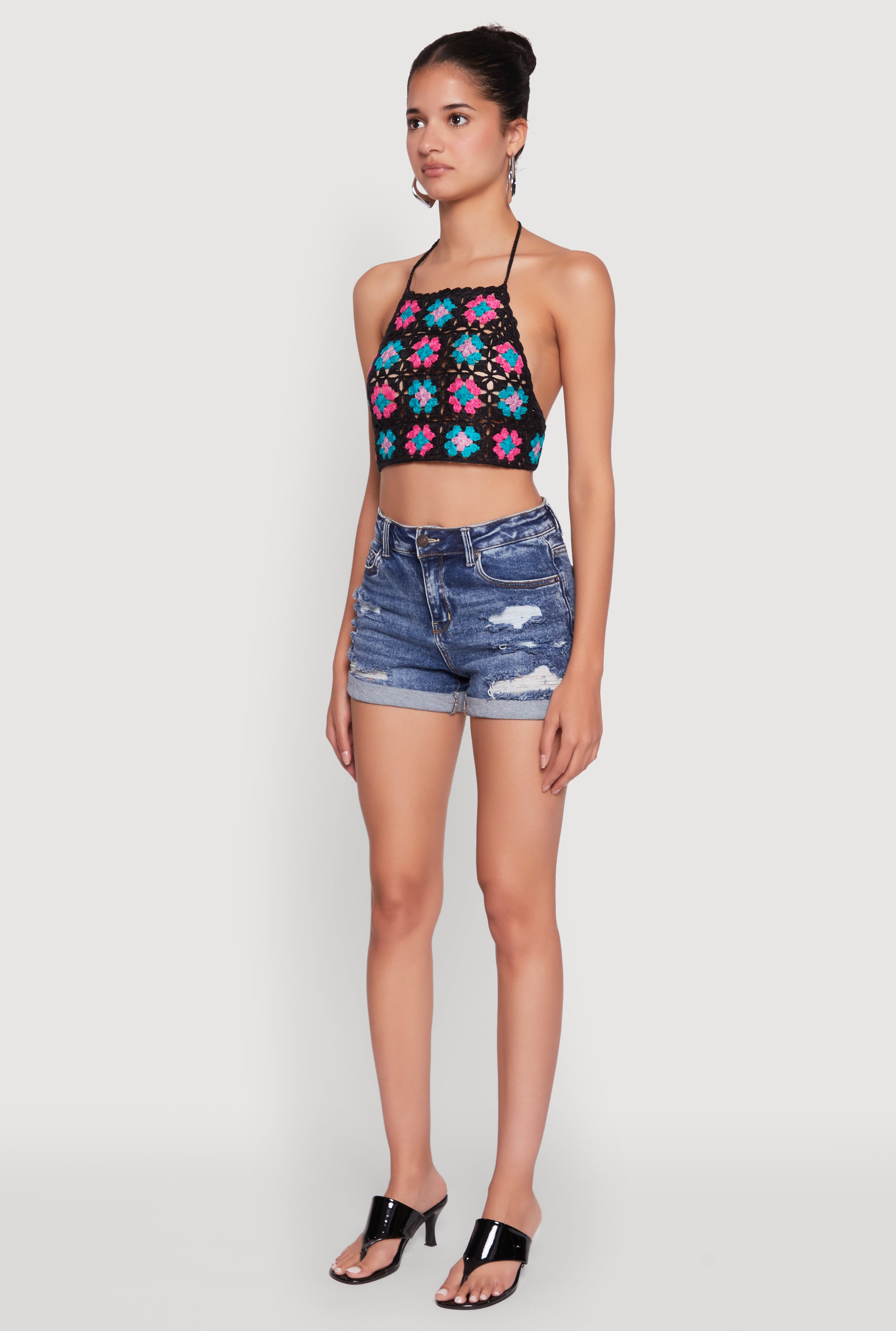 Trendy Patterned Crochet Tie Back Halter Crop Top