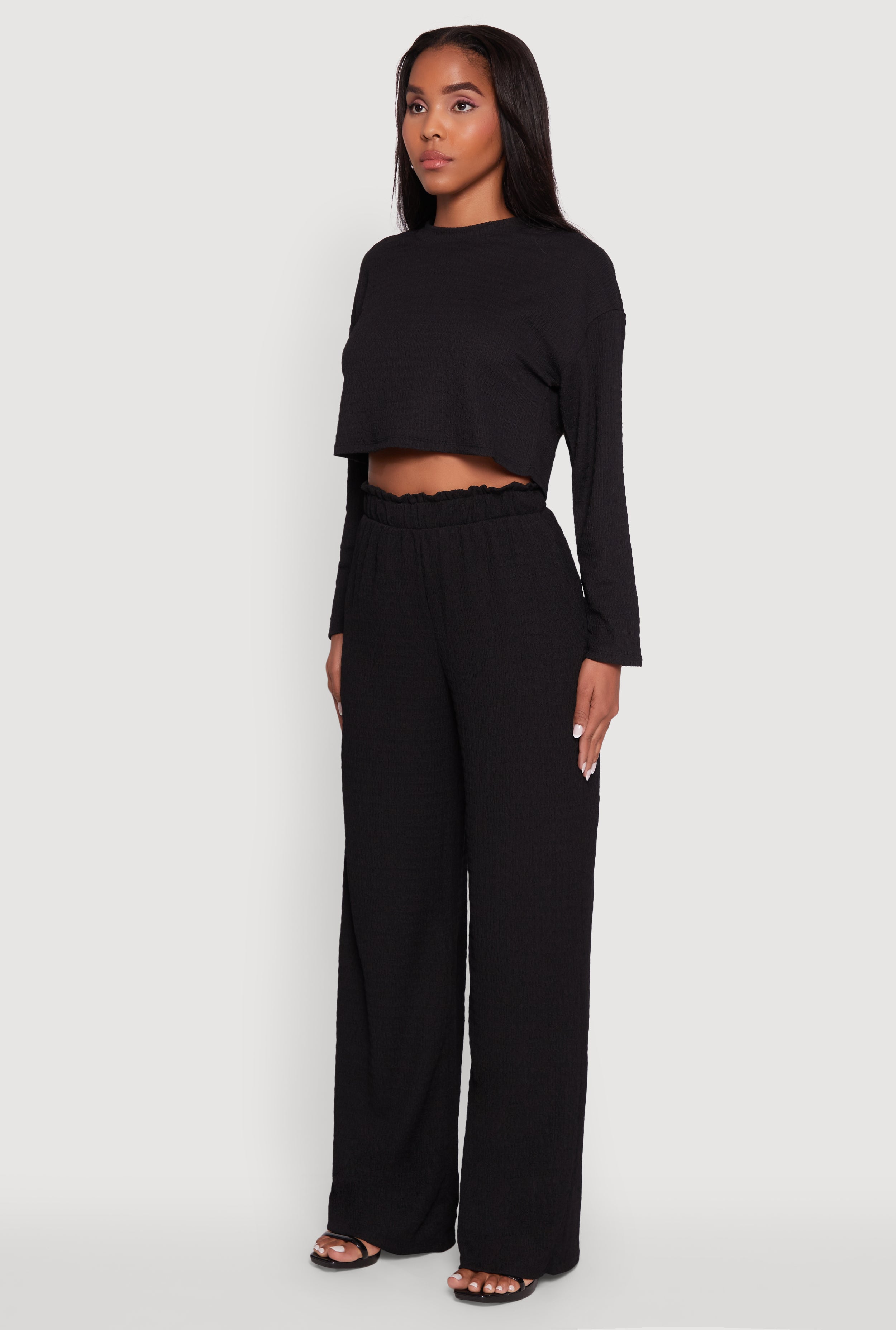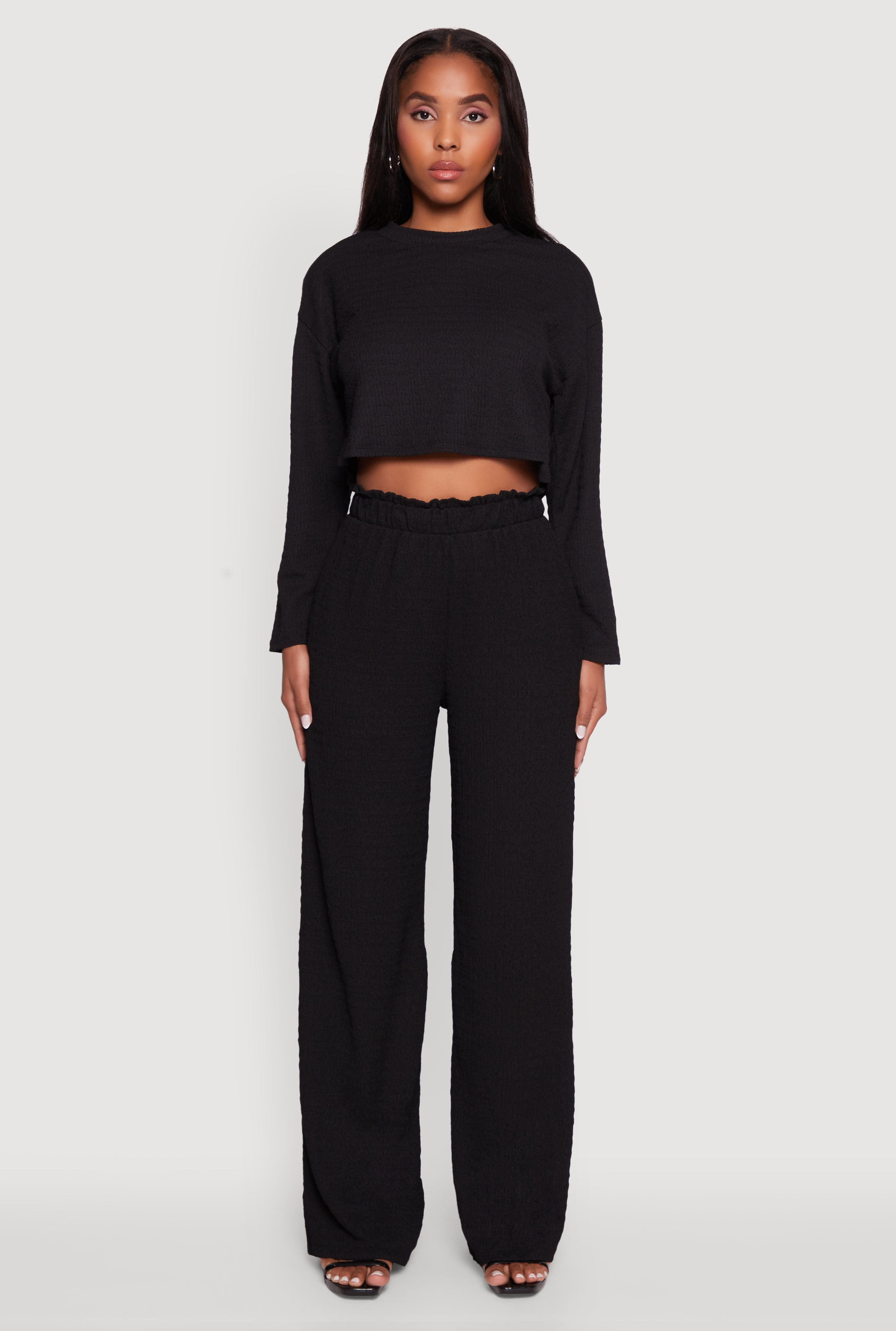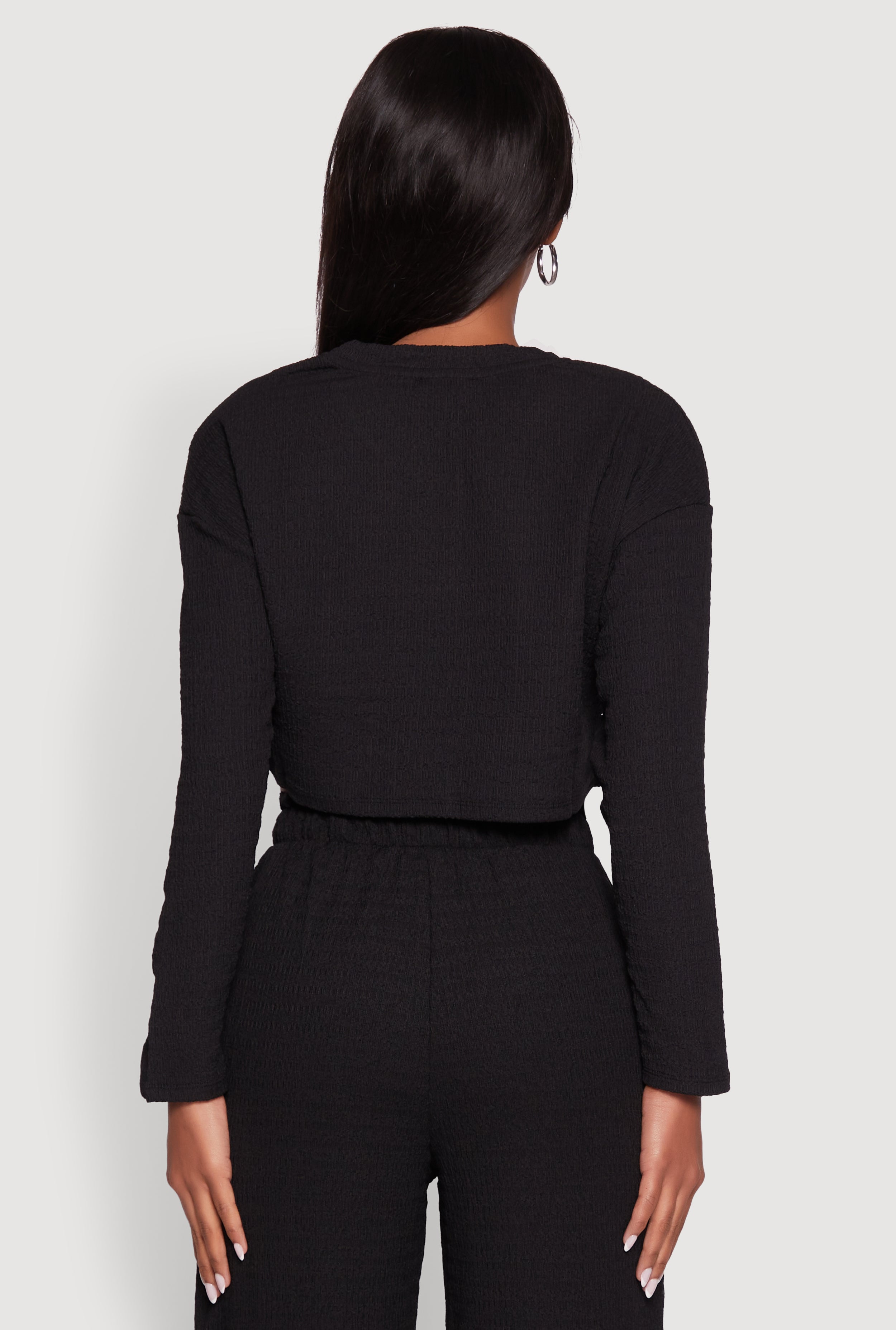 • Trendy Textured Knit Long Sleeve Crop Top