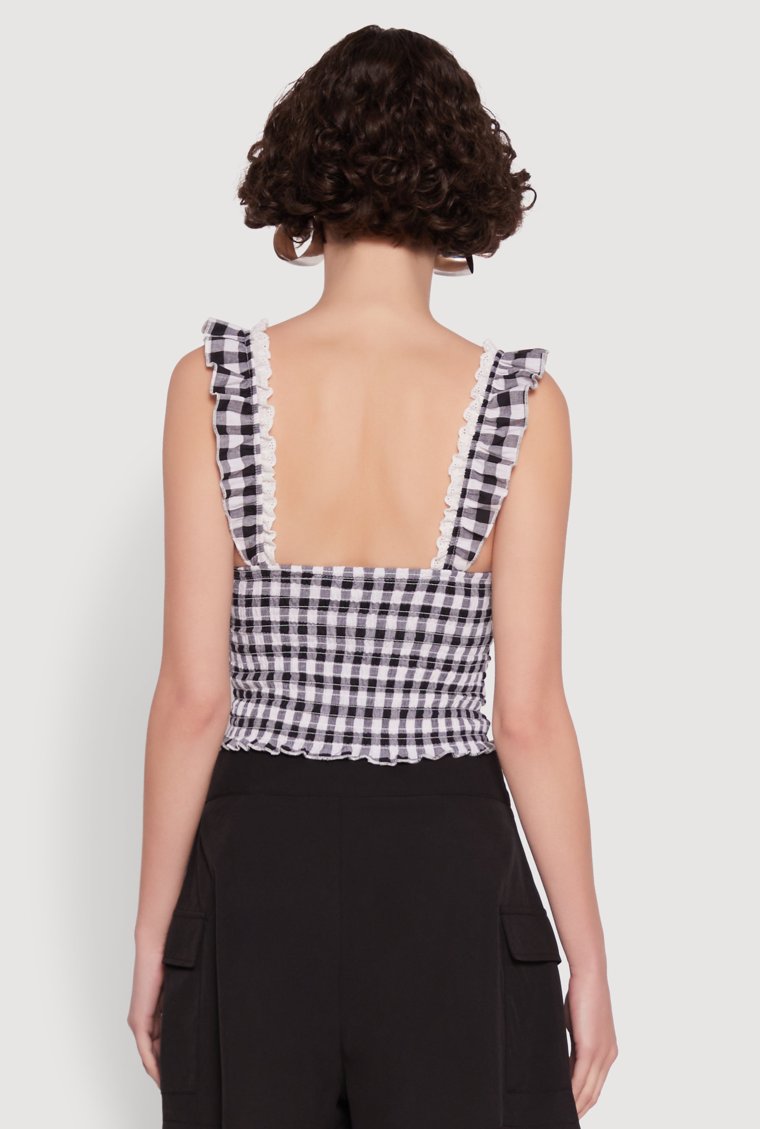 Discover the perfect blend of playful charm and effortless style with our Chic Lace Trim Gingham Smocked Blouse. Featuring a classic gingham pattern and delicate lace details, this sleeveless top is your new go-to for sunny days or casual outings. Its timeless silhouette and sweetheart neckline make it flattering for all body types, while the cropped hem adds a modern twist. Whether you're dressing up or keeping it casual, this blouse is designed to make you look and feel amazing.