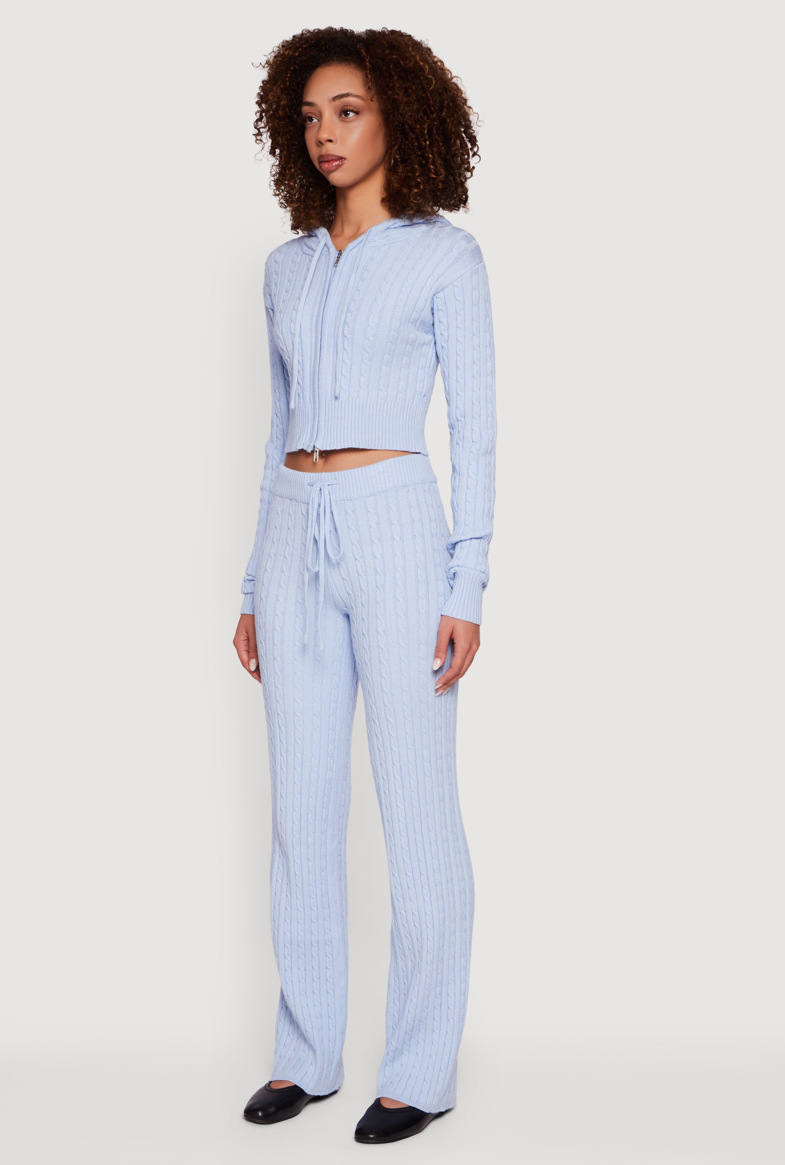 • Cropped Rib Knit Trim Cable Knit Sweater Hoodie