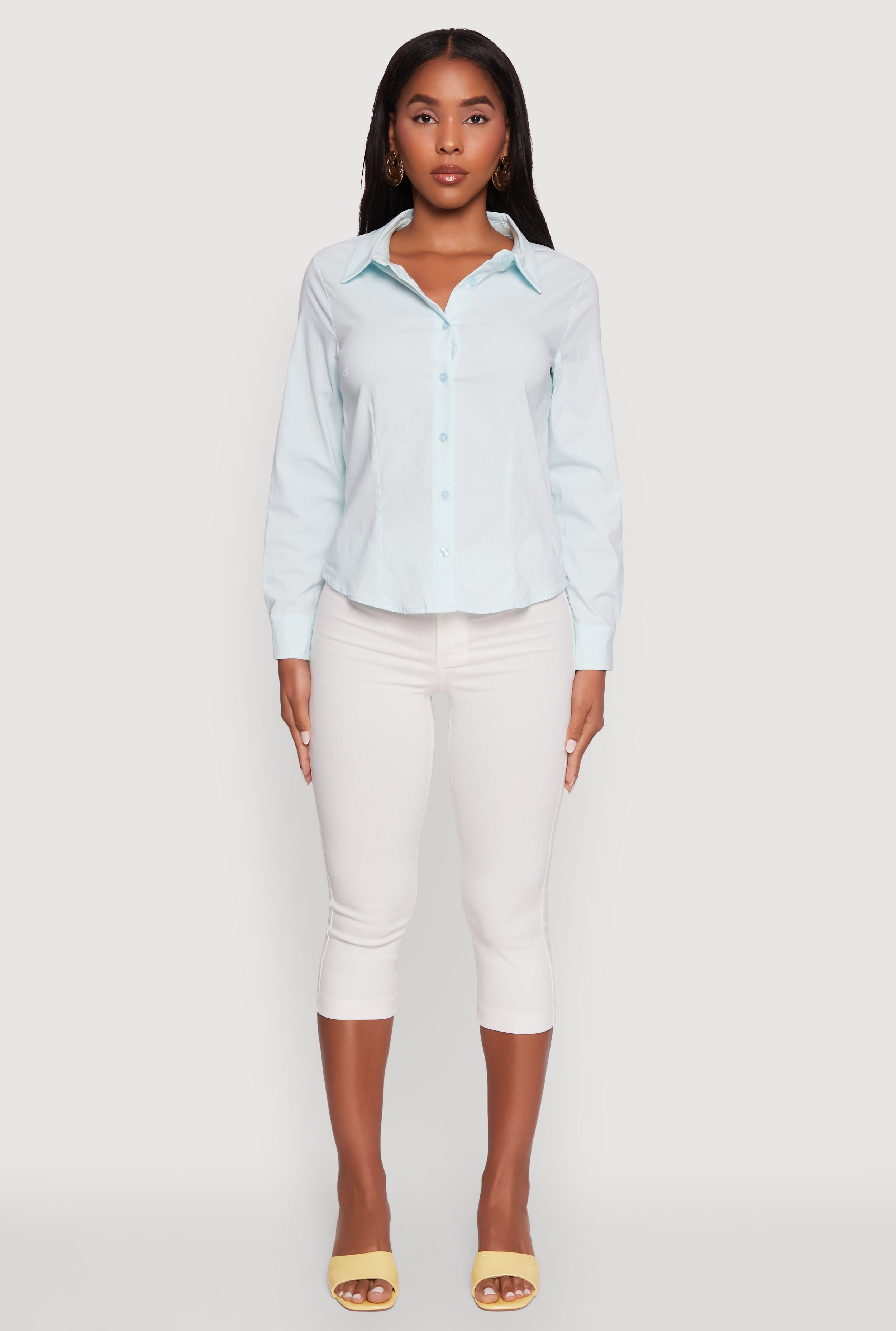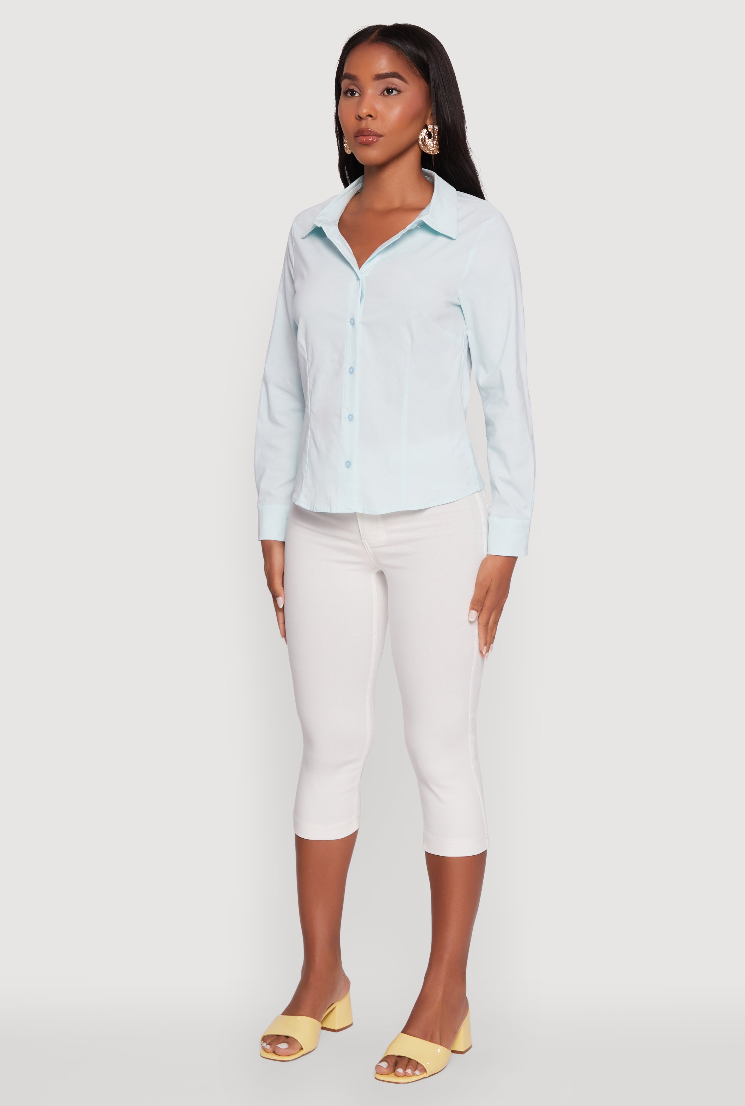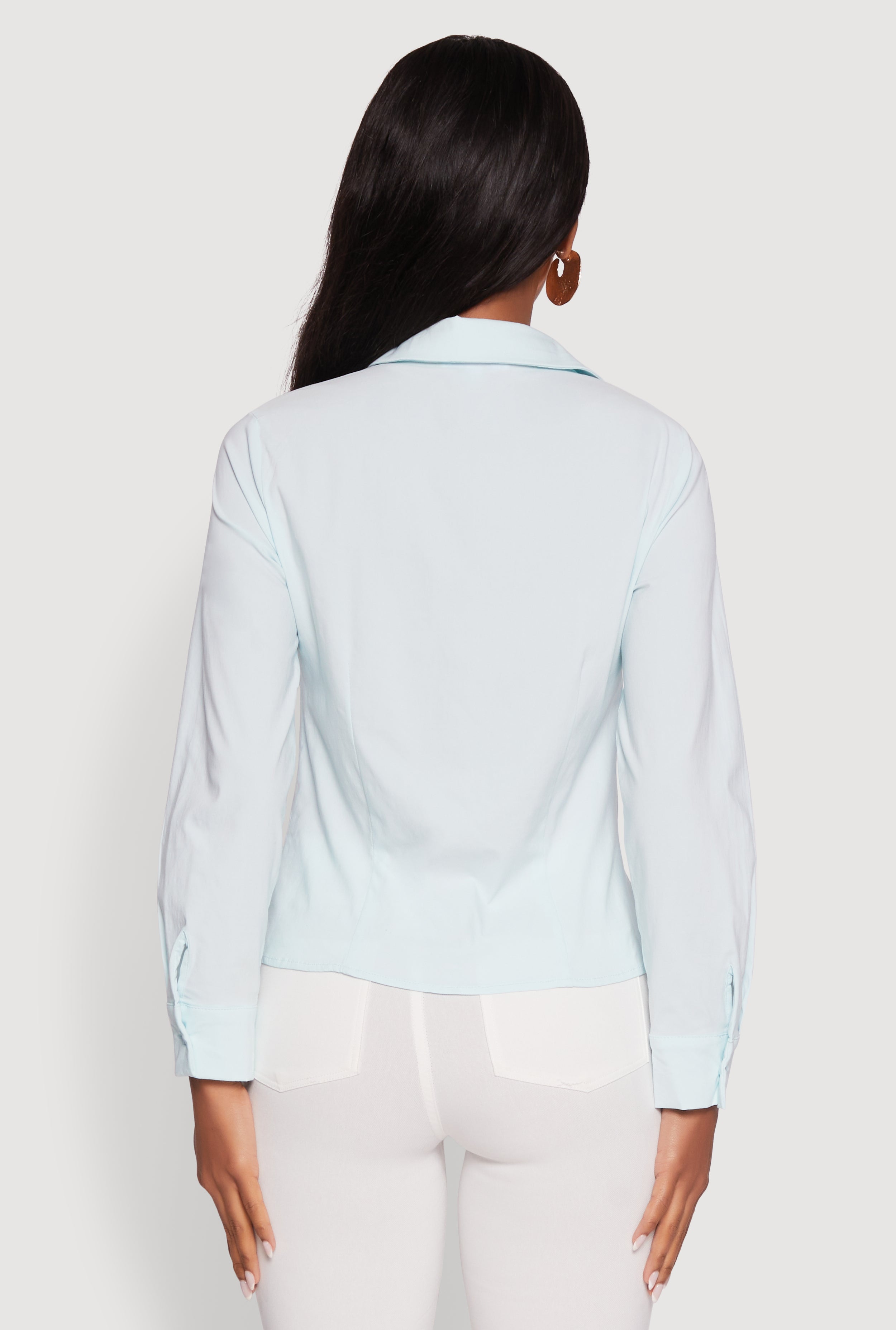 Step up your style game with the Iris Classic Fit Solid Button Front Long Sleeve Shirt. Designed to keep things effortlessly chic, this shirt features a timeless classic fit and a crisp shirt collar that works perfectly for both office hours and after-hours. Whether you're heading to a meeting or a casual dinner, this solid button-front shirt brings a polished vibe without trying too hard. It’s your new go-to for dressing up or down with ease.