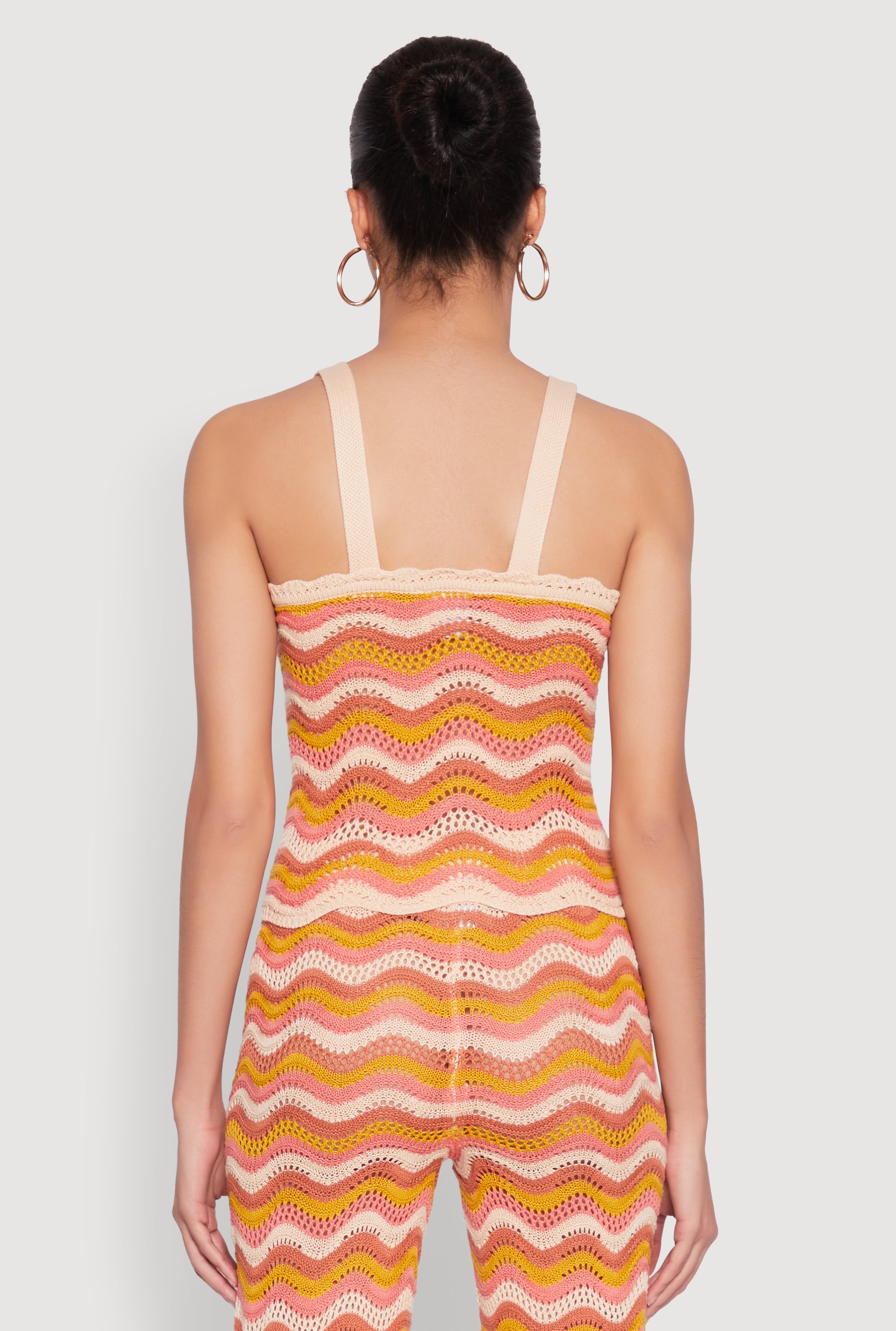 Get ready to turn heads with the Wavy Striped Crochet Crop Top. Perfect for adding a touch of boho chic to your wardrobe, this sleeveless top features a square neckline and a cropped hem that highlights your style and confidence. Its classic fit and timeless silhouette make it an effortless choice for any casual or festival look. Crafted from breathable crochet material, it's as comfy as it is cute. Whether you're rocking a set or pairing it with your favorite jeans, this top is your new go-to for sunny days and fun nights.