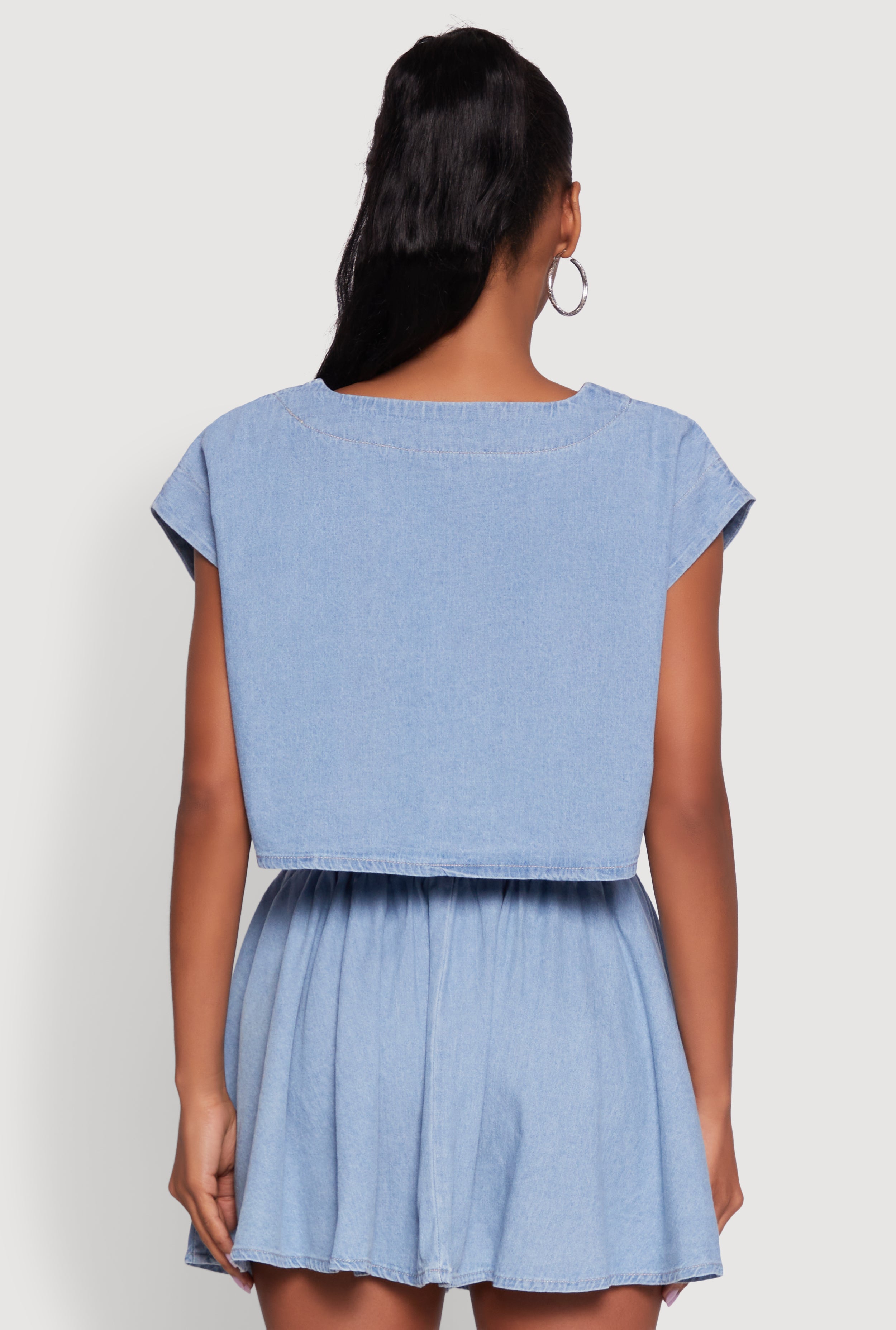 Denim Side Slit Boxy Crop Top