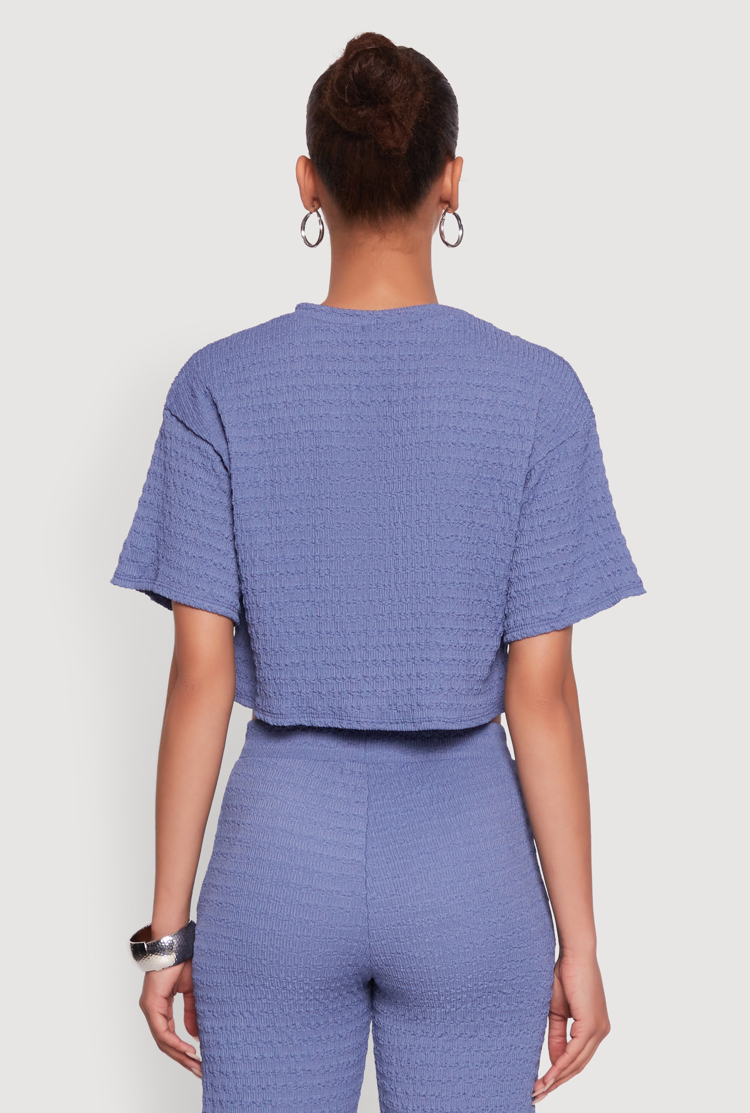 Ready to upgrade your everyday look? The Textured Knit Boxy Crop Top is your new go-to for effortless style and ultimate comfort. With its soft textured knit fabric and classic crew neck, this short sleeve crop top brings a fresh twist to your casual wardrobe. Its boxy, timeless fit means you can pair it with high-waisted jeans, skirts, or shorts for a vibe that is totally on point. Whether you're chilling with friends or running errands, this top keeps your outfit looking cool and laid-back without trying too hard.