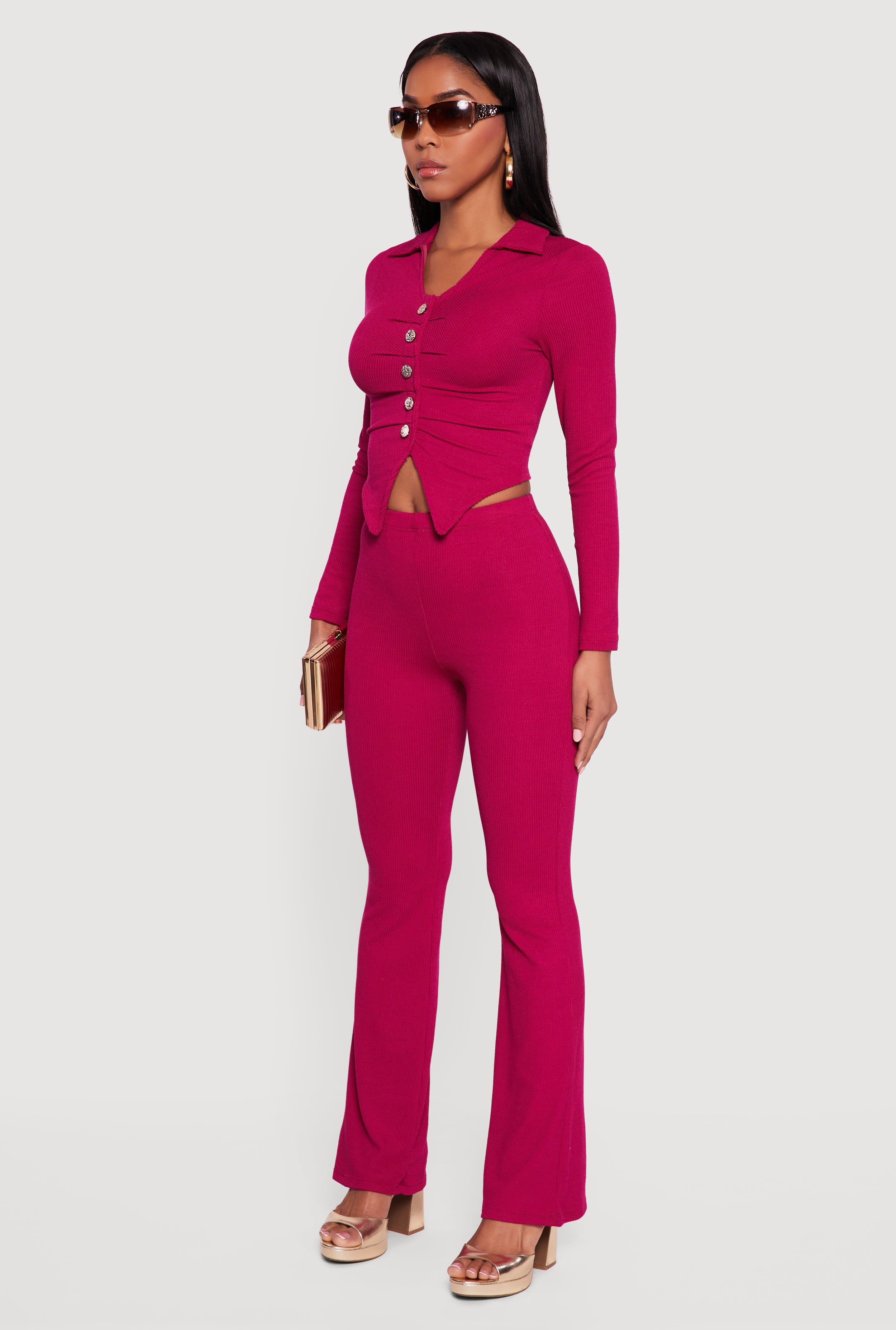 - Ribbed knit fabric that feels soft and moves with you