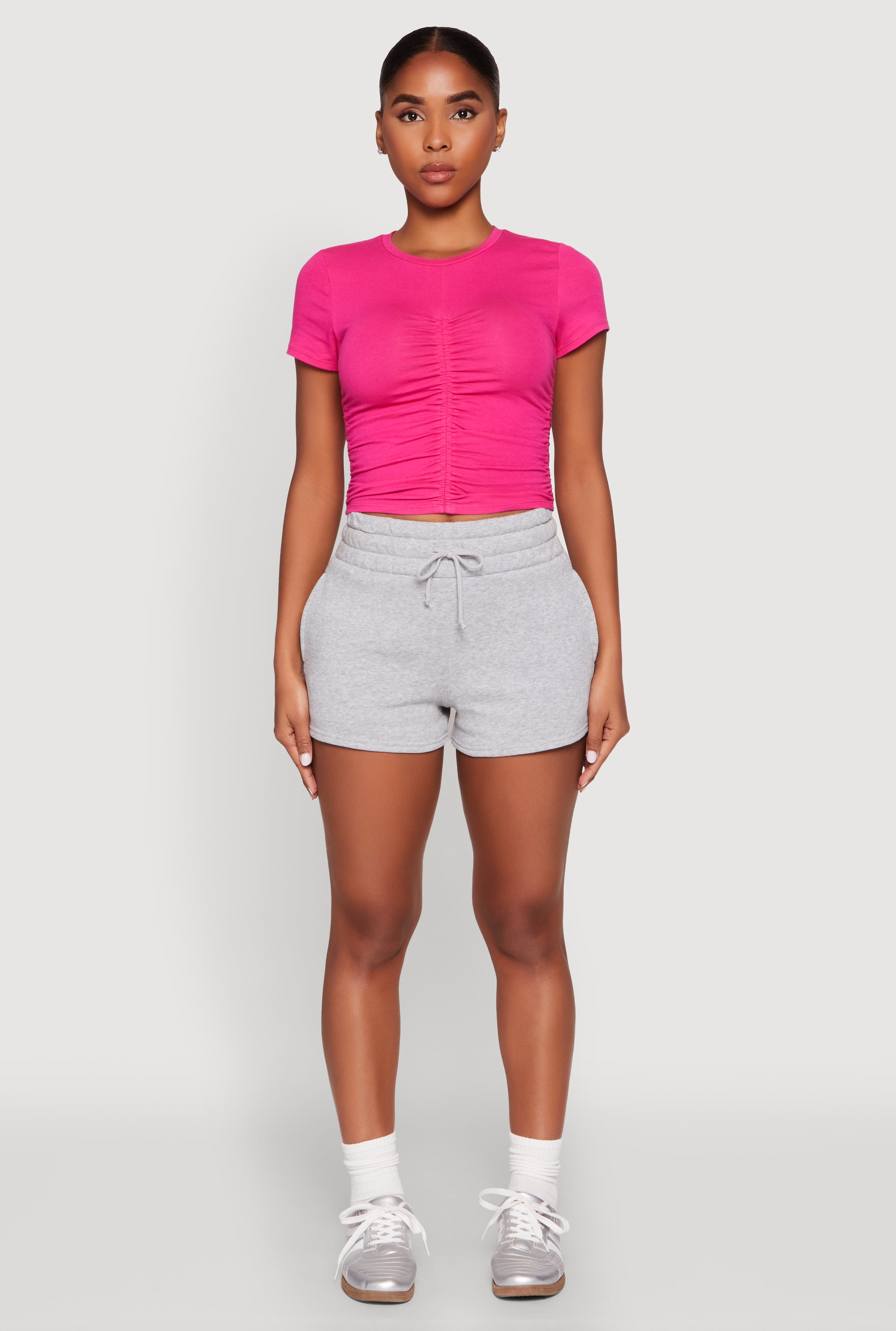 Upgrade your everyday style with the Ruched Crew Neck Cropped Tee from Ambiance. Perfectly versatile and effortlessly chic, this top adds a touch of trendy flair to any outfit. Whether you're heading out for a casual hangout or just want to feel comfortable yet cute, this classic fit tee with its cropped hem is your new go-to. The short sleeves and crew neck make it ideal for warm days, and the ruching detail adds a subtle, stylish twist. Affordable and on-trend, it's a must-have for all fashion-forward women who love to stay ahead of the curve.