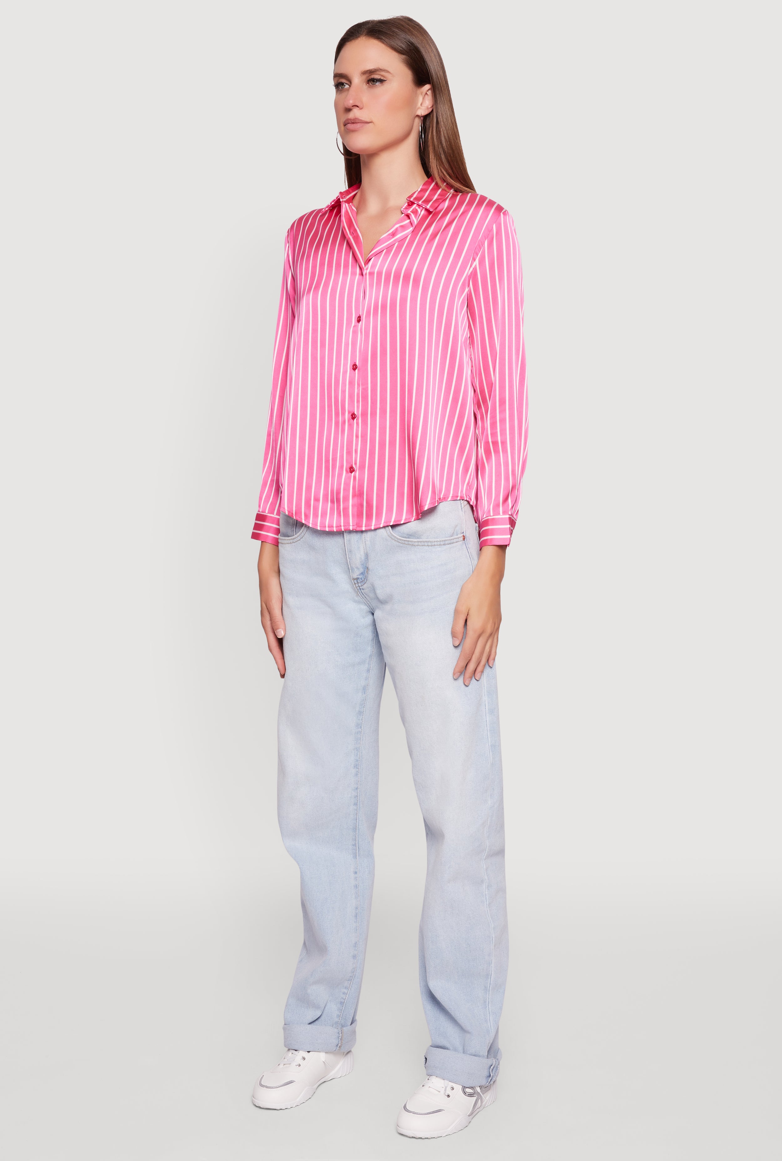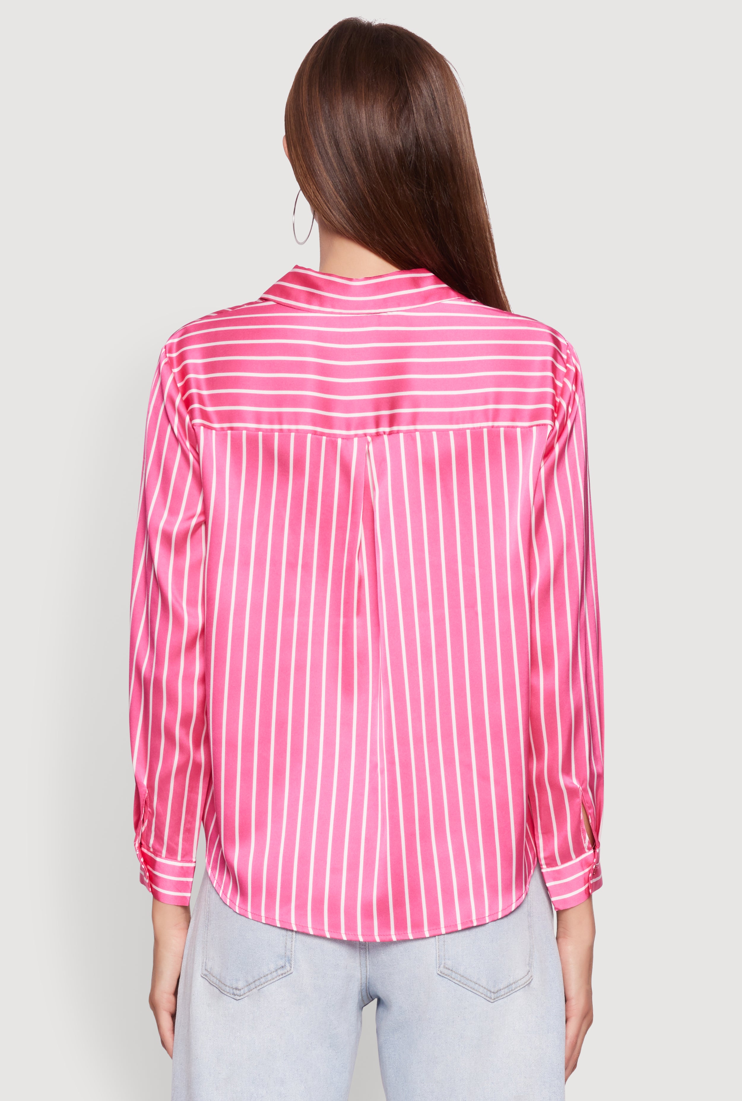 Step up your style game with this Trendy Satin Striped Long Sleeve Shirt. Crafted from smooth satin, it offers a classic fit that flatters every figure while keeping you comfortable from desk to dinner. The timeless shirt collar and chic striped pattern make it perfect for both casual hangouts and polished office looks. Ready to turn heads without trying too hard? This shirt is your new go-to for effortless cool.