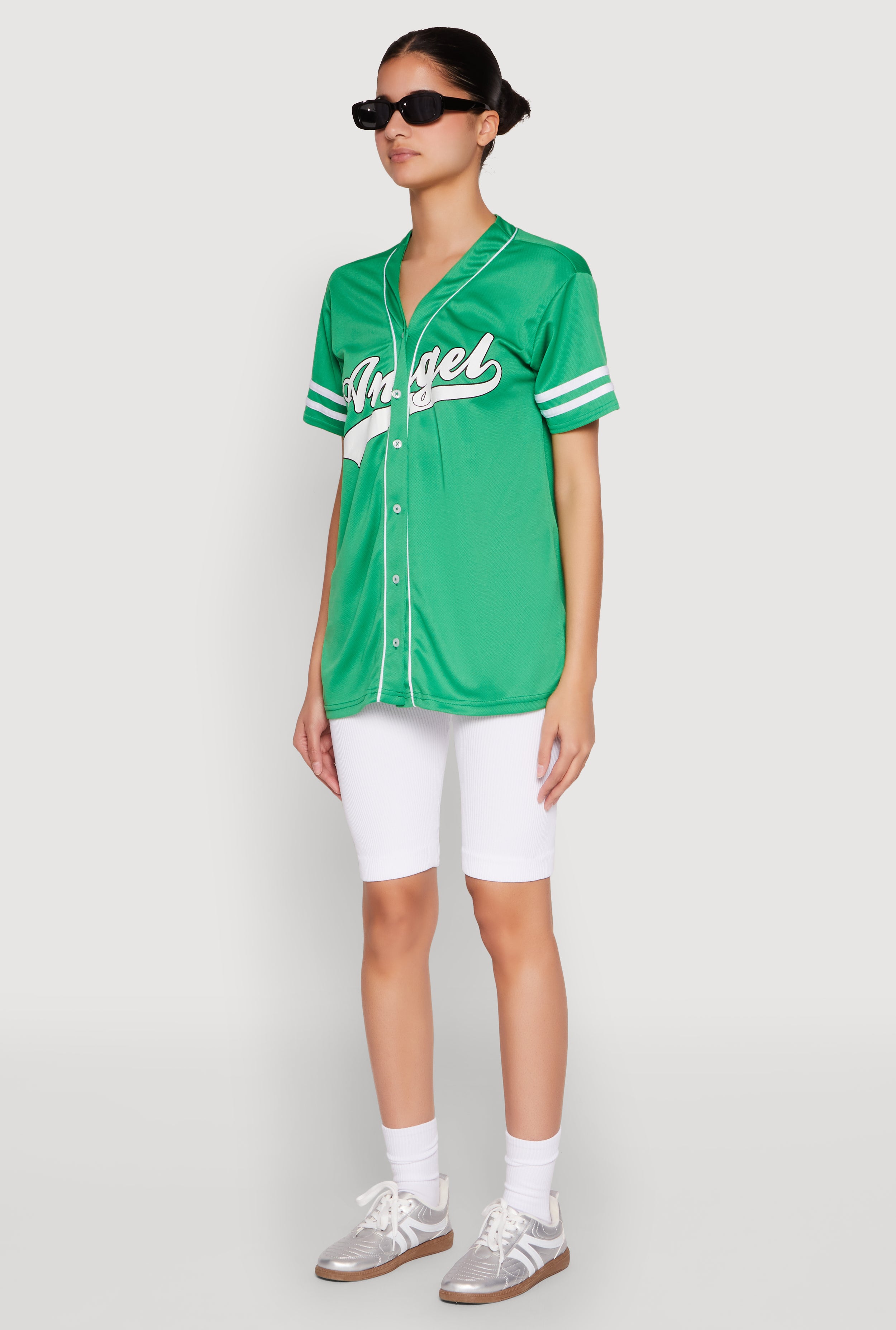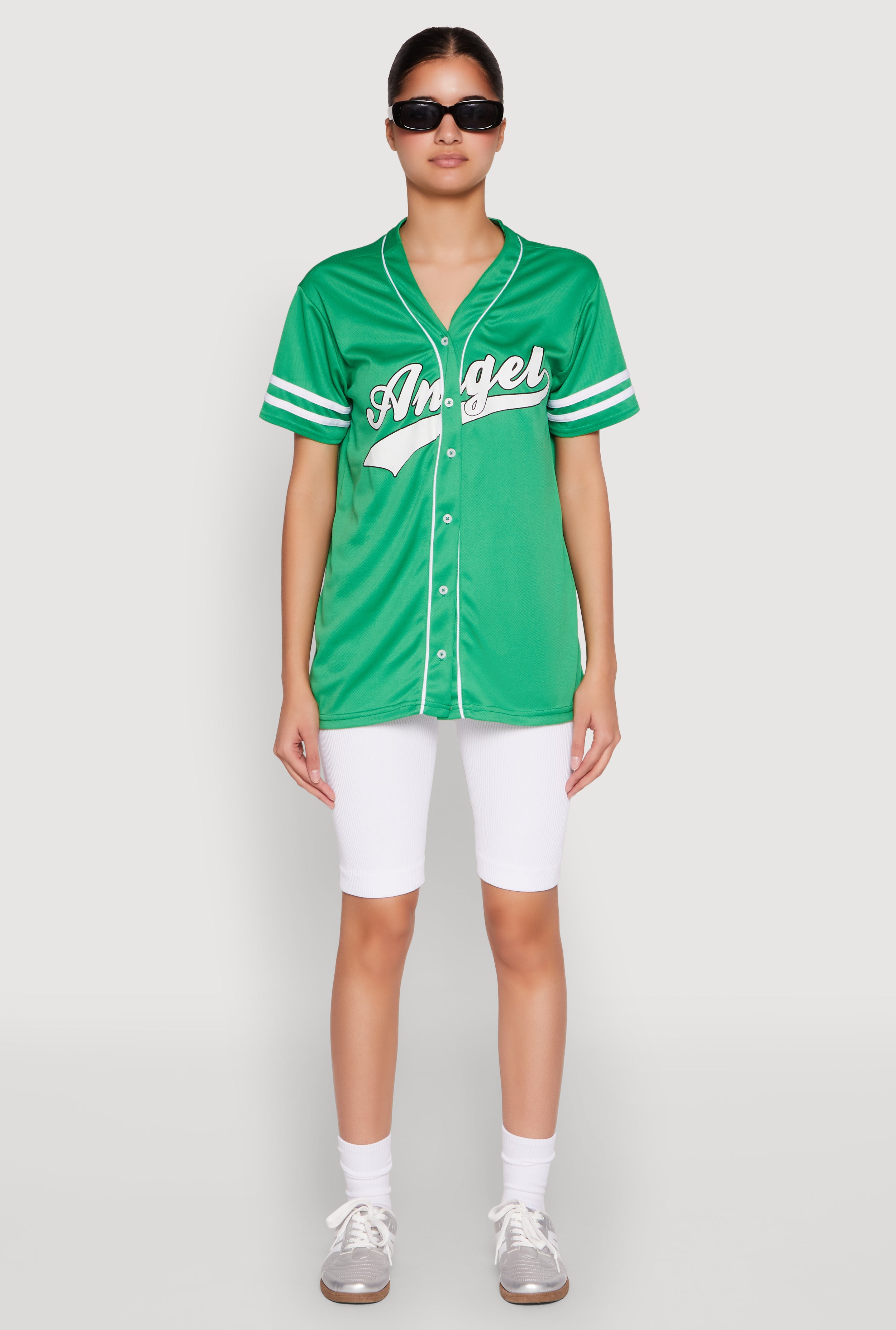 Show off your team spirit in style with our Angel Baseball Jersey. Designed with a classic fit and timeless silhouette, this T-shirt is perfect for everyday wear or game day. The contrast trim and varsity stripe detail add a sporty touch, while the lightweight jersey mesh fabric keeps you cool and comfortable. Whether you're cheering from the stands or hanging out with friends, this jersey is your new go-to for effortless, trendy looks.