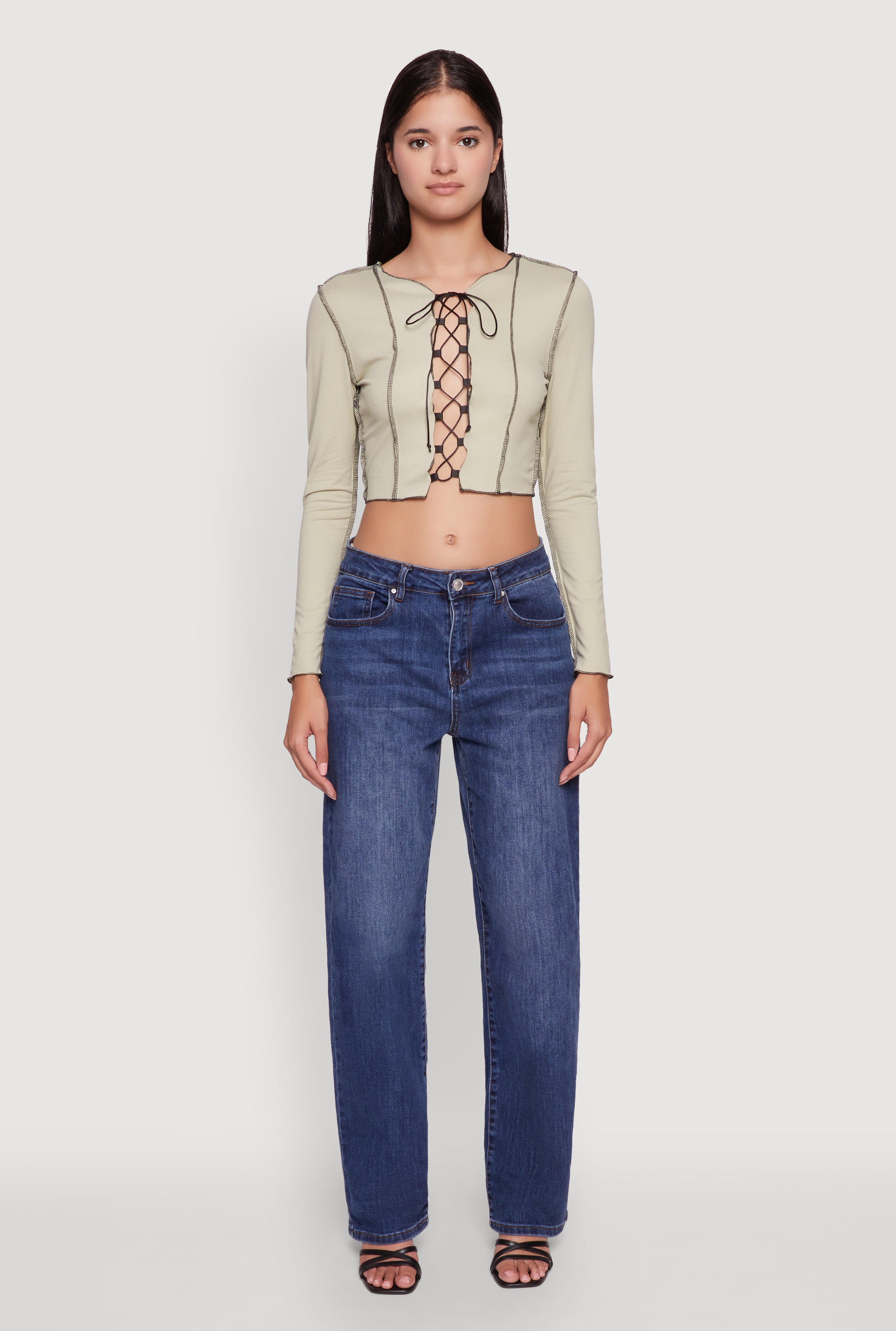 - Crop length perfect for pairing with high-waisted bottoms