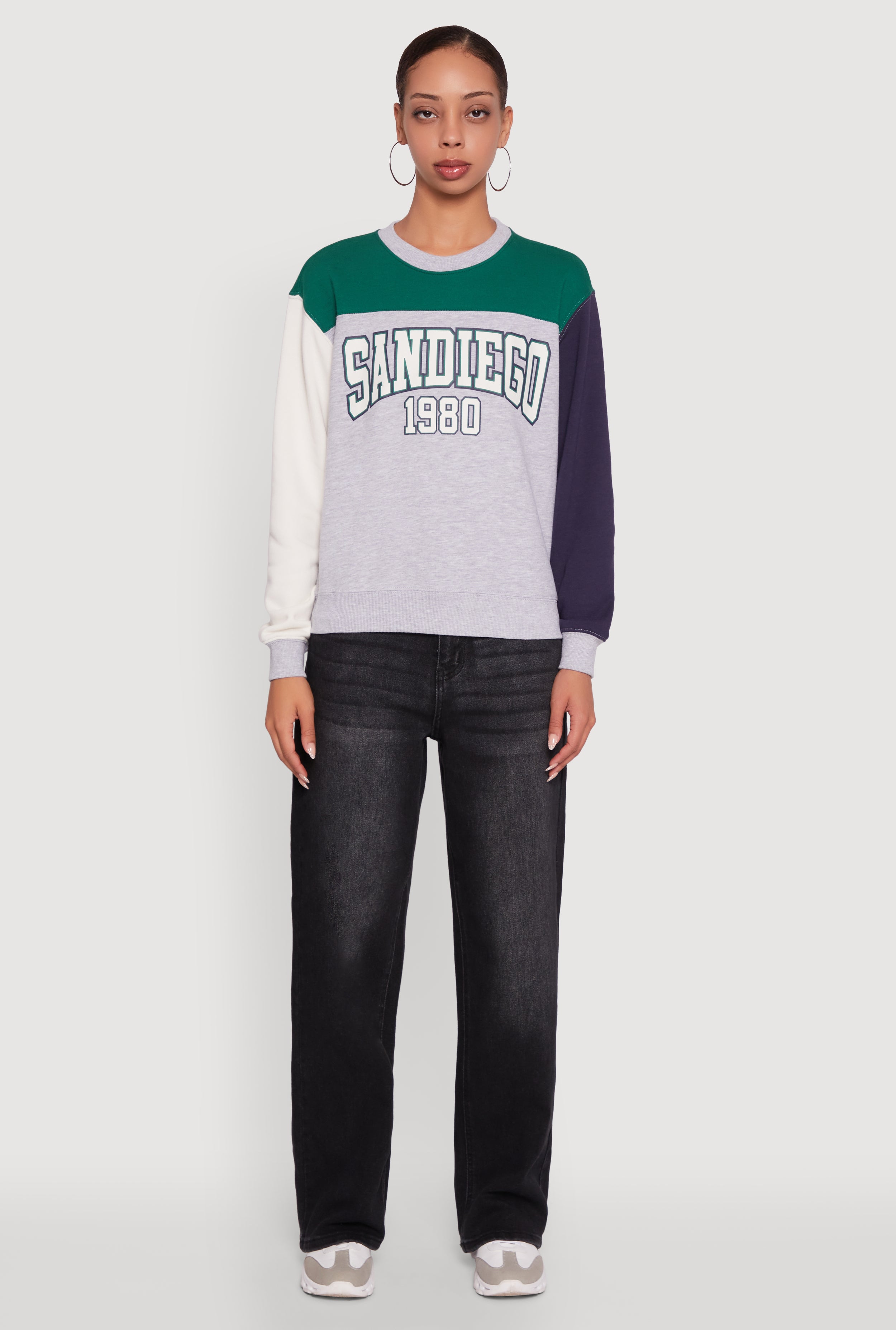 Madden Girl brings you the perfect mix of casual cool and cozy vibes with this Color Blocked Graphic Crew Neck Sweatshirt. Designed for those who love a timeless look with a fun twist, this pullover features a classic fit and eye-catching color blocking paired with a bold city graphic. Whether you’re hitting the books or hanging out with friends, this French Terry sweatshirt keeps you comfy and stylish all day long.