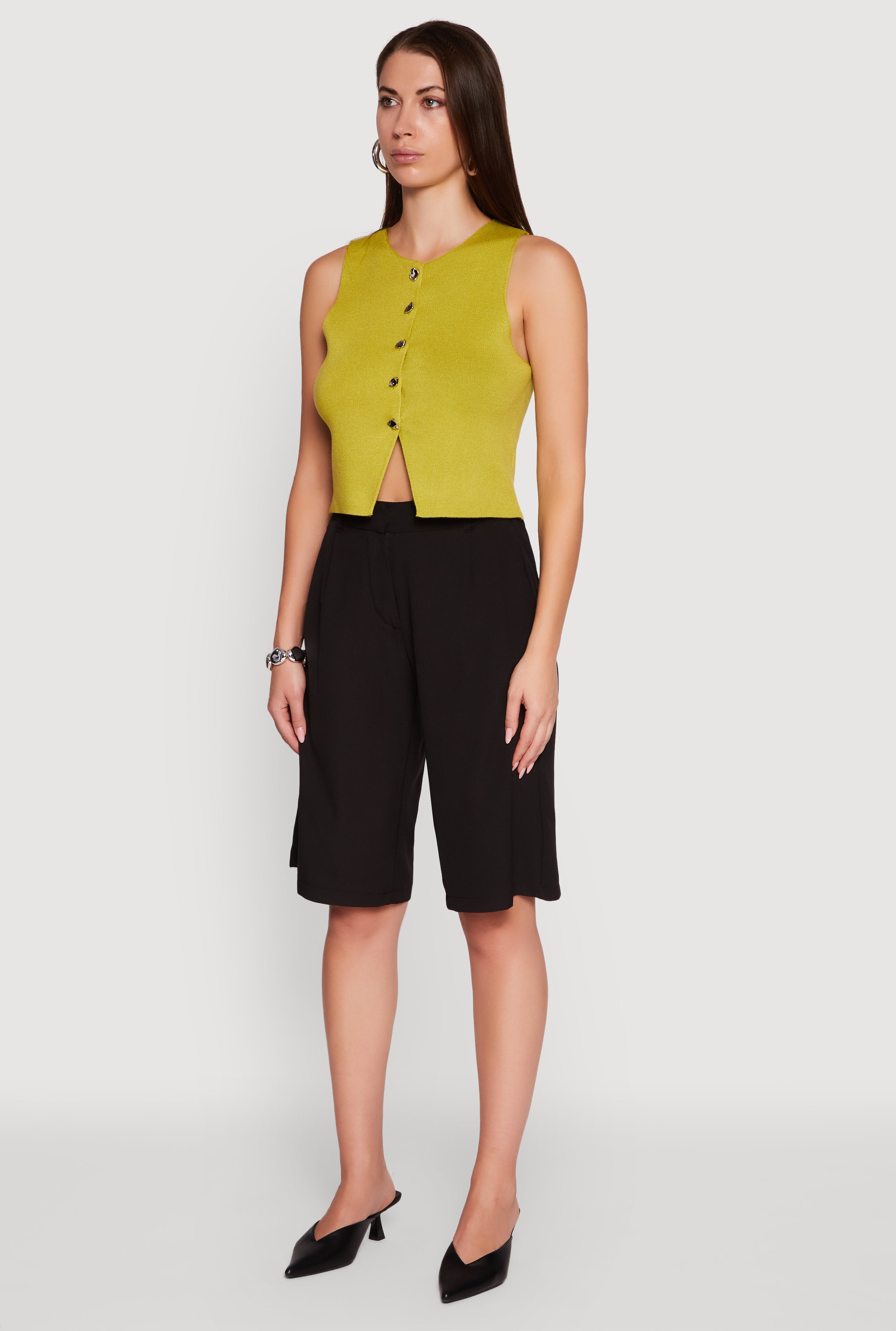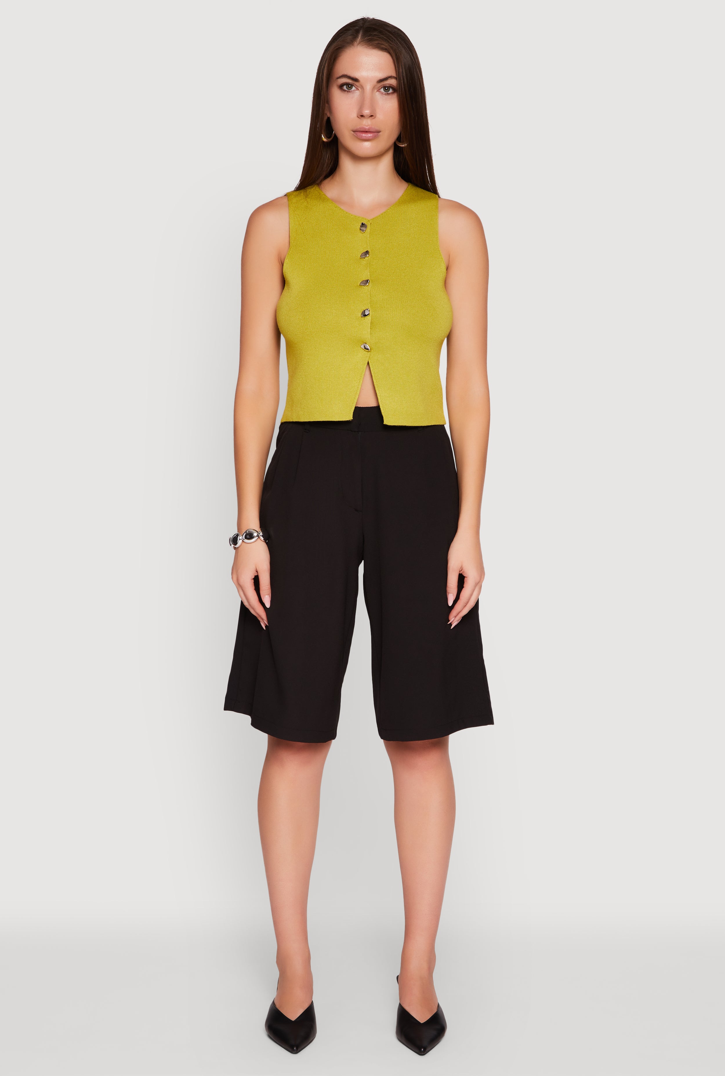 Shine bright and stay cozy with this Metallic Button Front Sleeveless Sweater Vest. Designed with a classic fit and a flattering V-neck, it’s the perfect layering piece to elevate your casual look. The brushed knit fabric adds a soft touch while the metallic finish gives you that subtle sparkle to stand out effortlessly. Button it up or leave it open for versatile vibes that match your mood and style.
