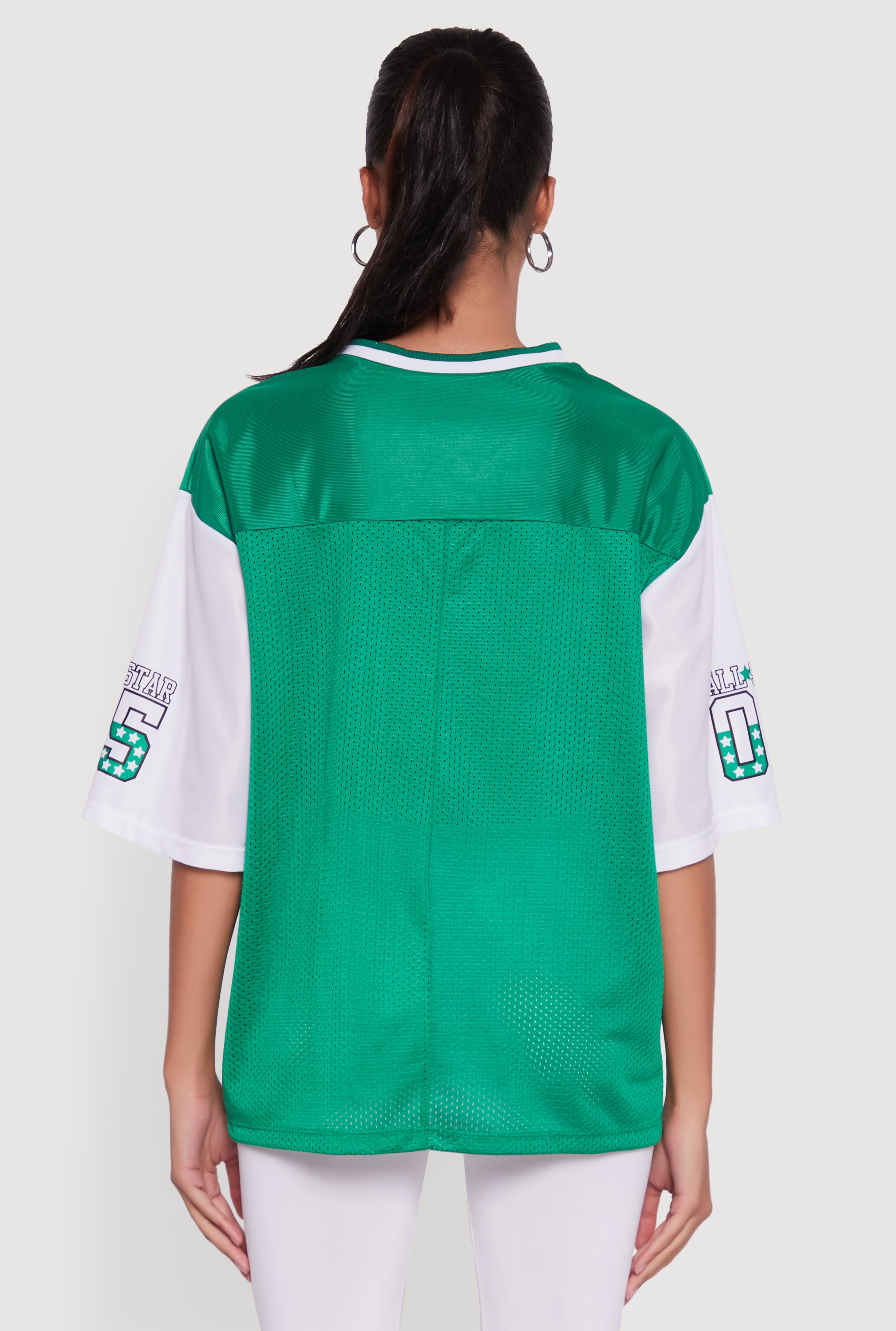 Score major style points with the V-Neck All Star 05 Graphic Football Jersey. This classic fit tee blends sporty vibes and casual comfort, making it your new go-to for everything from weekend hangouts to chill days at home. The bold "All Star 05 S.P.O.R.T Premium Club Since 1990" graphic adds a sporty edge, while the breathable jersey mesh fabric keeps you cool and comfy. Ready to level up your casual wardrobe? This jersey’s got your back.