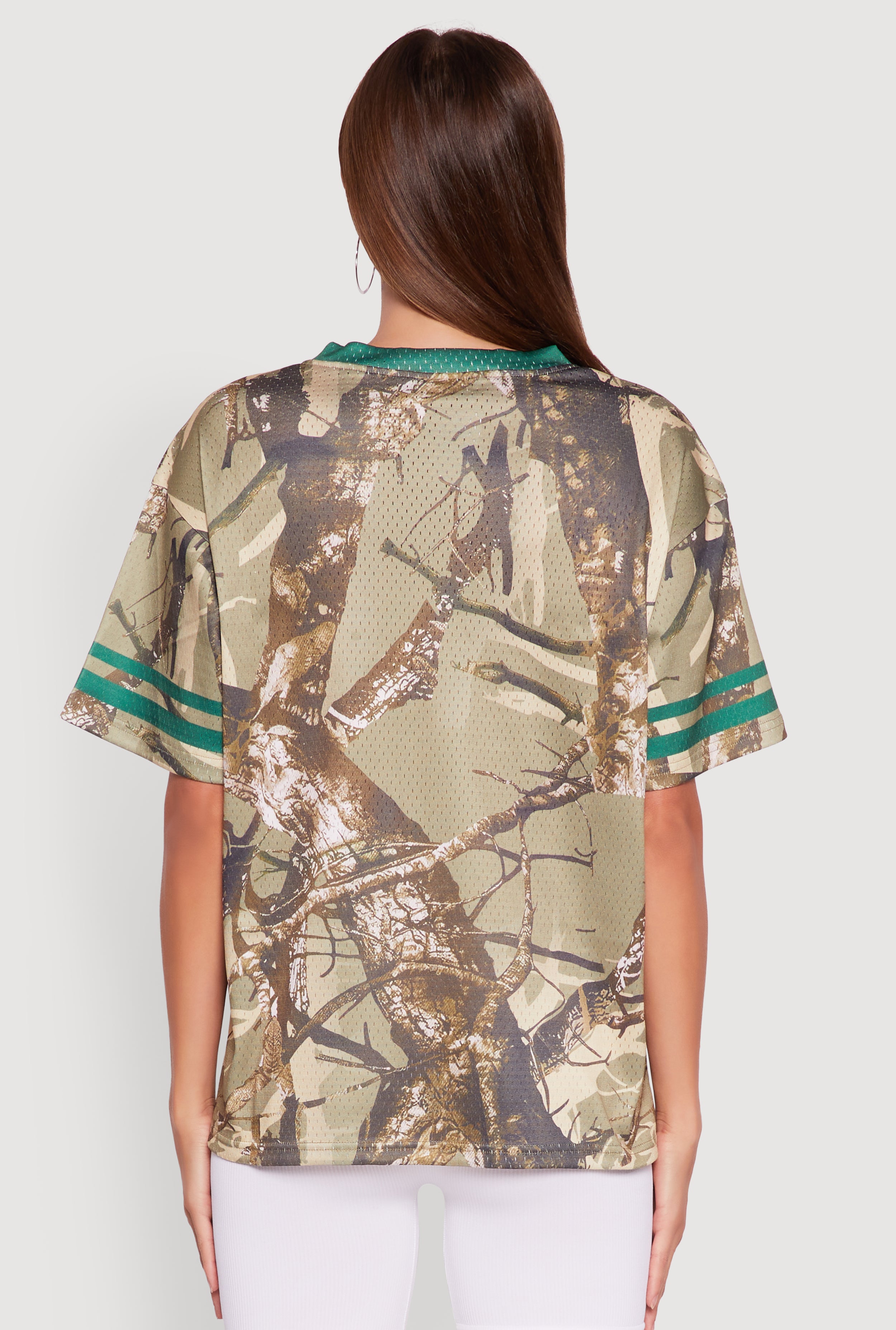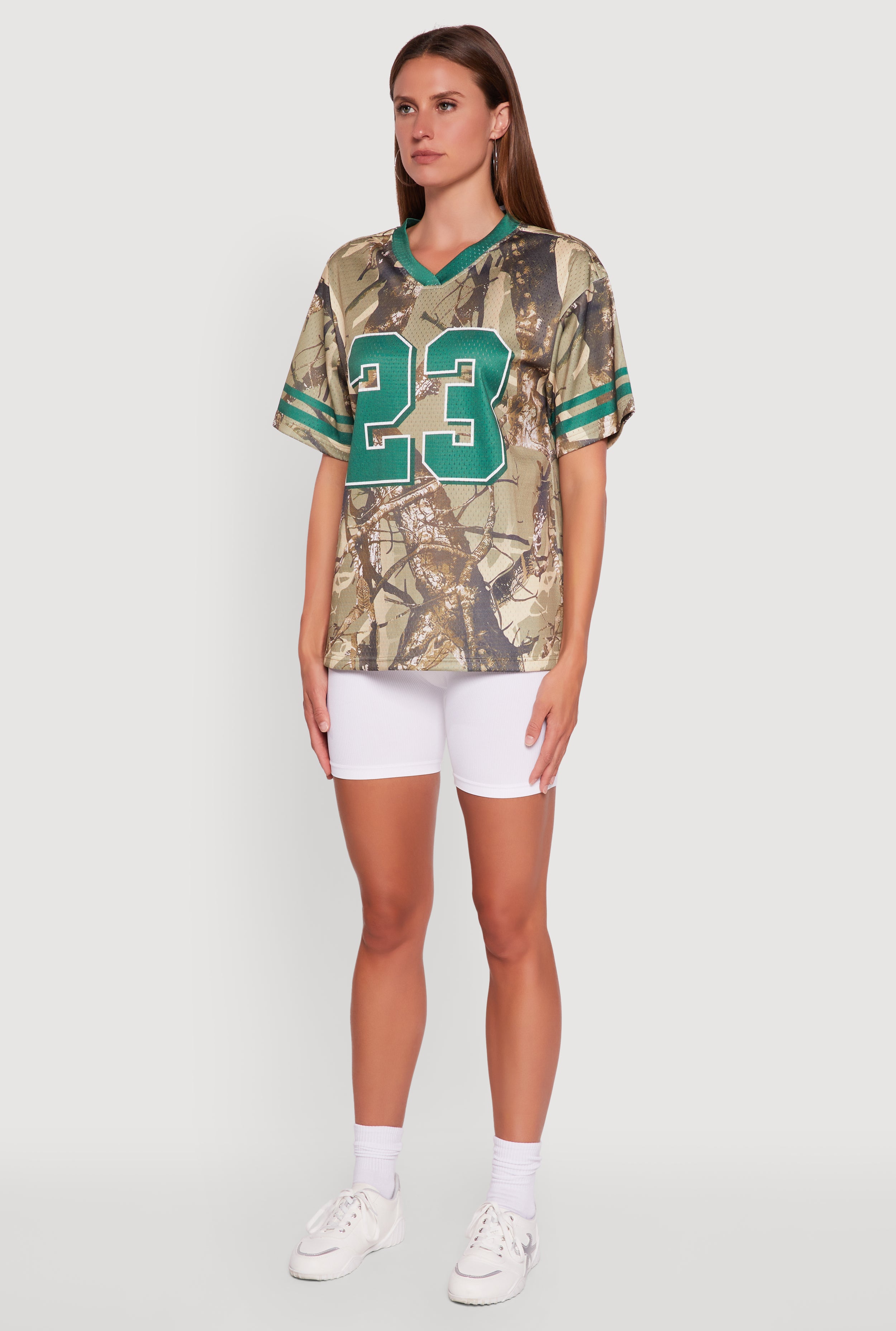Step up your casual game with the V-Neck Hunter Camo 23 Graphic Jersey. This classic-fit tee blends sporty vibes with a cool hunter camo print and a standout "23" graphic that adds just the right amount of edge. Perfect for those laid-back days when you want to look effortlessly stylish without trying too hard. The V-neck cut and short sleeves keep it breezy and easy to wear all day long.