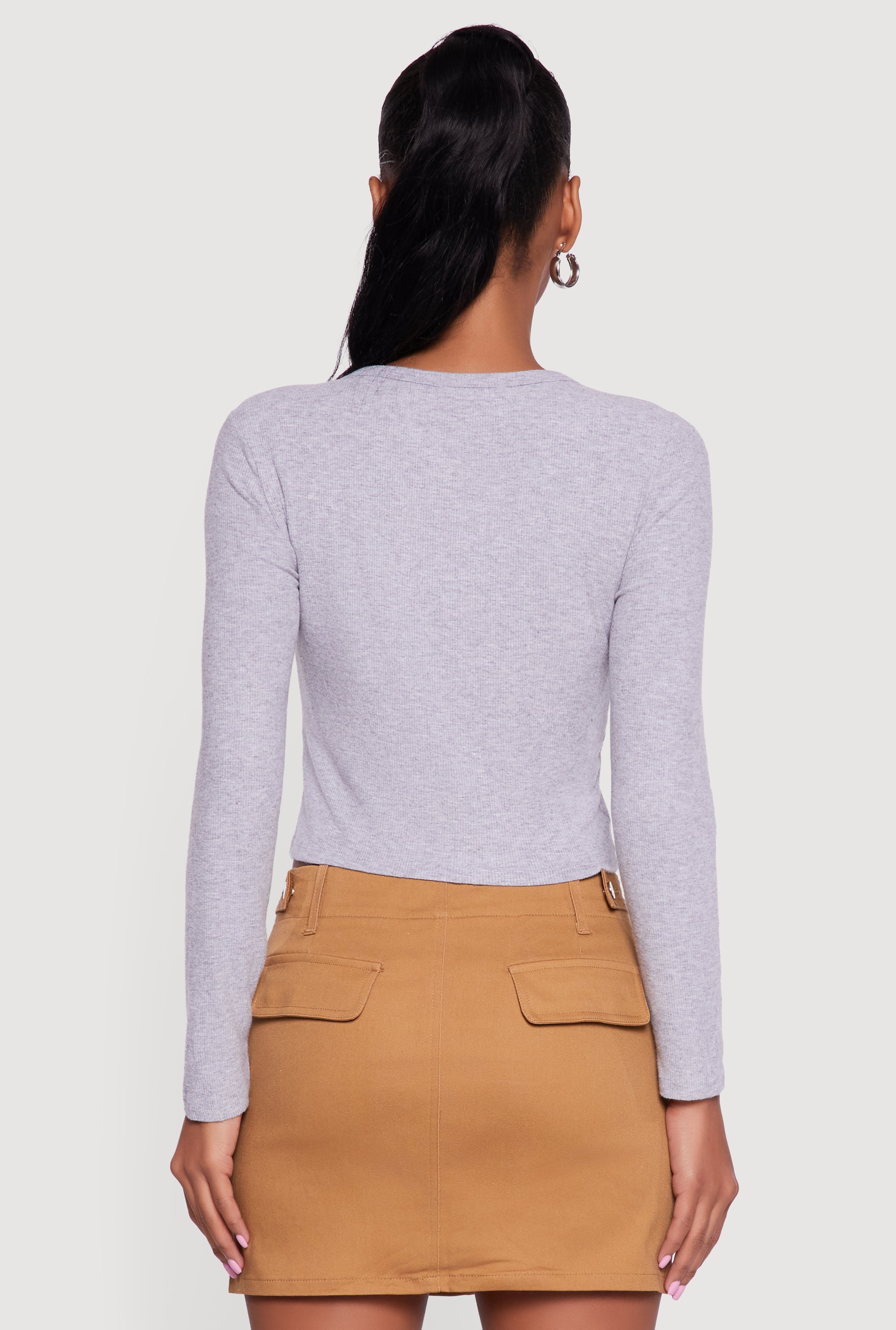 Ribbed Knit Button Front Long Sleeve Crop Top