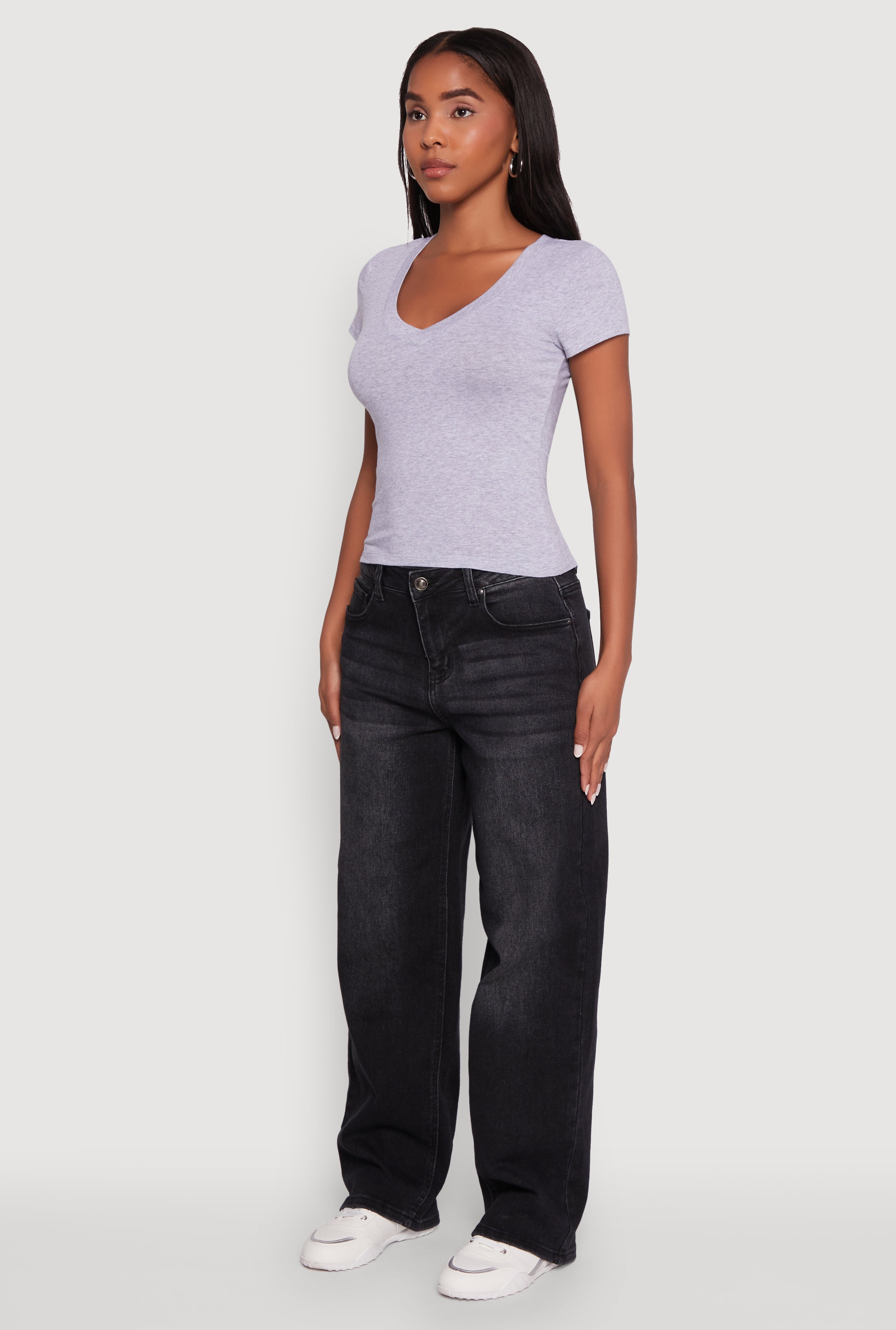 Upgrade your wardrobe with the Ambiance V Neck Short Sleeve Basic Tee, the perfect blend of comfort and style. Whether you're running errands or hanging out with friends, this timeless tee is your go-to for effortless cool. Its classic fit and flattering V neckline make it a versatile staple that pairs easily with anything. Feel confident and comfy all day long in this must-have top that keeps your look fresh and laid-back.