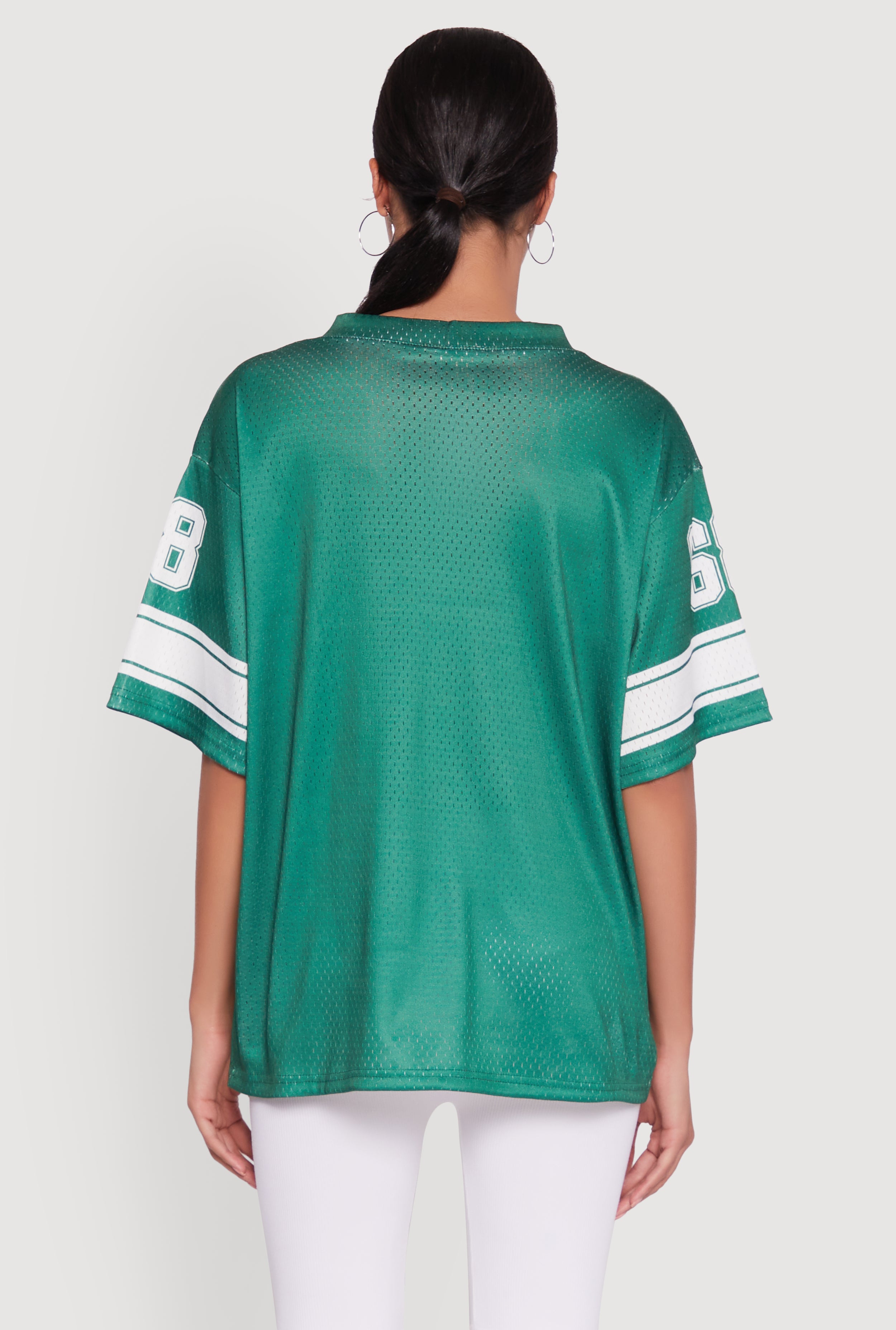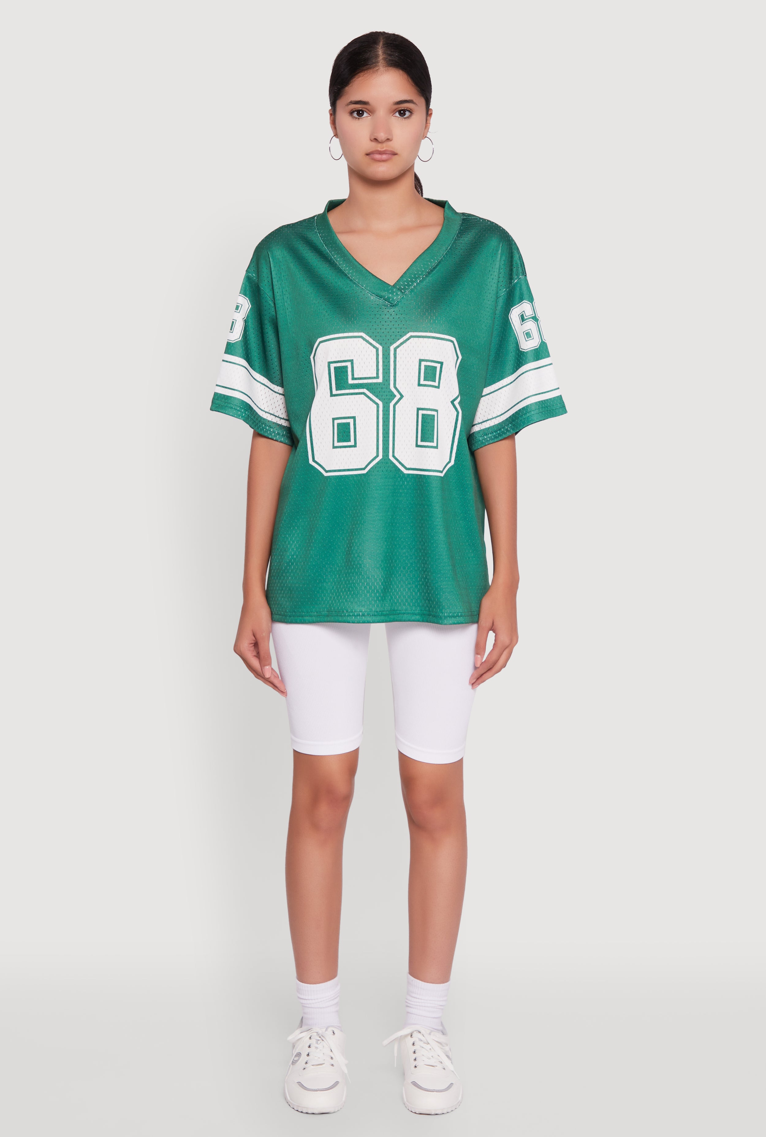 Step up your casual game with the 68 Graphic V-Neck Football Jersey. This relaxed fit, short sleeve tee brings sporty vibes and effortless style together with its cool graphic print and breathable jersey mesh fabric. Whether you’re hitting the streets or lounging with friends, this jersey keeps it comfy and fresh all day long.