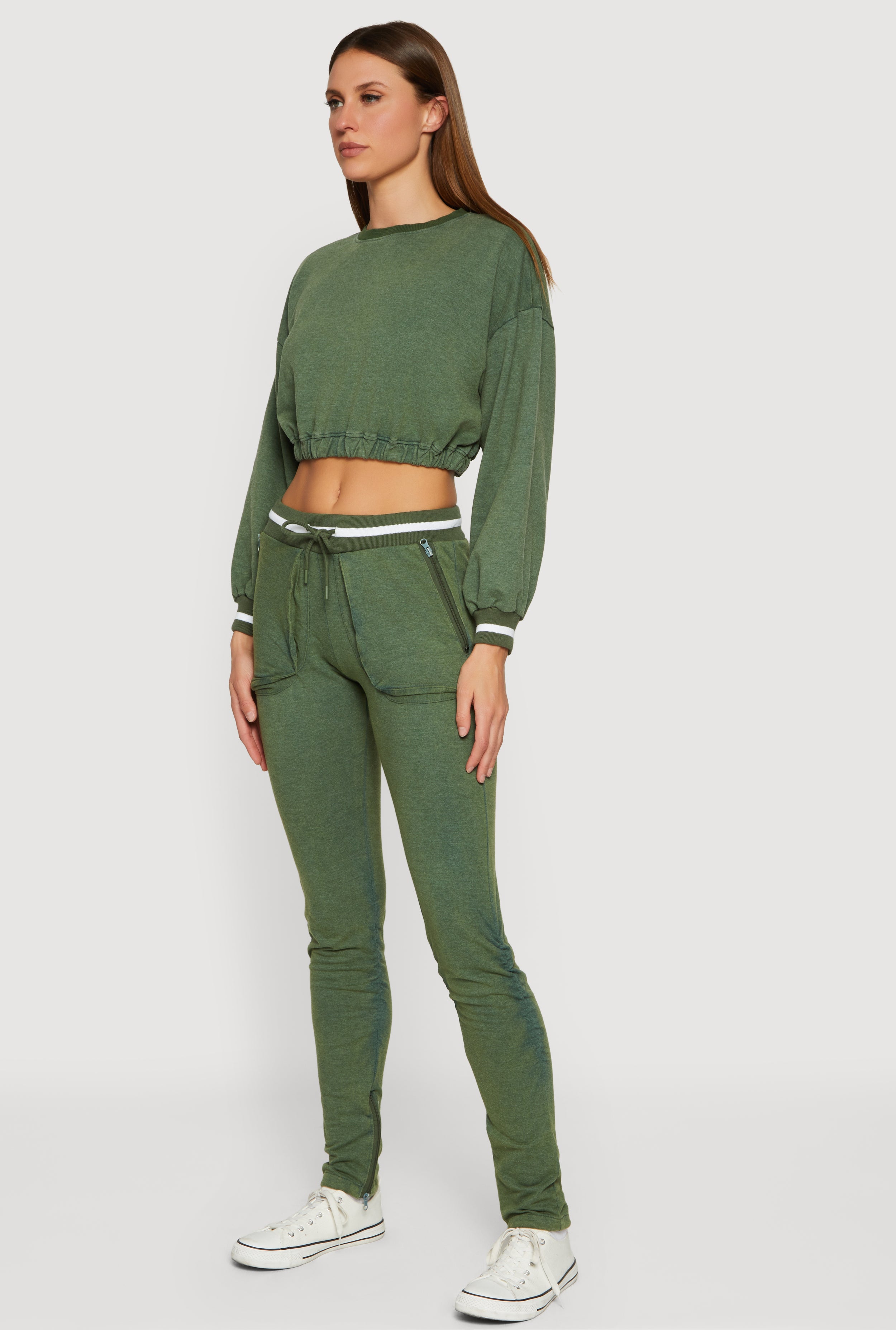 This classic-fit cropped top features a crew neckline and balloon sleeves, creating a balanced silhouette. The elastic hem adds subtle shape and movement, while the French terry fabric offers a soft, cozy feel perfect for casual and athleisure looks.