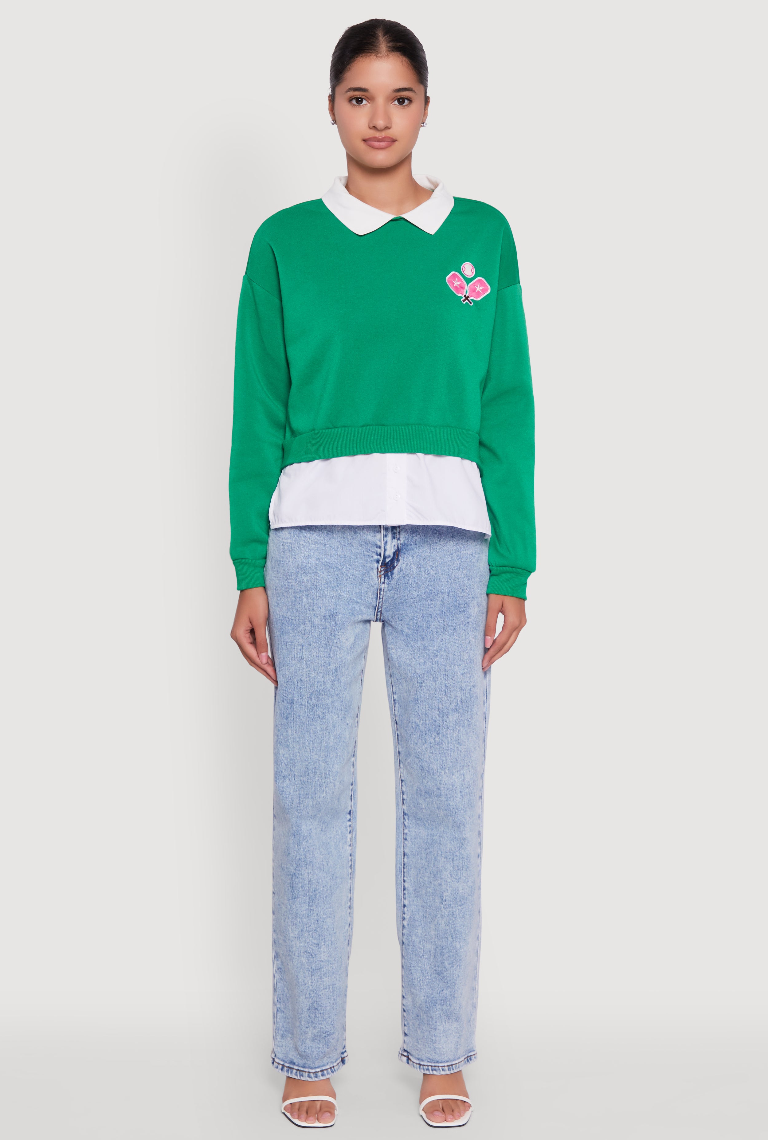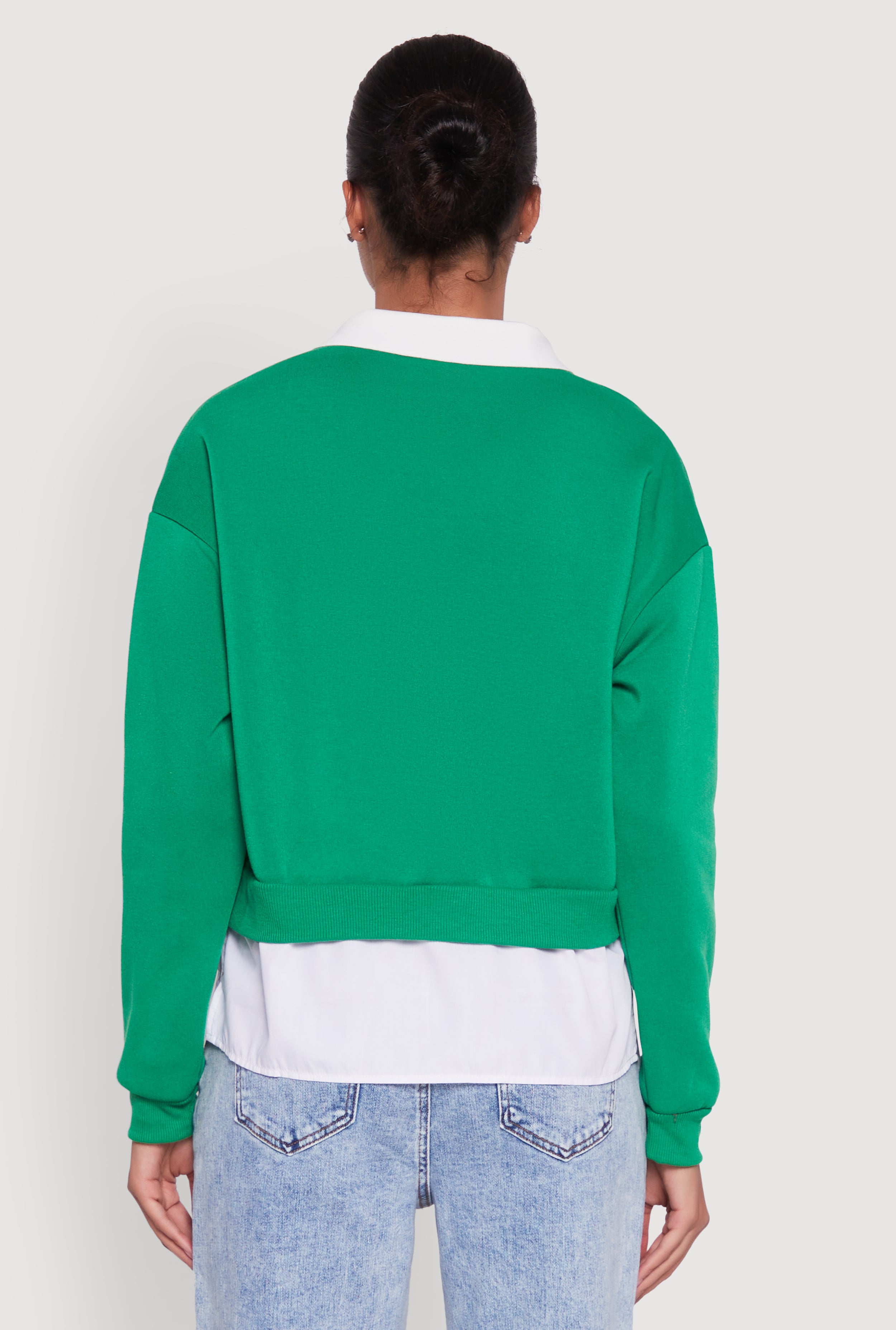 Upgrade your casual look with this Shirt Collar Layered Look Patch Graphic Sweatshirt. It blends the cozy warmth of fleece with a trendy layered collar style that looks effortlessly cool. The classic fit ensures a timeless silhouette that feels as good as it looks. Perfect for chill days when you want to stay comfy but still stand out with unique patch details and a bold color-blocked graphic print. Trust us, this sweatshirt is about to become your new go-to for laid-back vibes and instant style points.