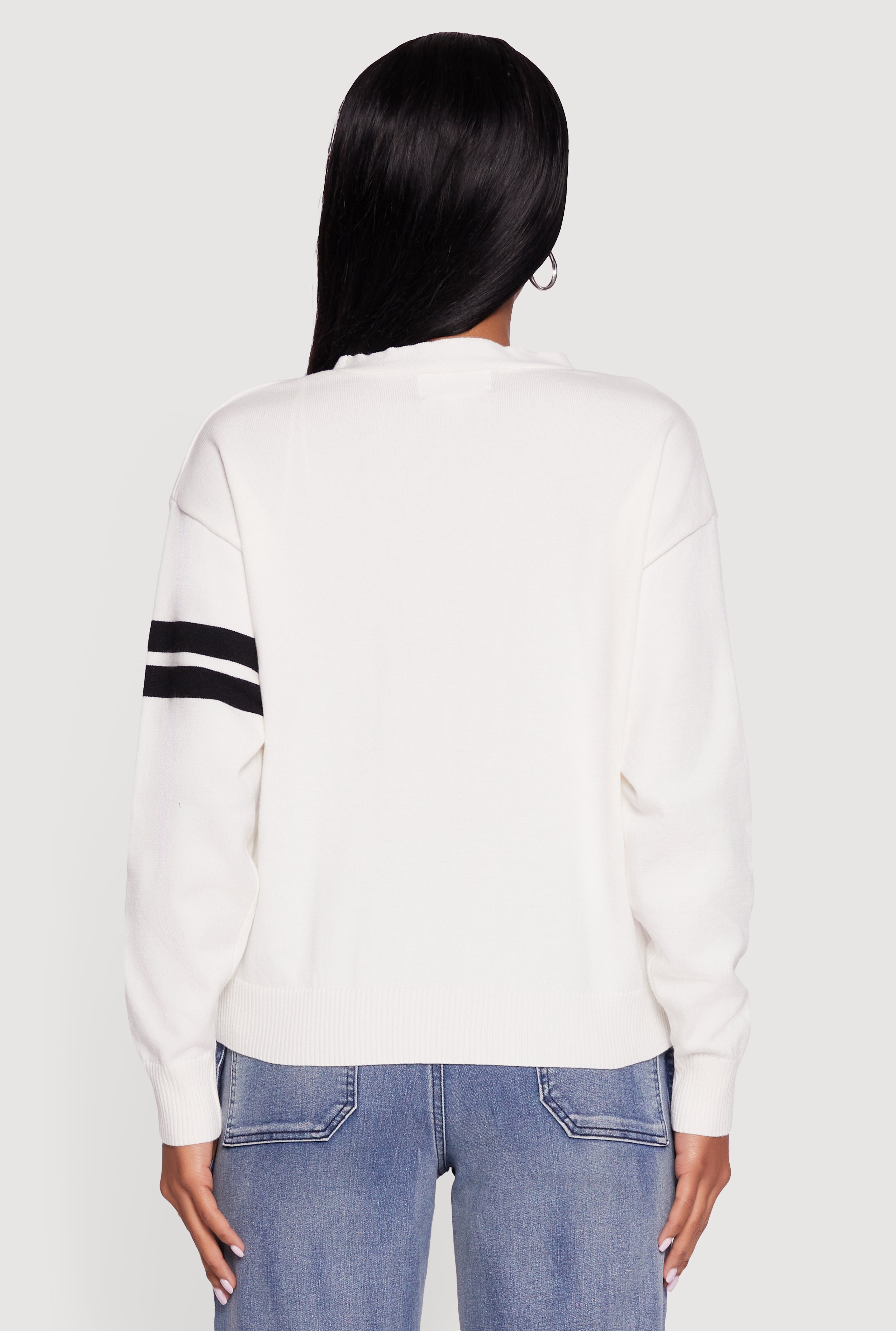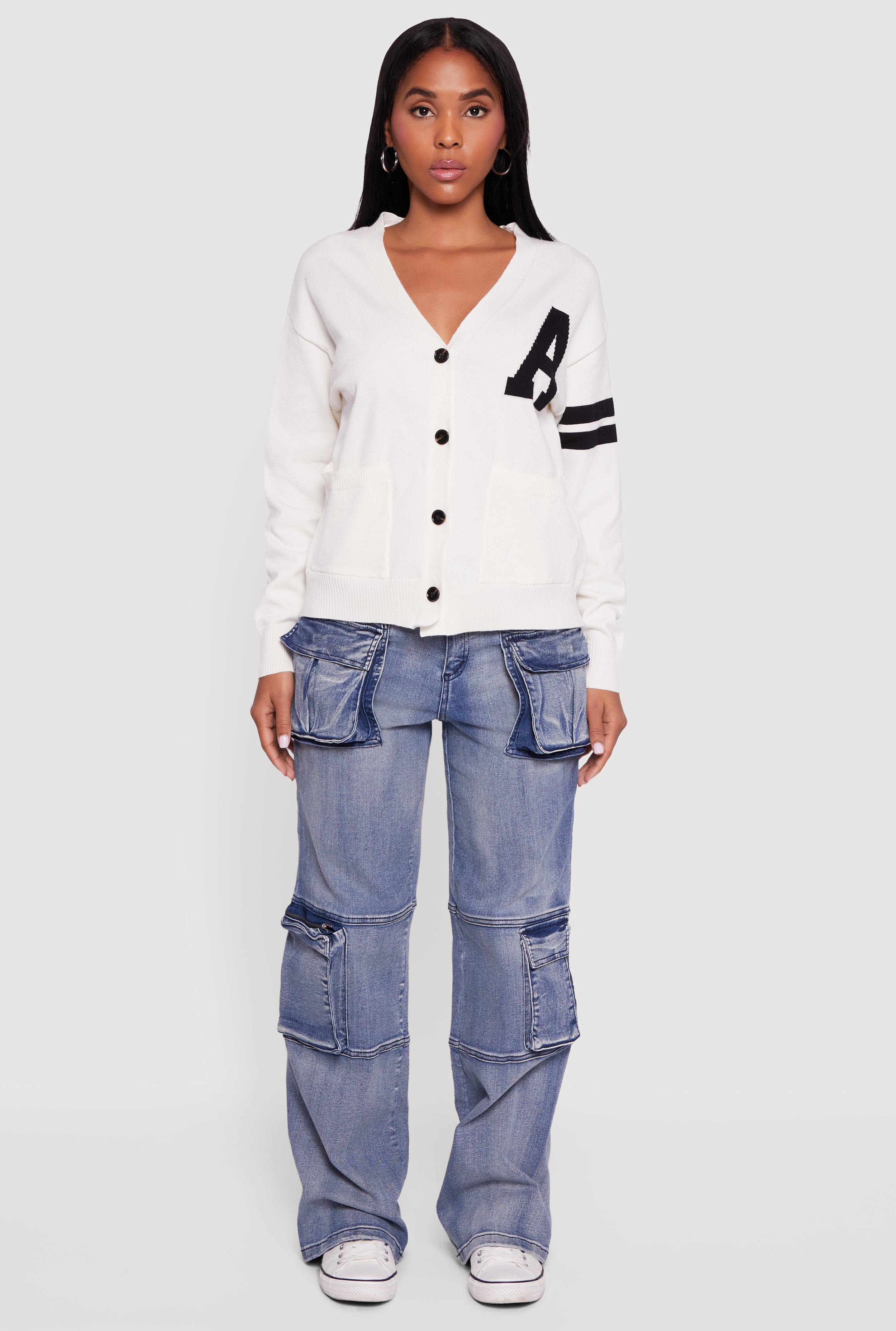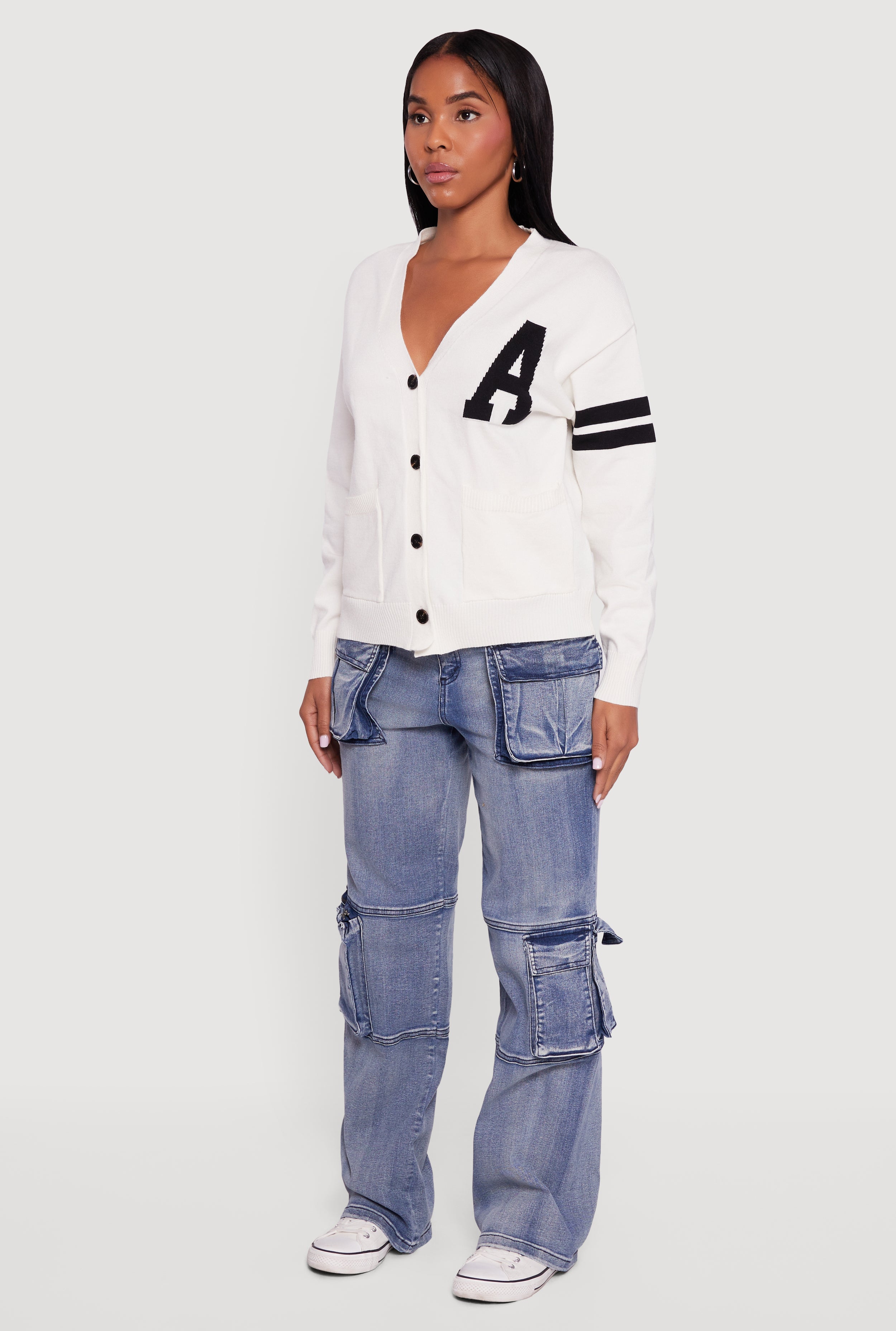 Step up your style game with the A Initial Button Front Varsity Cardigan. This classic-fit cardigan brings a fresh twist to your everyday look with its iconic varsity stripe detail and bold "A" initial graphic. Featuring a flattering V-neck and easy button front, it’s perfect for layering over your favorite tees or officewear blouses. Whether you’re heading back to school or just want a casual-chic vibe, this cardigan keeps you comfy and stylish all day long.