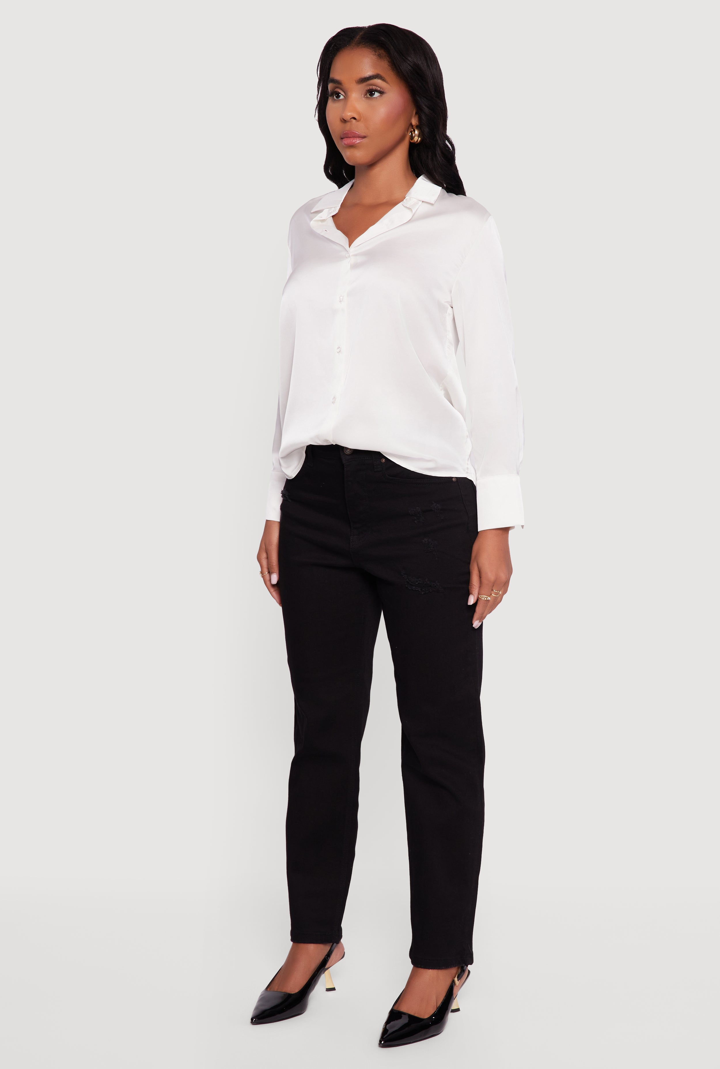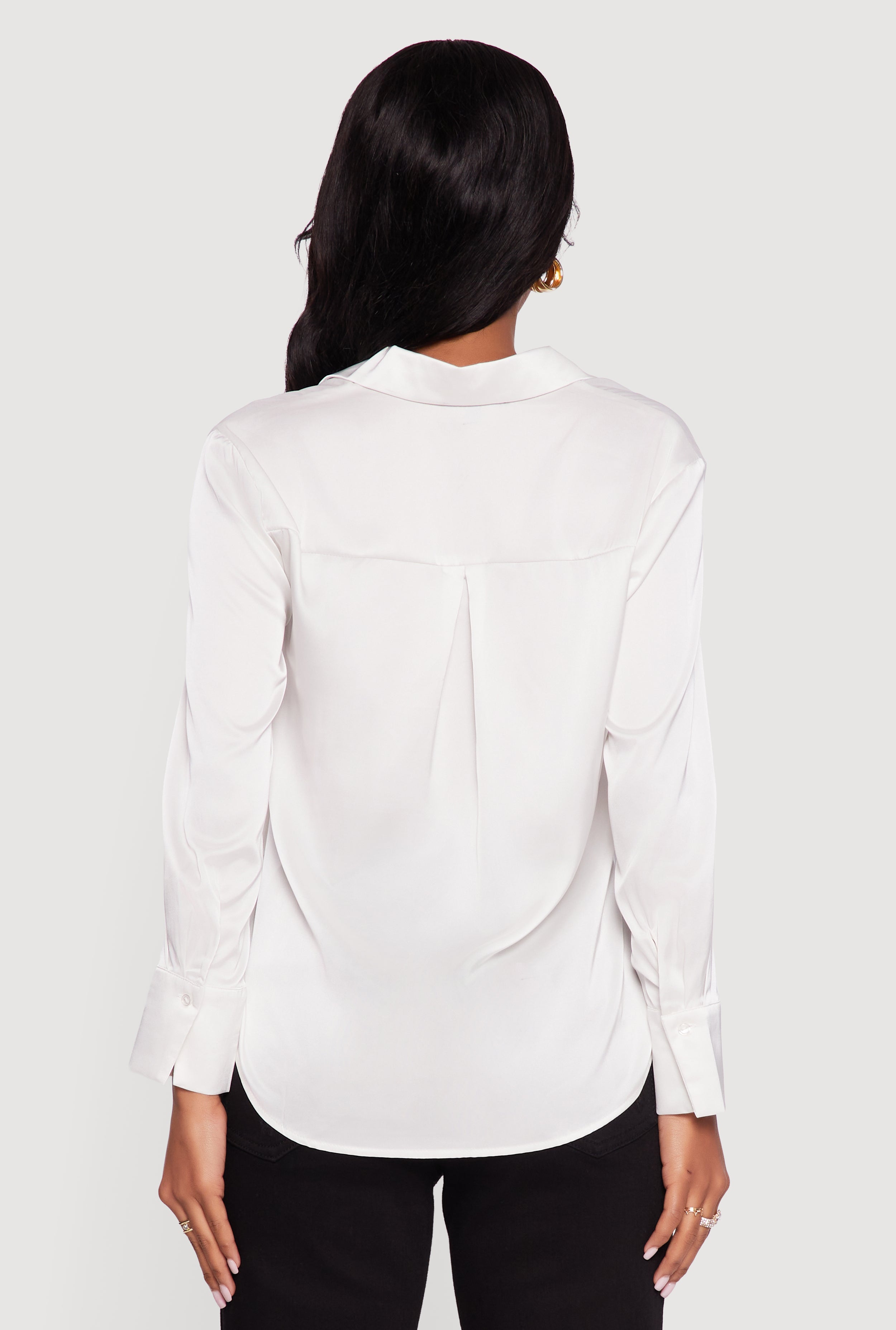 Slip into effortless elegance with the Satin Long Sleeve Button Front Shirt by Ambiance. This classic fit beauty features a smooth satin finish that catches the light just right, making it your go-to for nights out or parties. The timeless shirt collar and button front add a polished touch, while the rounded hem keeps things modern and flattering. Dress it up or down and watch heads turn wherever you go.