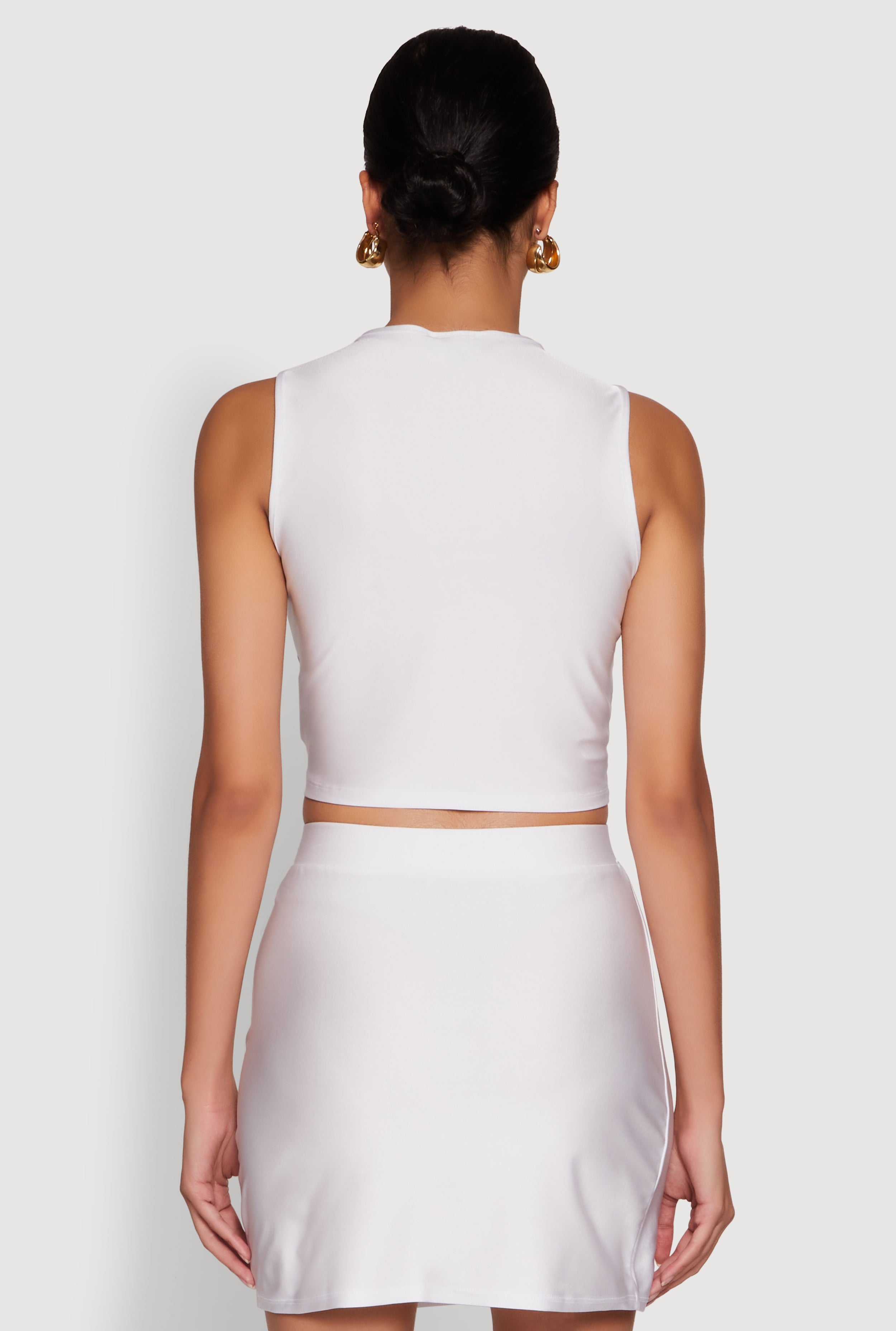 • Trendy Rose Applique Sleeveless V-Neck Ruched Crop Top