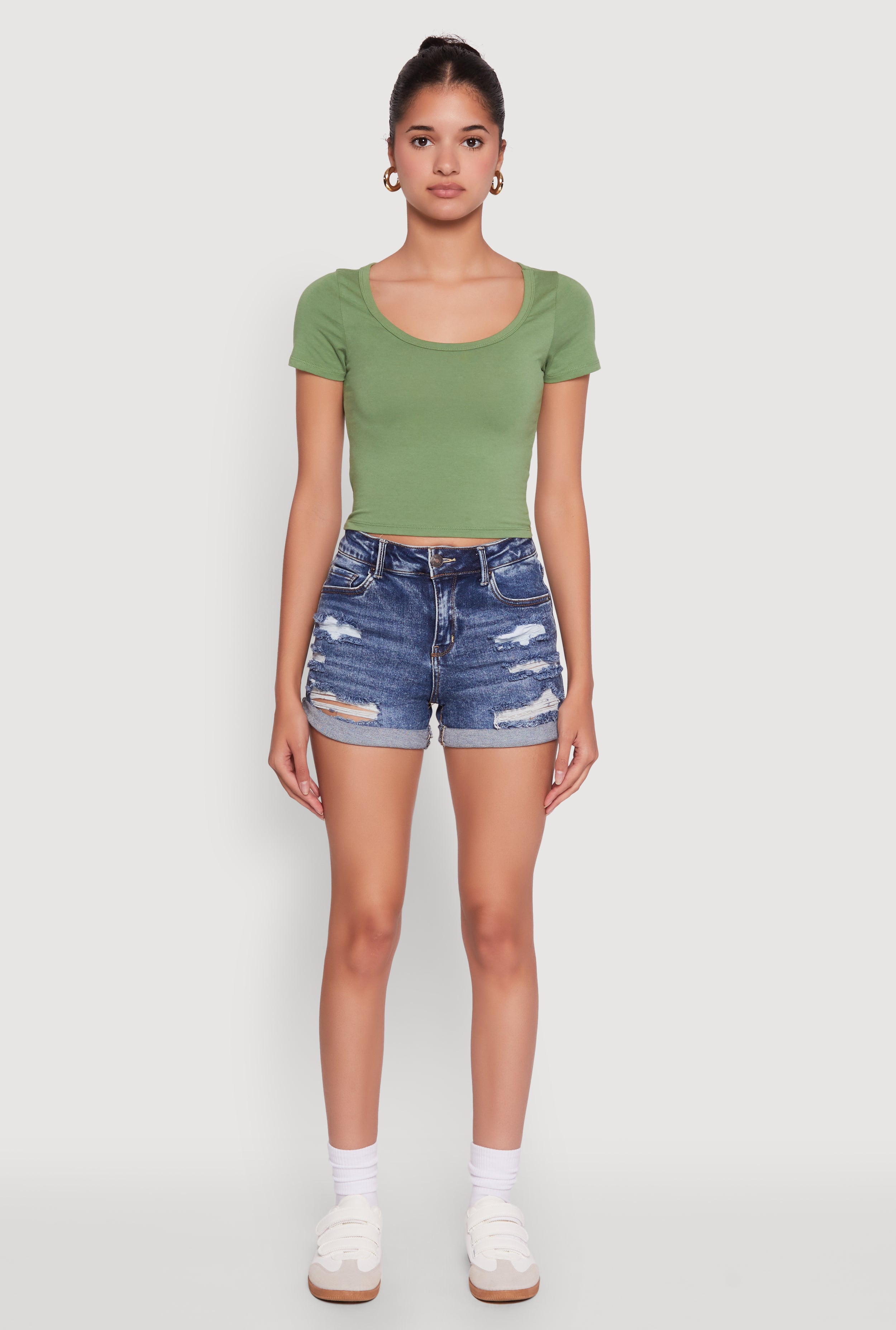 - Cropped hem for a trendy, modern vibe