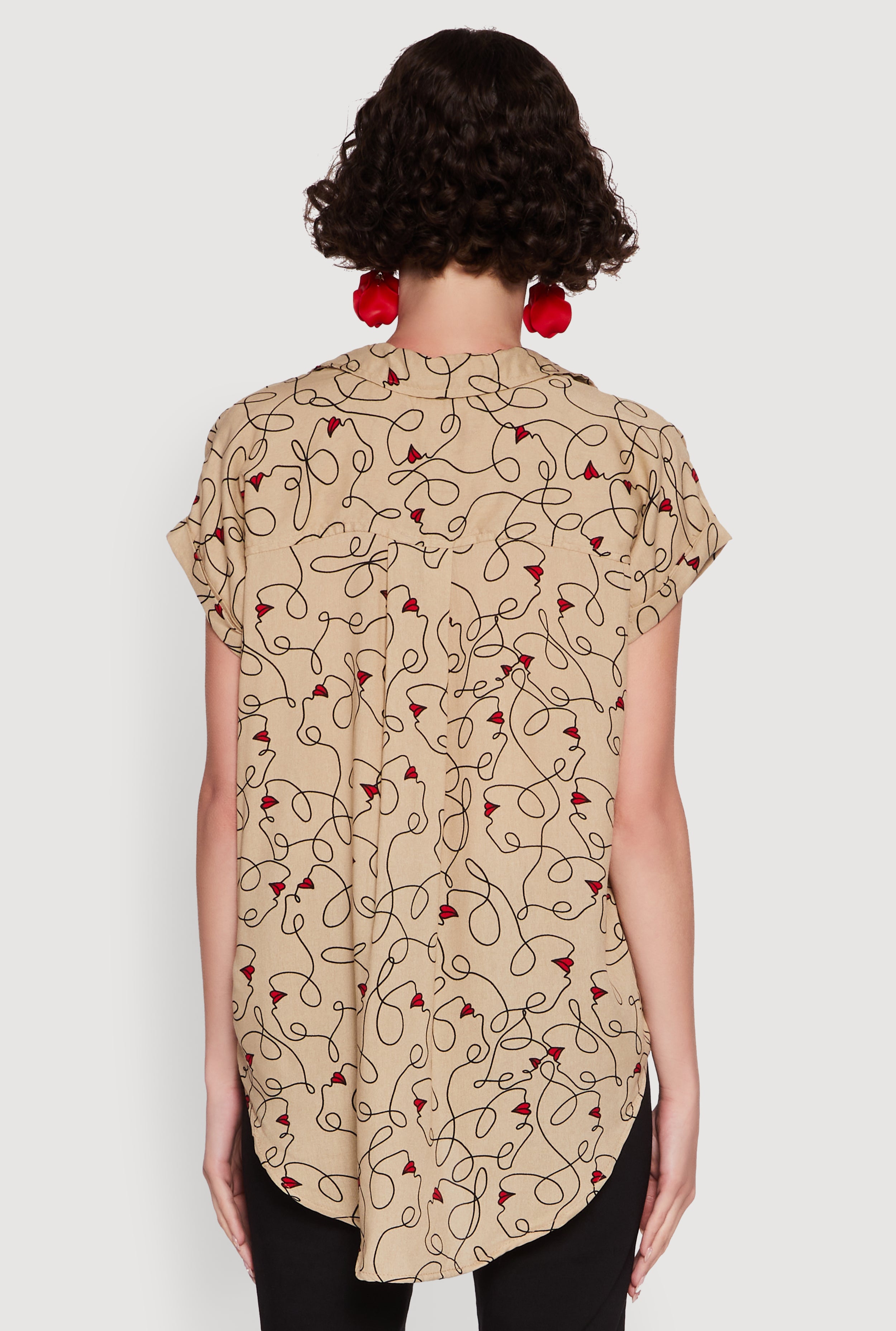 Step up your casual wardrobe with the Trendy Classic Fit Abstract Face Print Shirt. This timeless silhouette shirt collar design brings a fresh twist to your everyday look with its eye-catching abstract face print. Perfect for those who love to keep it effortlessly cool while standing out in the crowd. Whether you're out with friends or just chilling, this high-low hem shirt is your new go-to for laid-back style that never goes out of fashion.