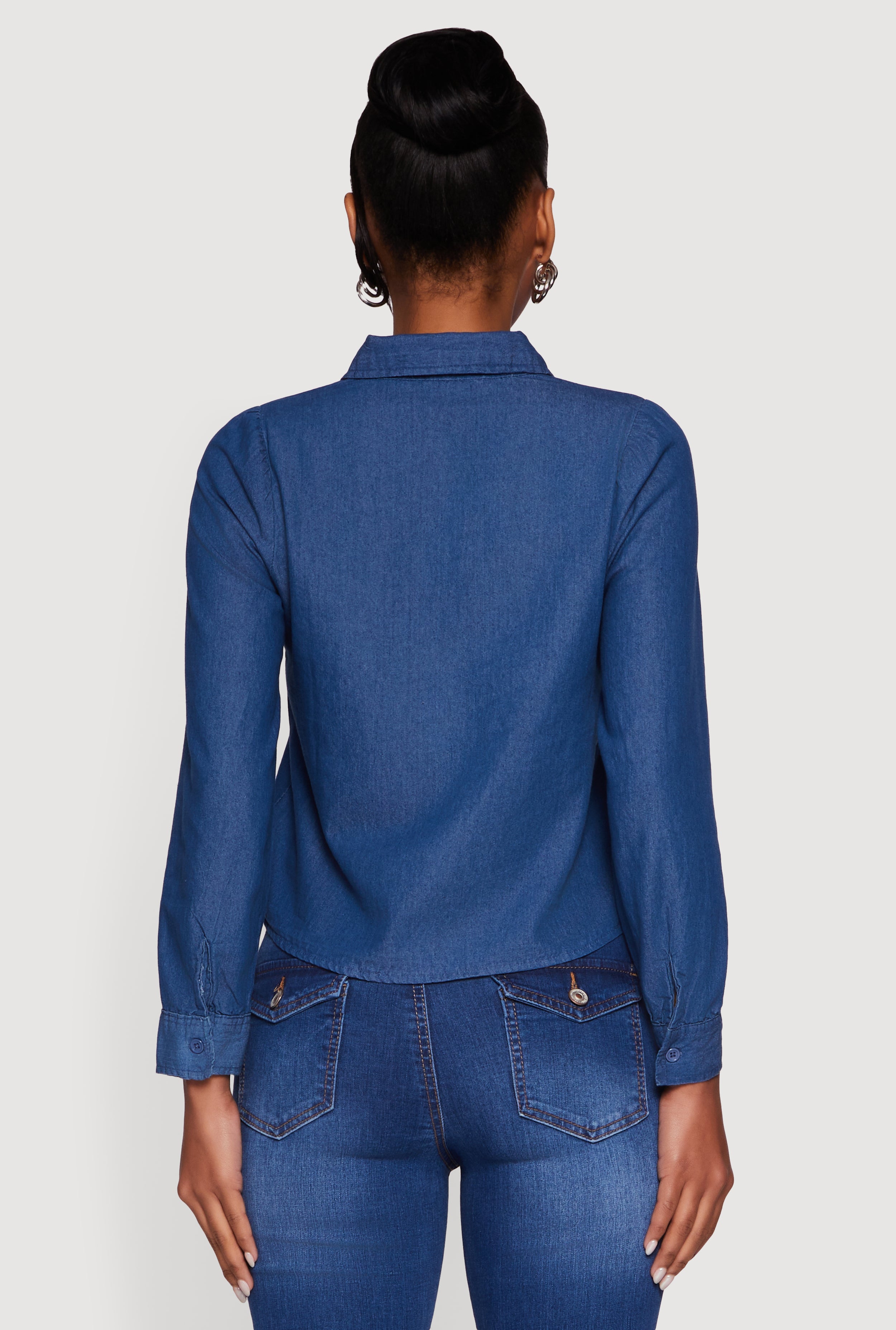 Denim Patch Pocket Long Sleeve Button Front Shirt