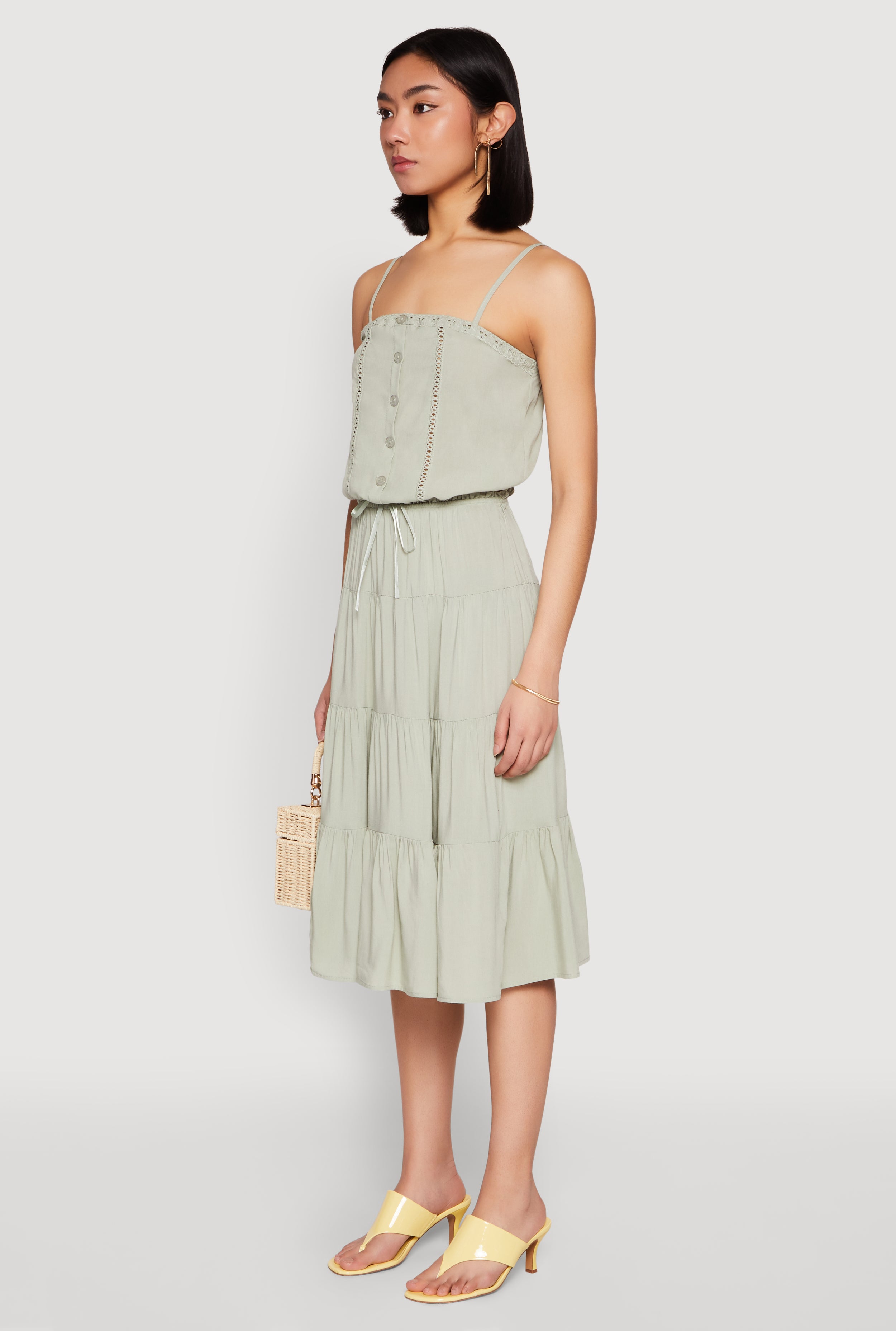 Get ready to turn heads with the Almost Famous Faux Button Cropped Cami. This chic top combines effortless style with a playful twist thanks to its eyelet detail and faux buttons. Perfect for mixing and matching with your favorite sets, it offers a classic fit with a timeless square neckline and a trendy cropped hem with a drawstring for a customizable fit. Whether you’re heading out or just lounging in style, this cami is your new go-to for a look that’s both cute and cool.