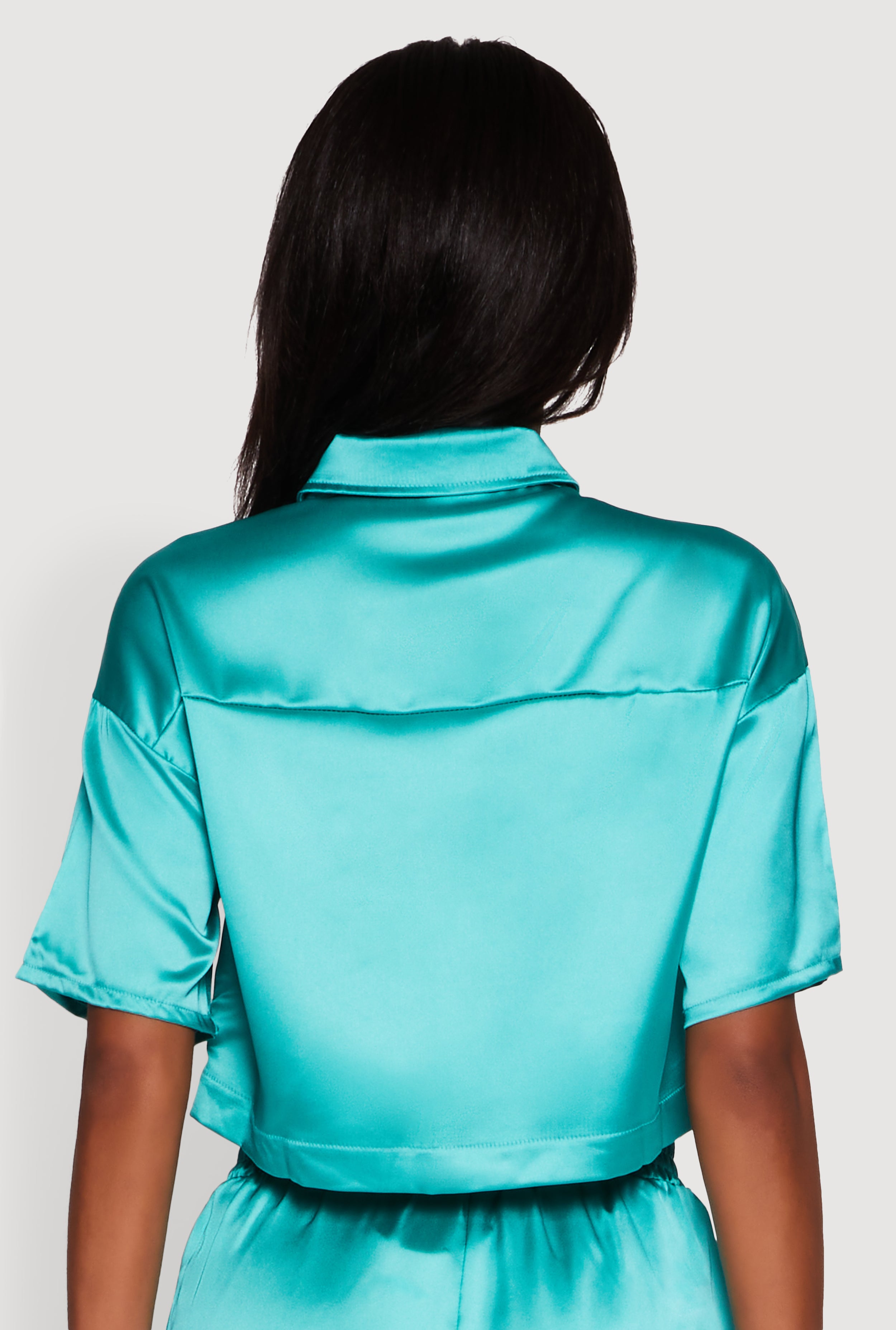• Elegant Cropped Satin Button Front Shirt
