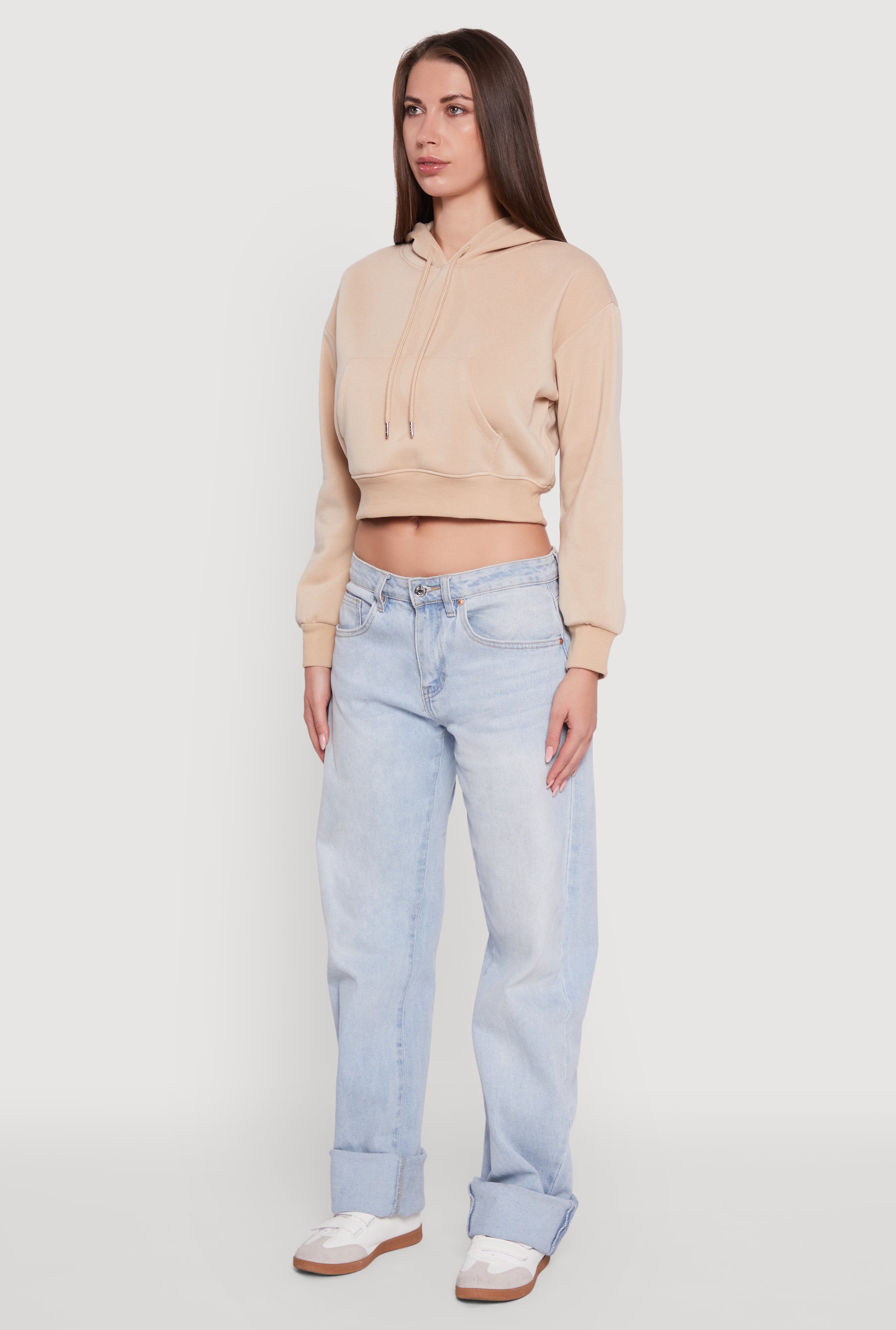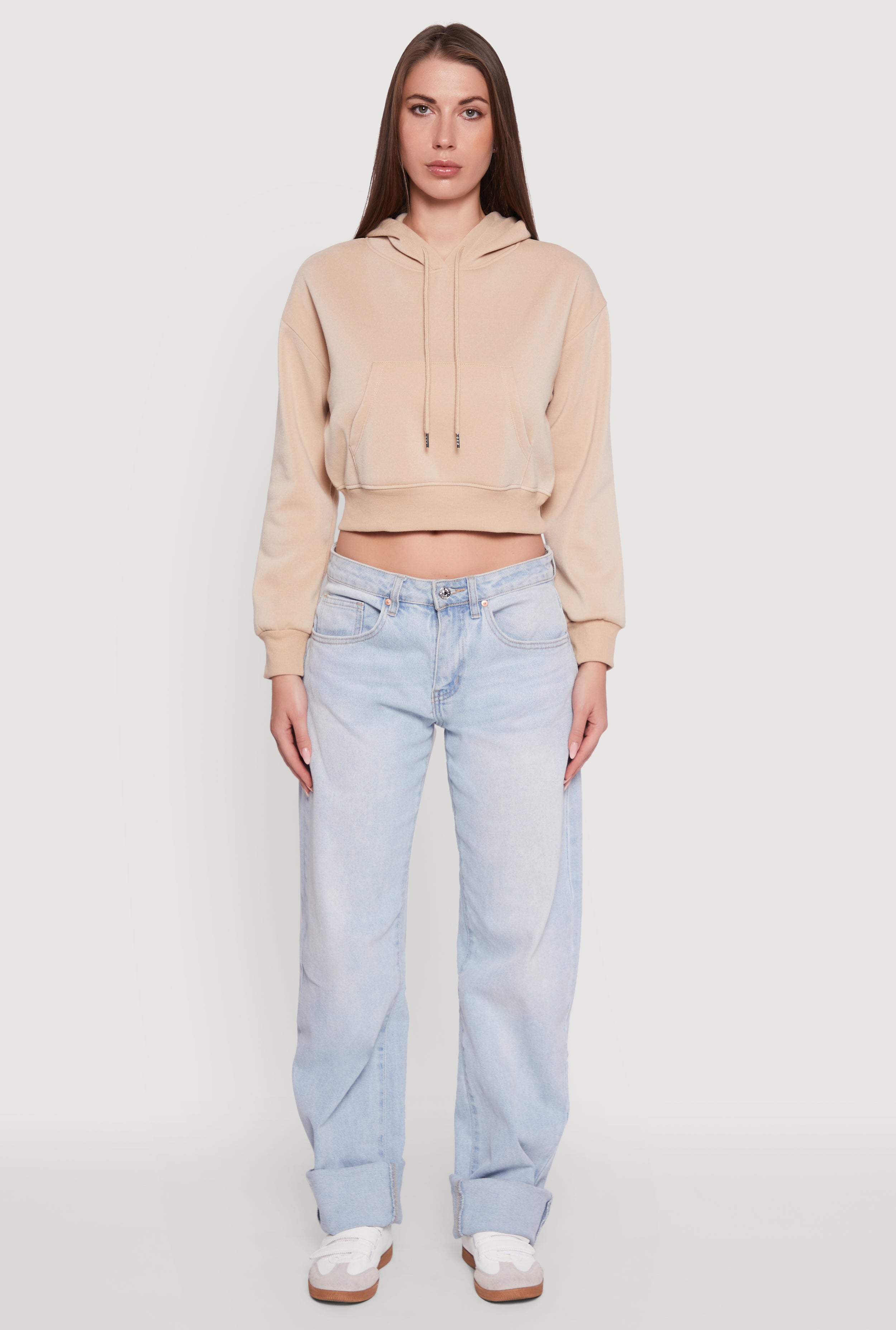 Elevate your casual game with the Cropped Kangaroo Pocket Pullover Hoodie. This cozy fleece hoodie blends classic fit comfort with a trendy cropped cut that’s perfect for layering or rocking solo. The hooded neckline and long sleeves keep you snug, while the kangaroo pocket adds a cool, practical touch to stash your essentials or warm your hands. Whether you’re chilling at home or out and about, this athleisure staple is your new go to for effortless style and all day comfort.