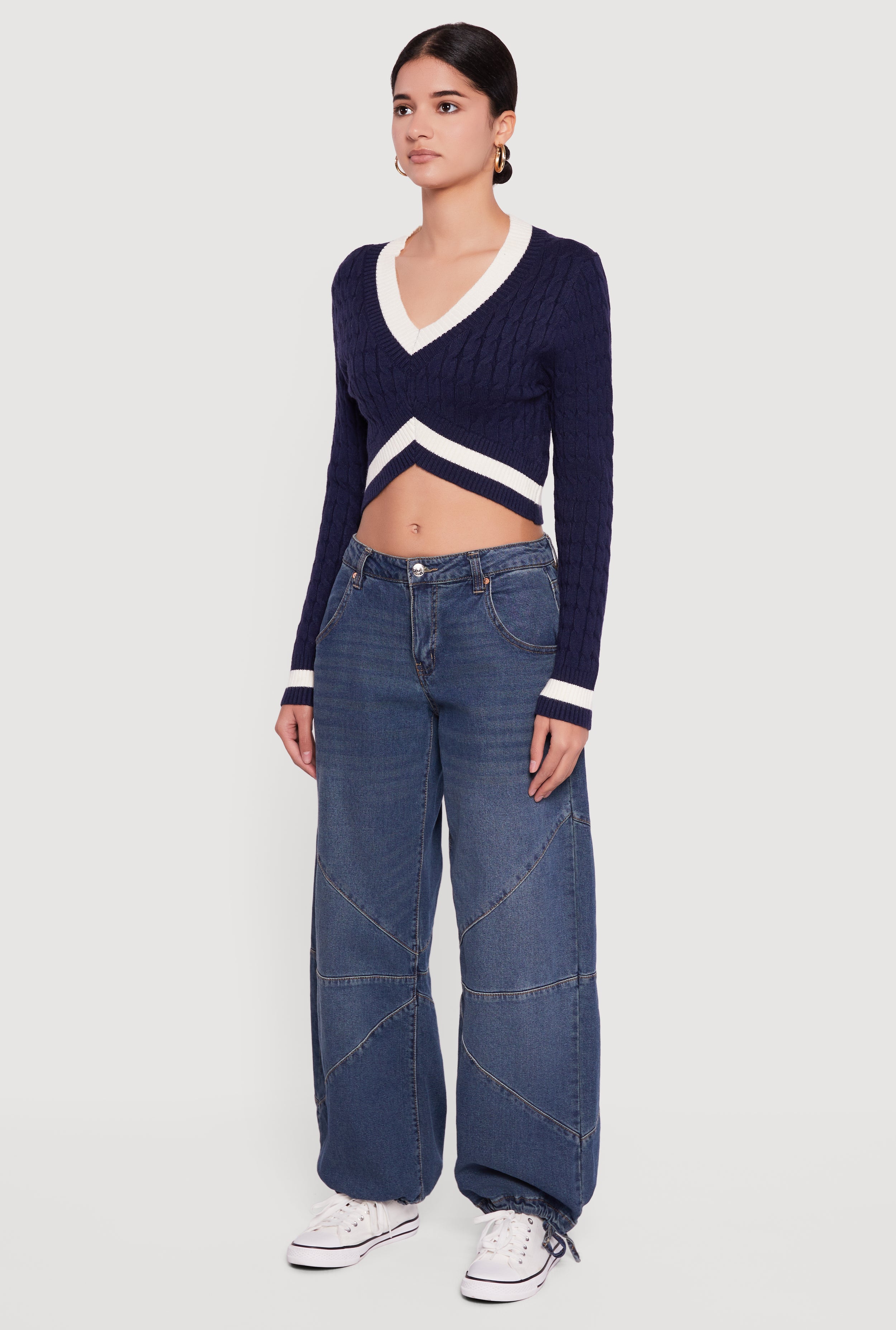 Cozy meets cool in this Contrast Trim Cable Knit Cropped Sweater. Featuring a timeless classic fit and a flattering V-neckline, it’s the perfect casual layer to elevate your everyday style. The cable knit texture adds a touch of cozy charm while the cropped cut keeps it fresh and trendy. Whether you’re pairing it with high-waisted jeans or your favorite skirt, this sweater is your go-to for effortless, laid-back vibes.