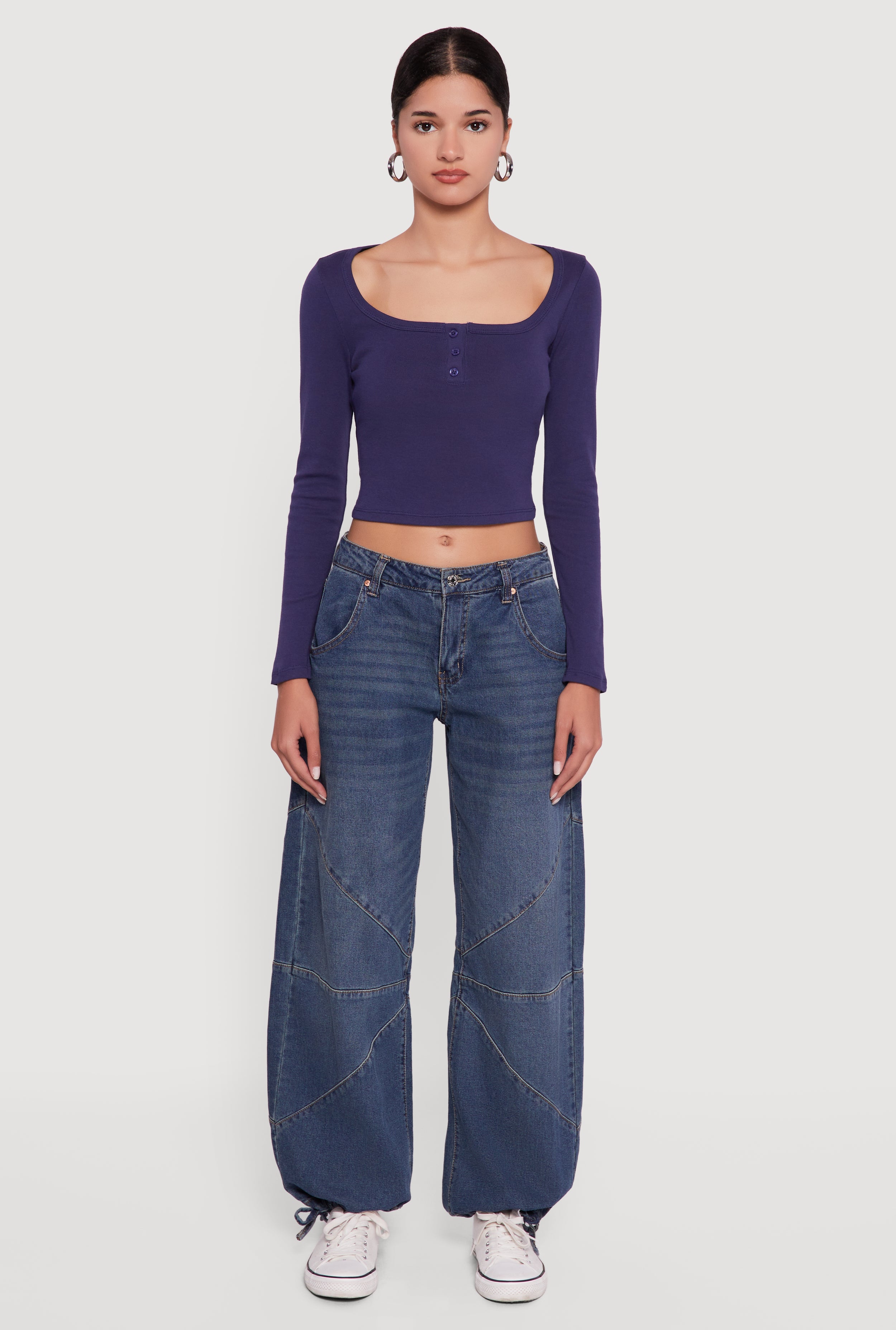 Upgrade your casual wardrobe with the Henley Long Sleeve Crop Top by Blâshe. This classic fit piece features a flattering scoop neck and cozy long sleeves, making it the perfect go-to for laid-back days or layering up in style. Its solid color and timeless silhouette keep things effortlessly cool and versatile for any outfit.